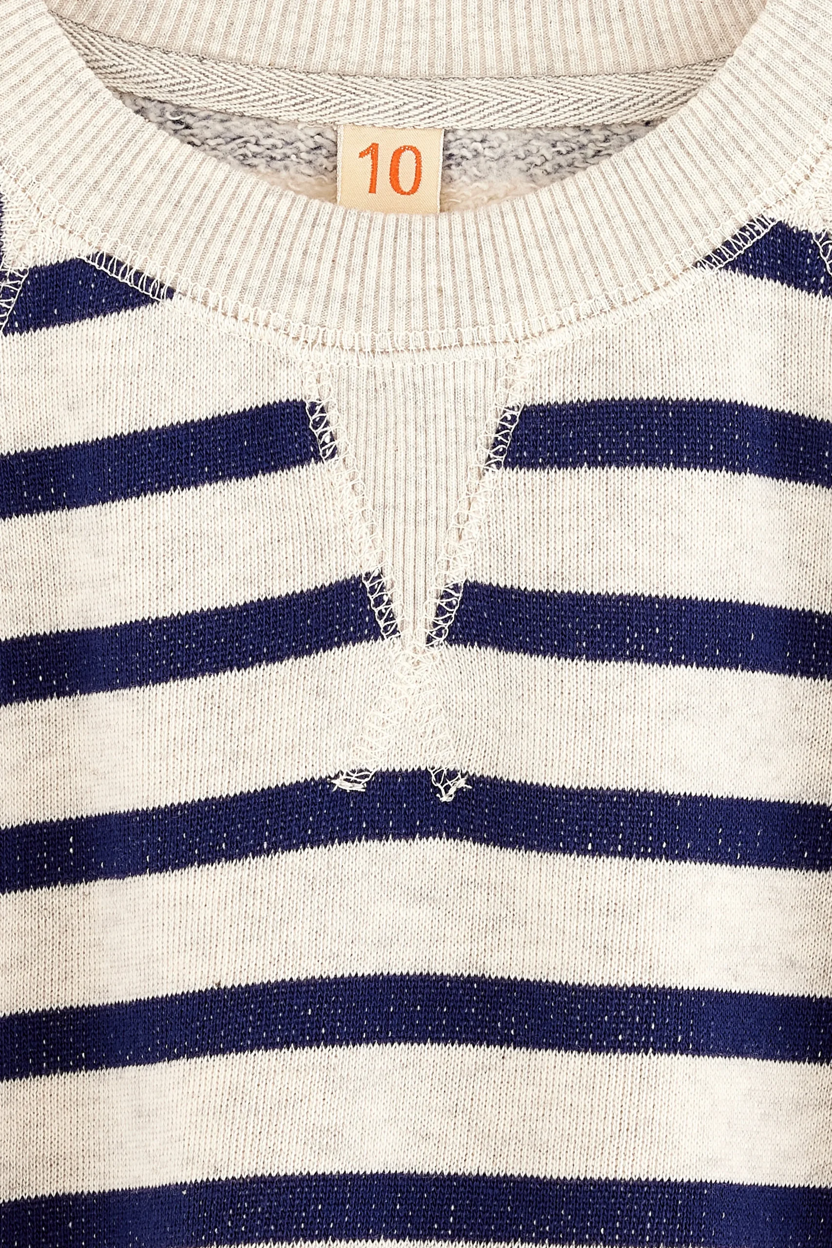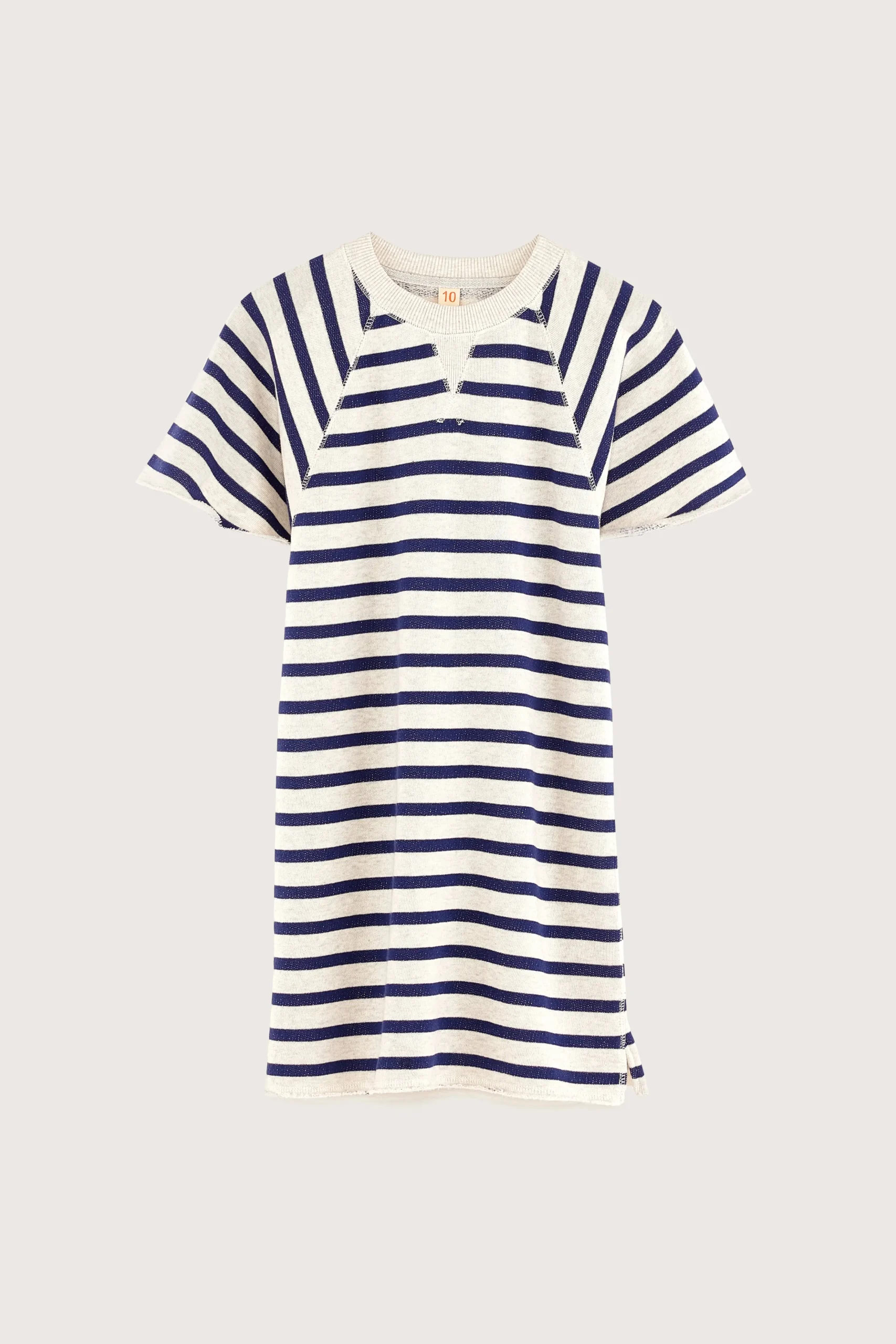 Losse sweatshirt jurk met recht model, ronde hals en korte vlindermouwen, gemaakt van lichtgrijs, heideblauw fleece met blauwe strepen.Losse pasvorm, boven de knieRonde hals Rechte zoom met kleine zijsplitten Korte vlindermouwen