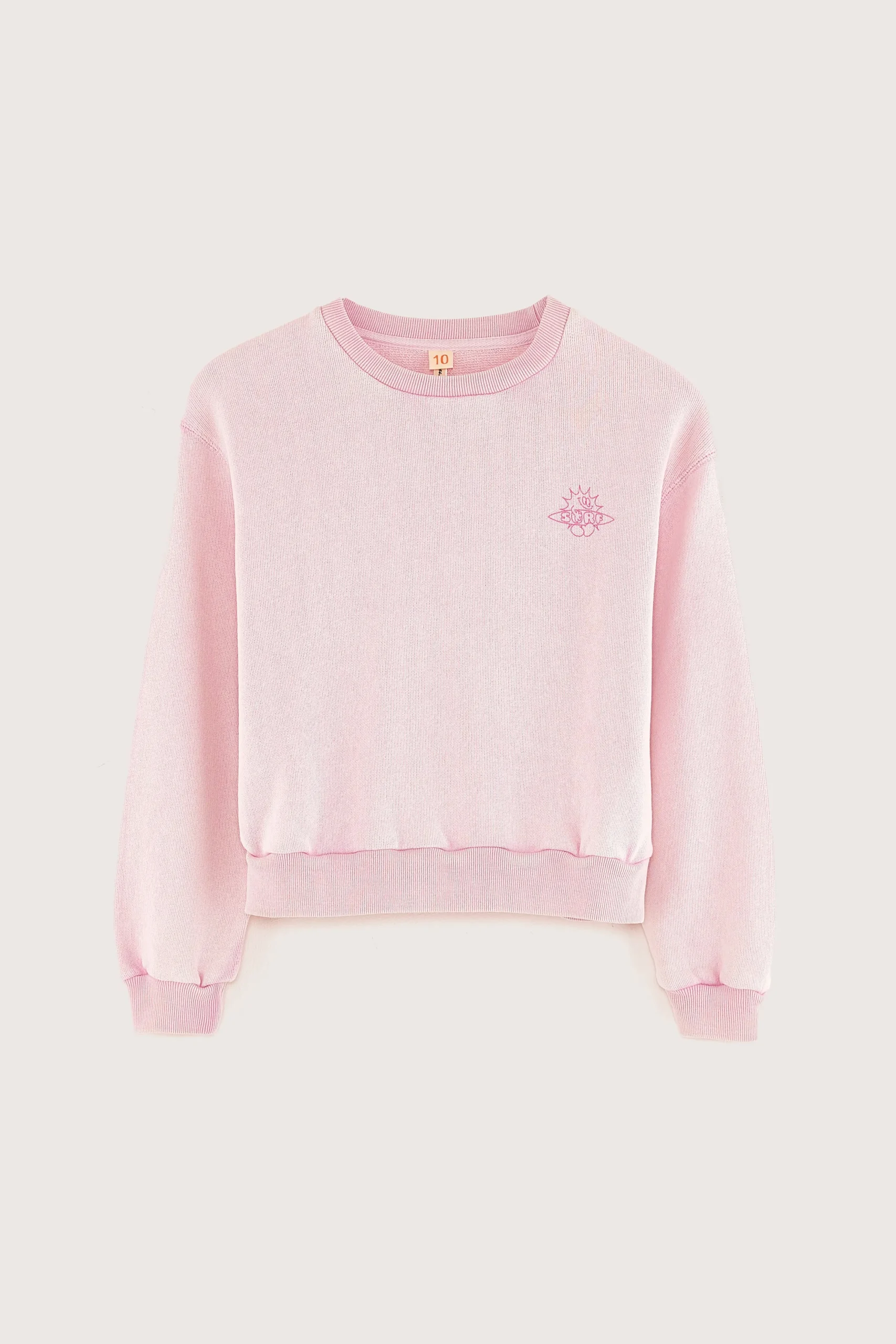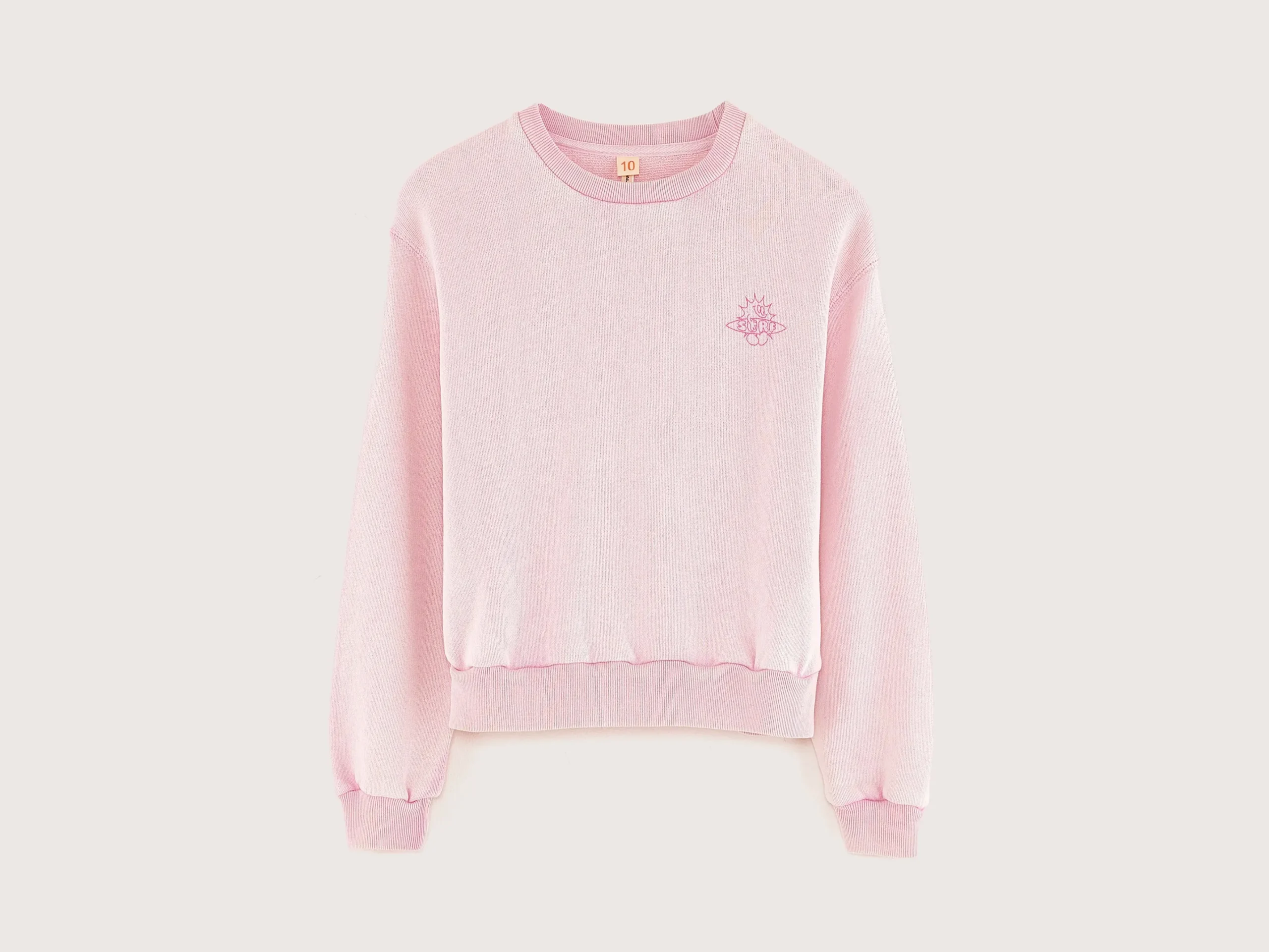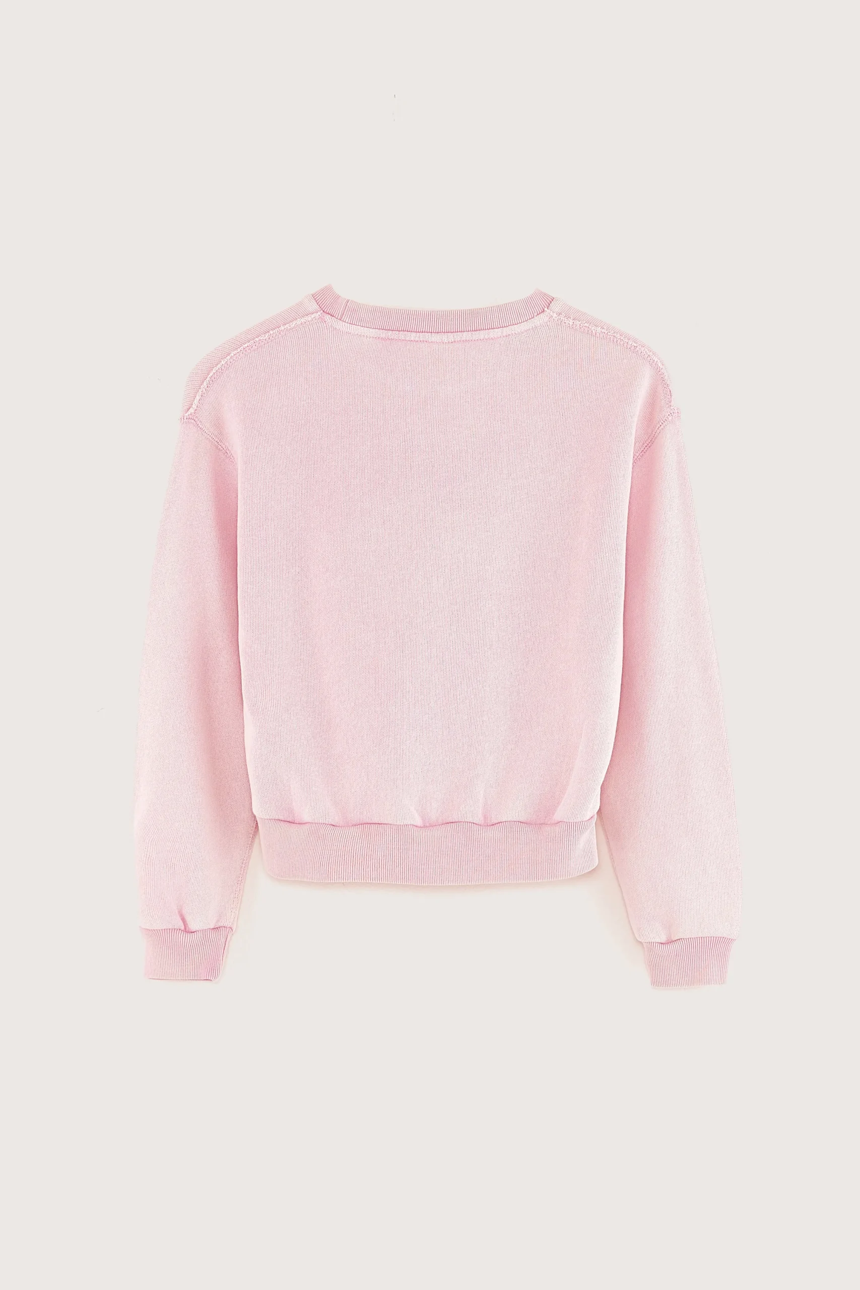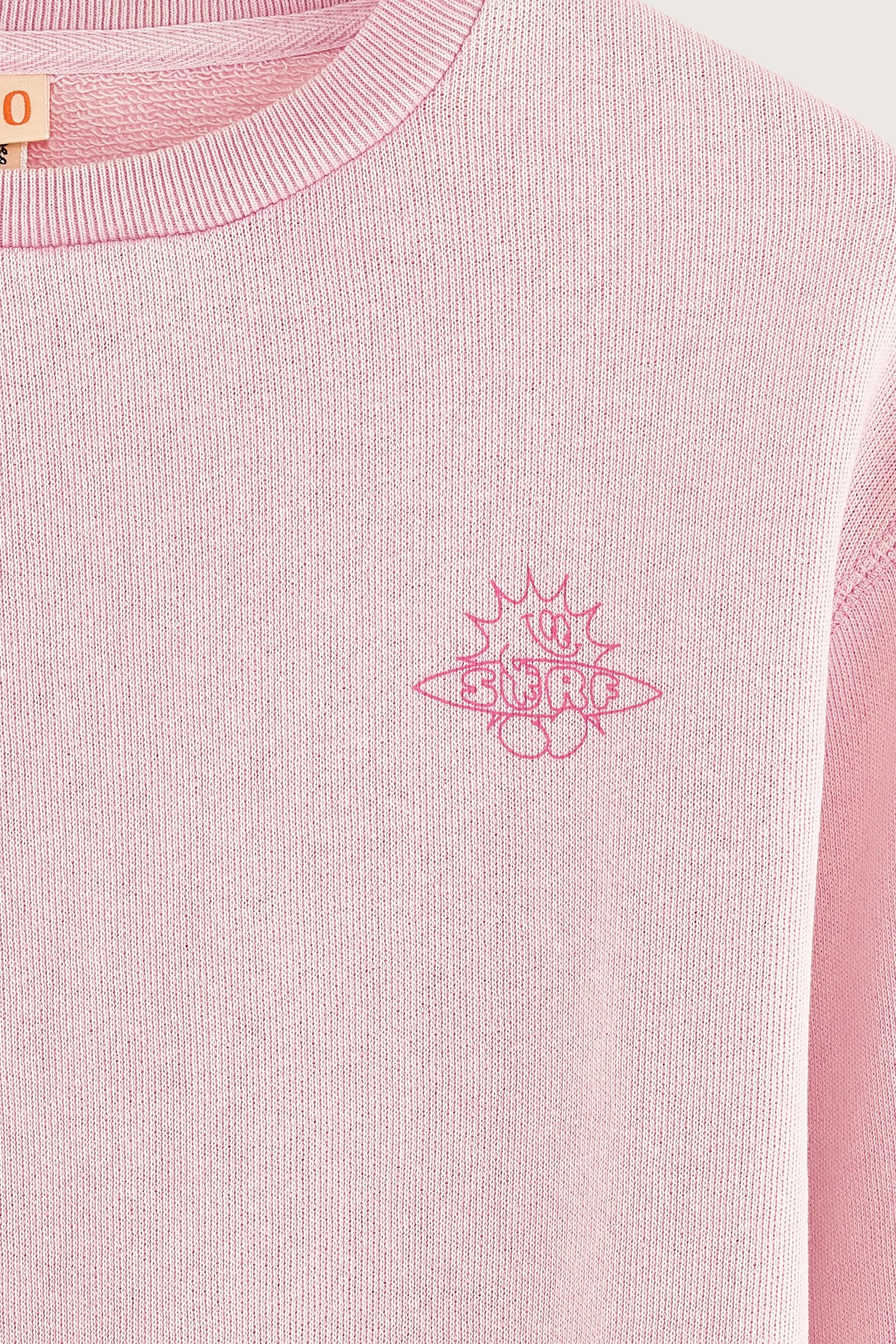 Klassiek sweatshirt met ronde hals, lange mouwen en onafgewerkte details op de naden, gemaakt van gewassen roze fleece met tone-on-tone op surfen geïnspireerde opdruk op de voorkant op de linkerborst.Klassieke pasvorm Ronde halsLange mouwen Geribde boorden Onafgewerkte detailsDiscrete tone-on-tone opdruk aan de voorkant