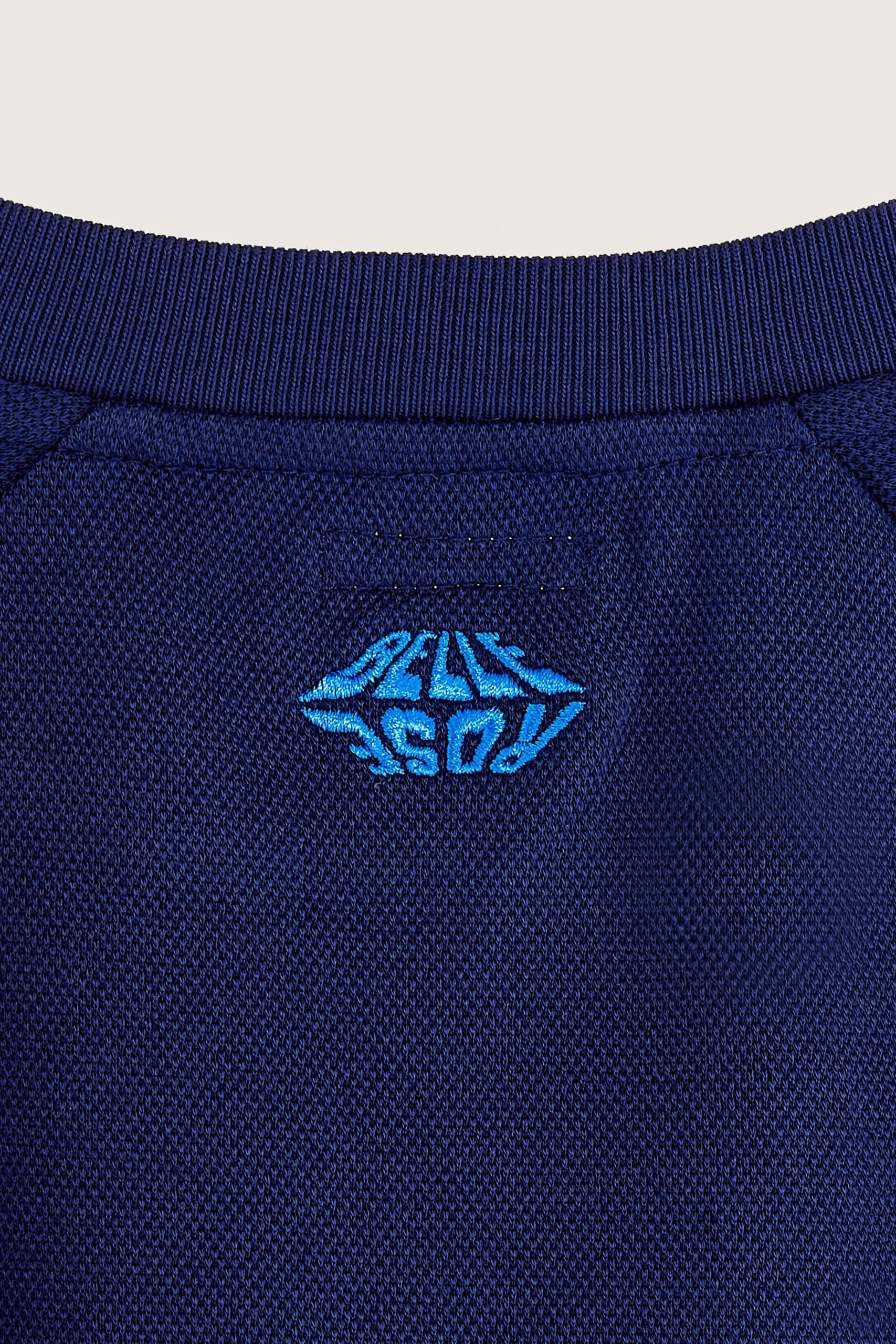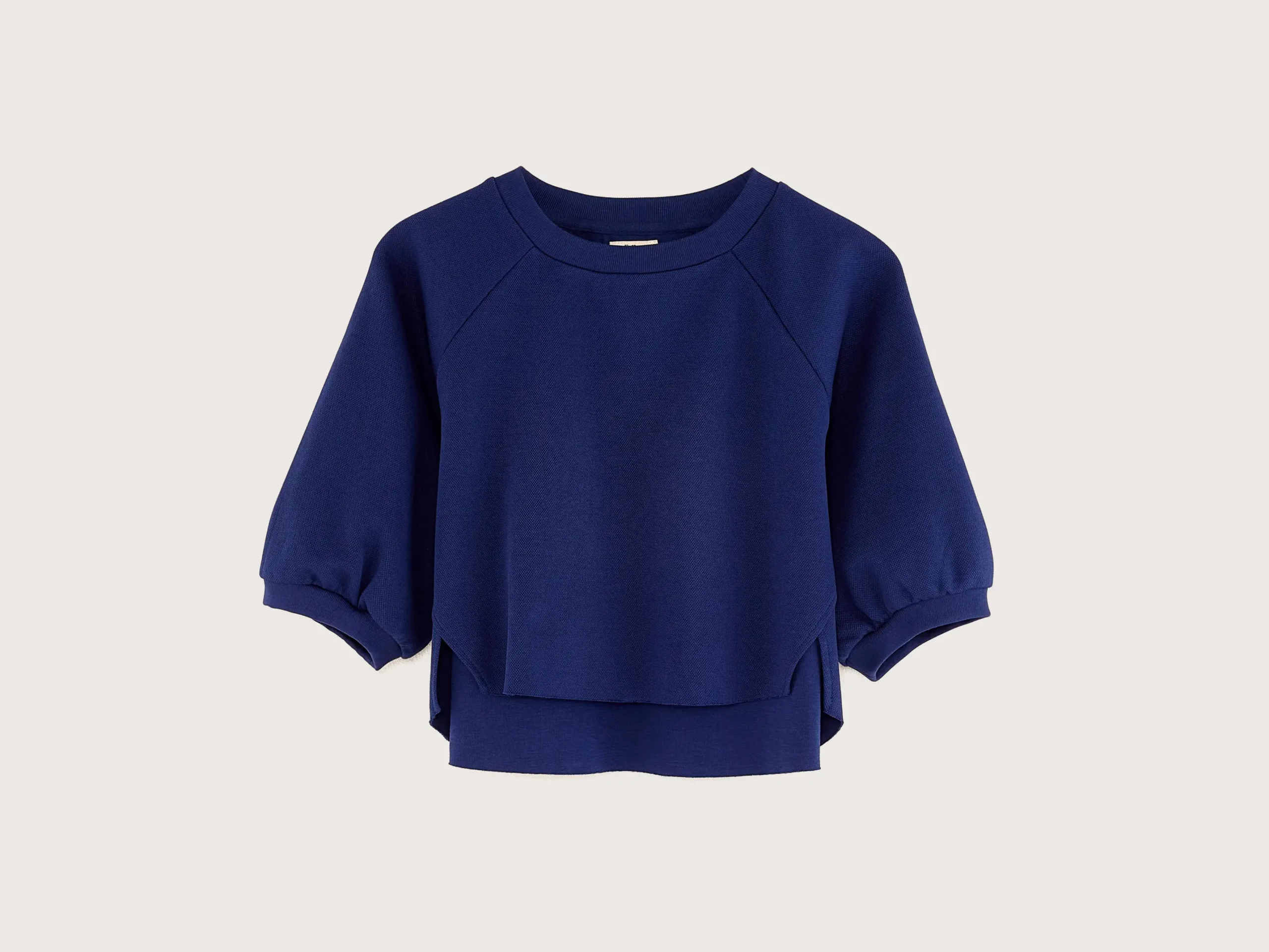 Los T-shirt met korte ballonmouwen, cropped en ingekeepte taille en ronde hals, gemaakt van halfzwaar, kobaltblauw katoen.Losse pasvorm Ronde hals Korte ballonmouwenCropped taille met ingekeepte detailsHalfzwaar katoen