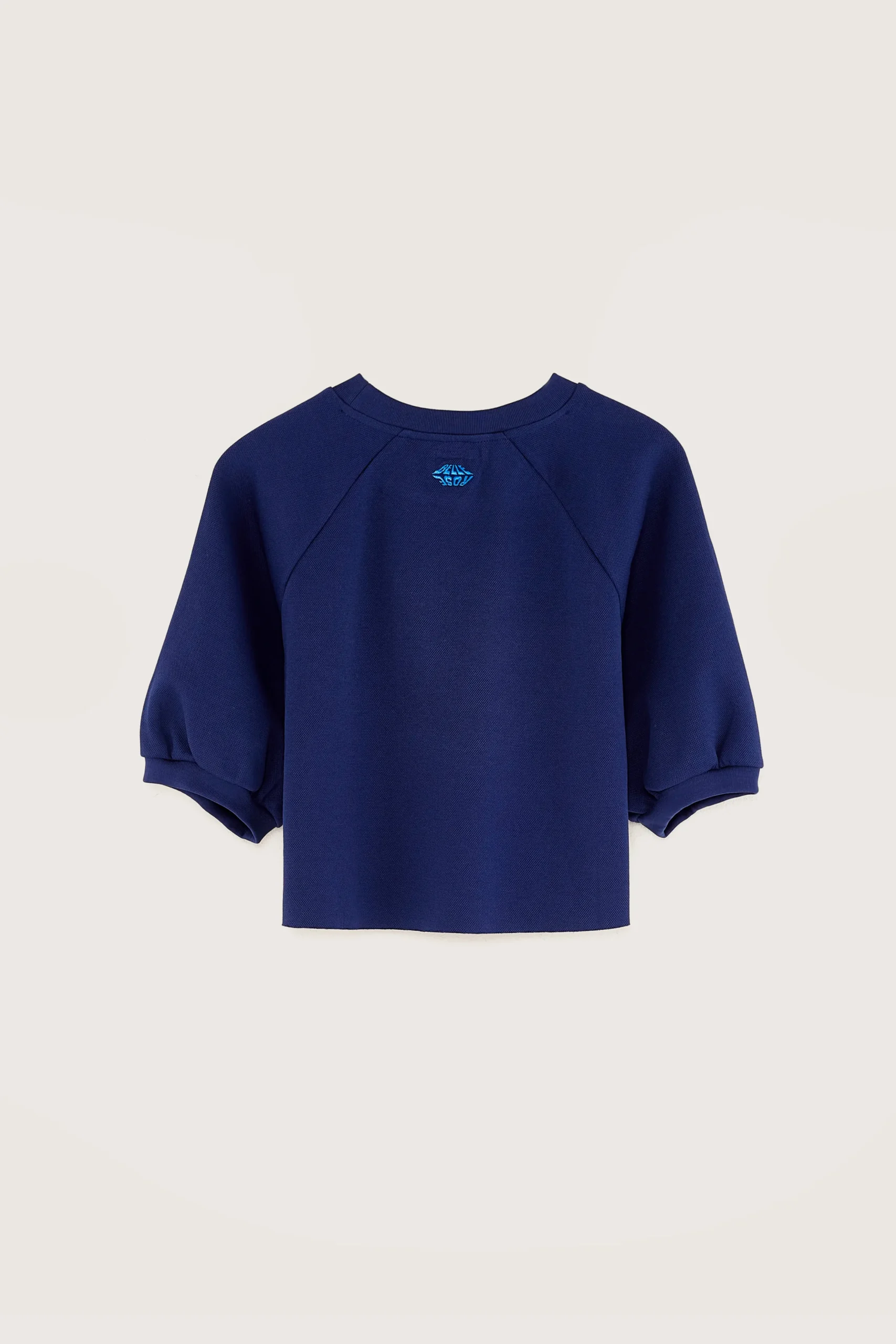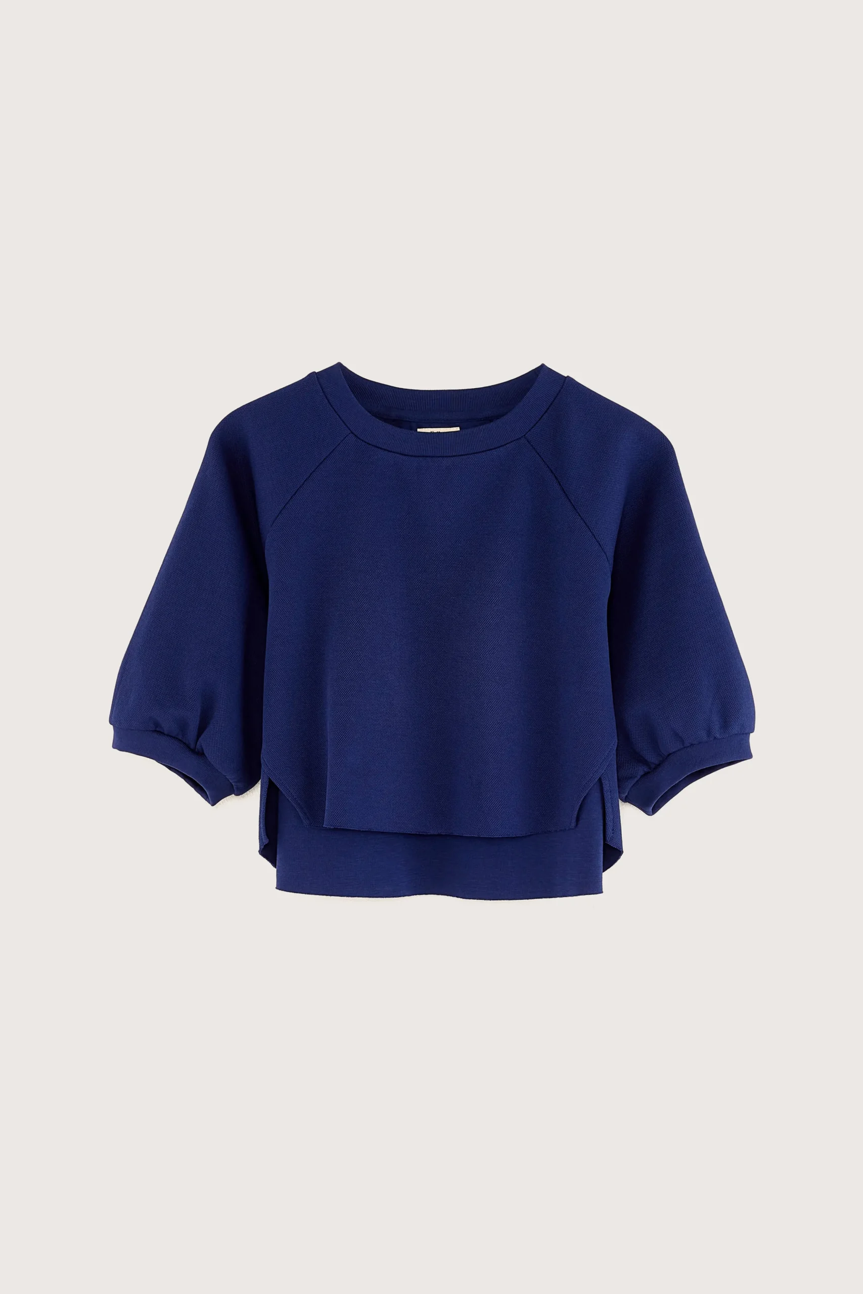 Los T-shirt met korte ballonmouwen, cropped en ingekeepte taille en ronde hals, gemaakt van halfzwaar, kobaltblauw katoe…