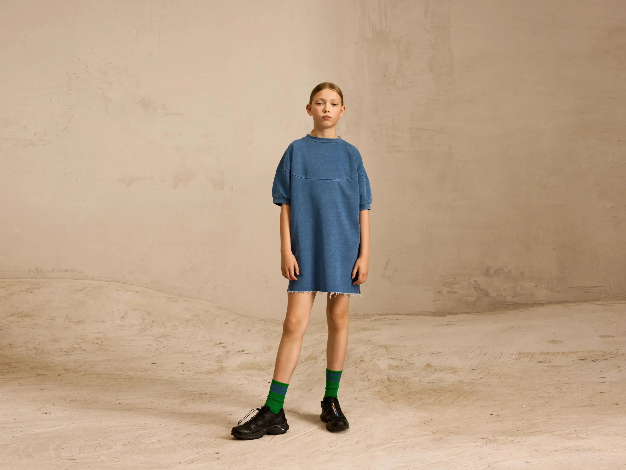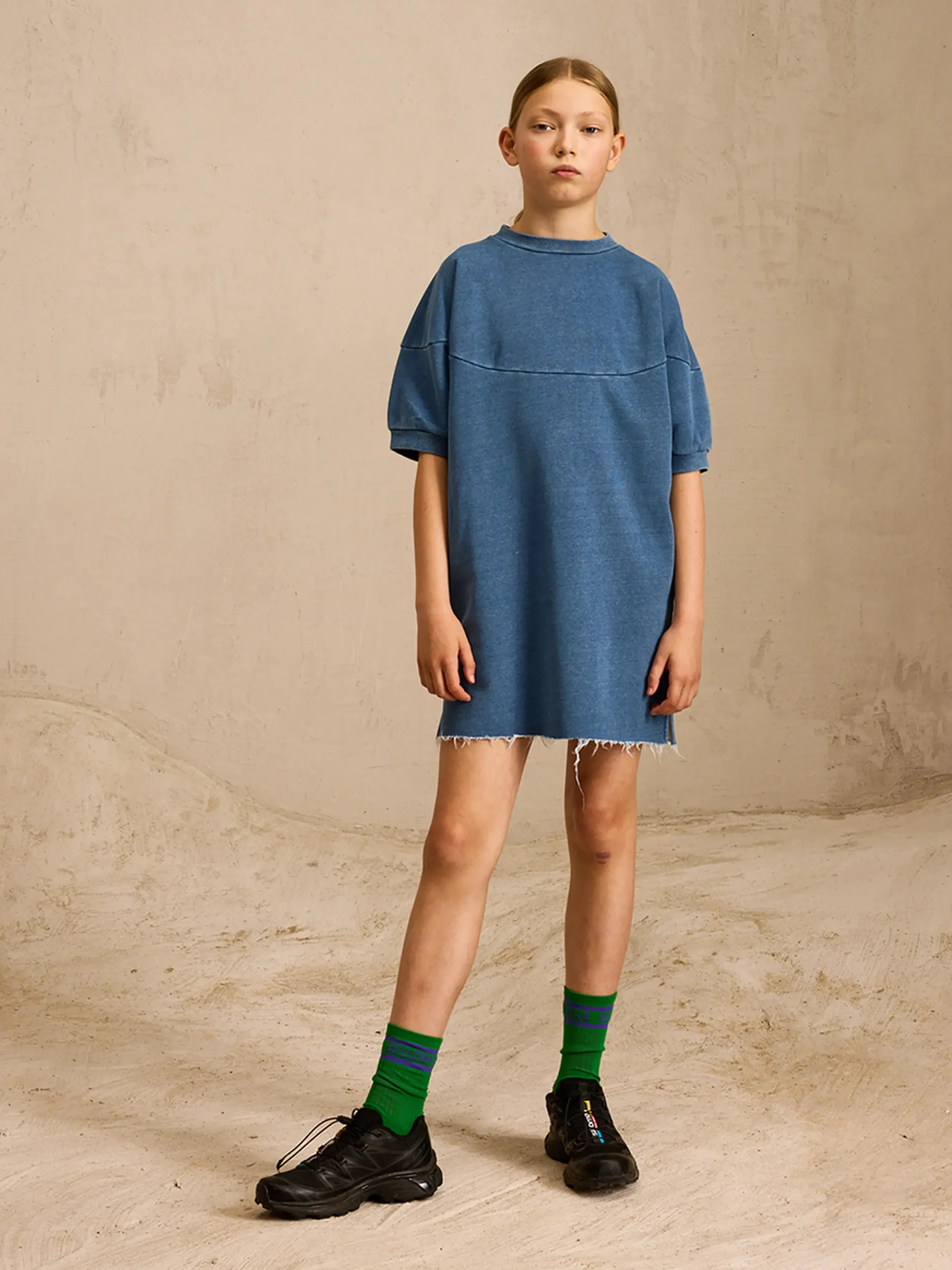Oversized sweatshirt jurk met recht model, gebogen juk en korte mouwen, gemaakt van licht, indigo katoenfleece.Oversized…