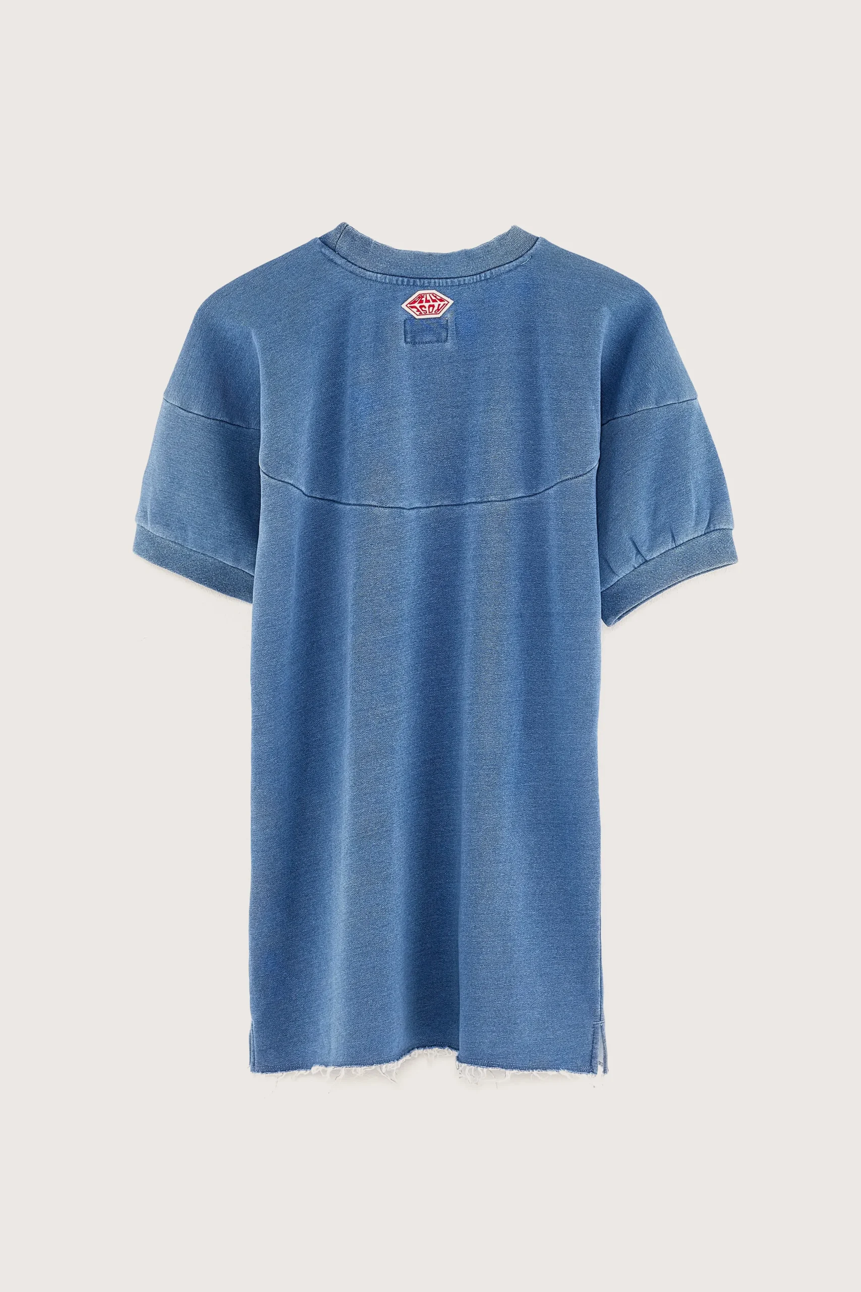 Oversized sweatshirt jurk met recht model, gebogen juk en korte mouwen, gemaakt van licht, indigo katoenfleece.Oversized pasvorm, boven de knieRonde halsKorte mouwen Gebogen jukRechte zoom