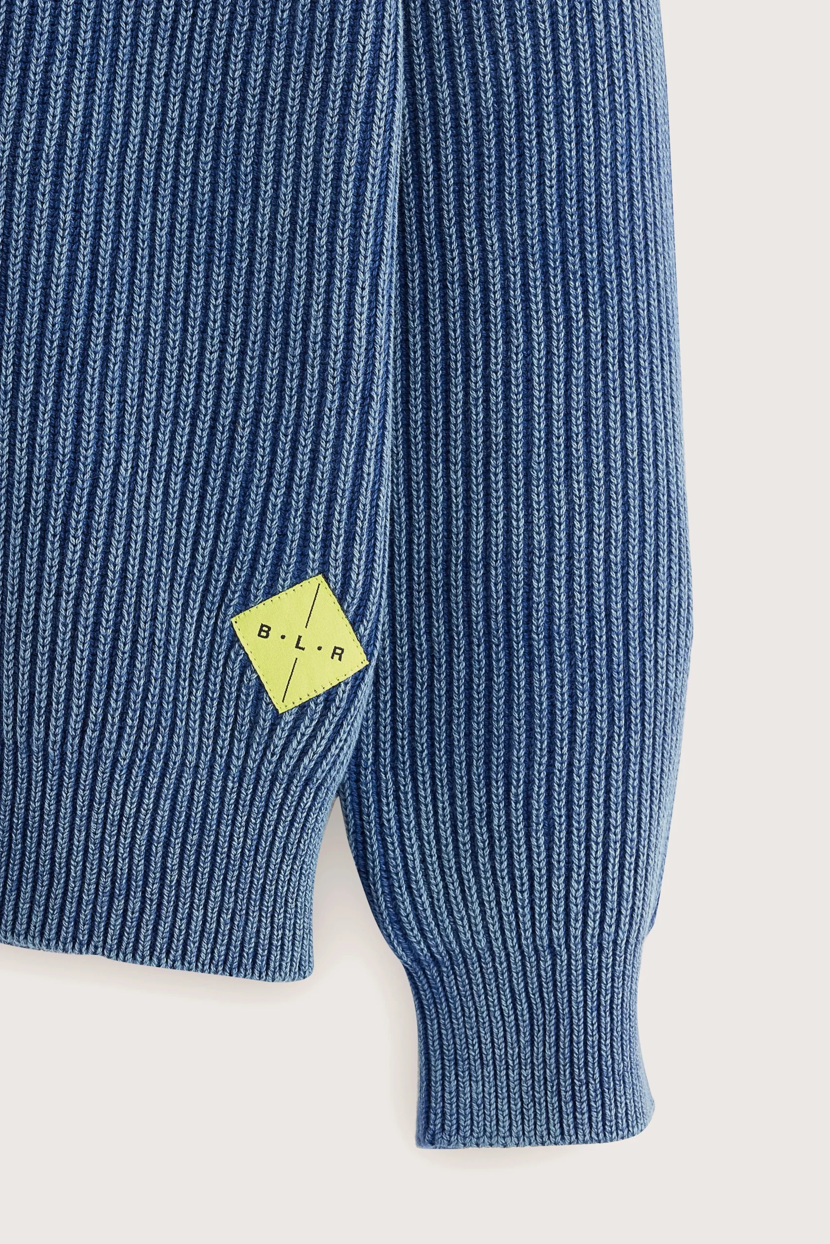 Losse trui met laaghangende schouders en ronde hals, gemaakt van ribgebreide zacht, denimblauw, acid washed katoen.Losse…