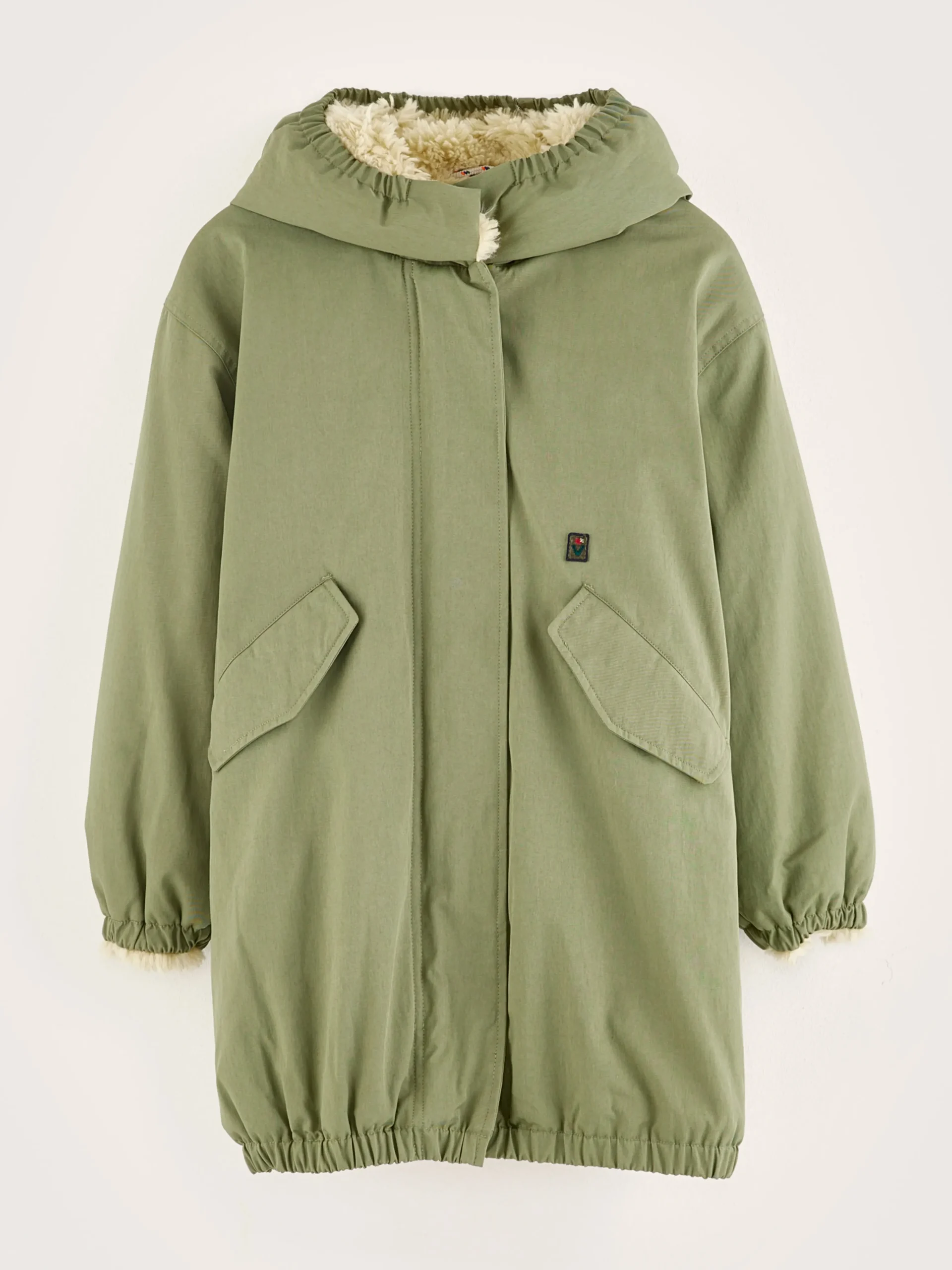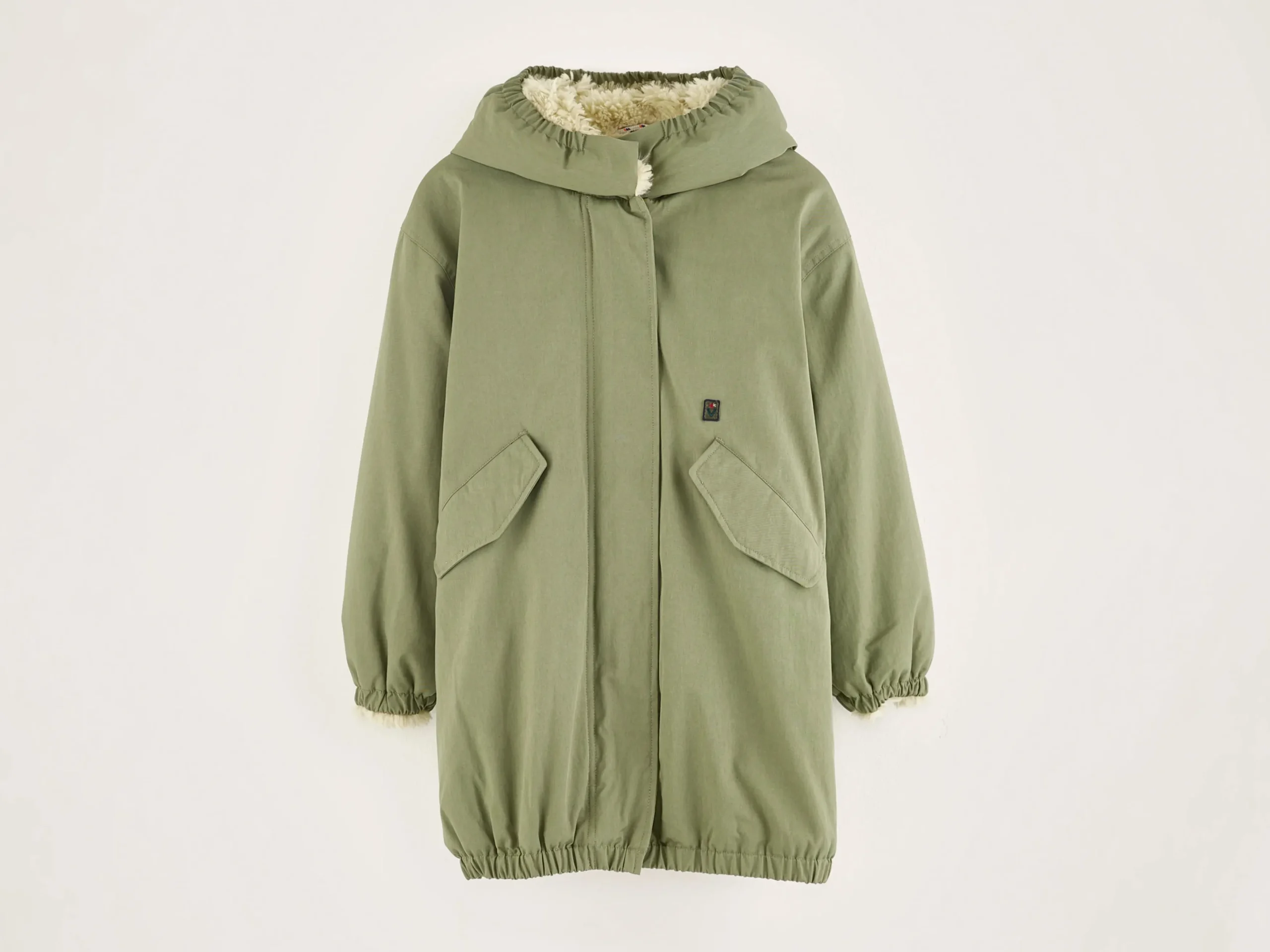 Oversized parka met capuchon in jeepgroen met voering van imitatiebont.r