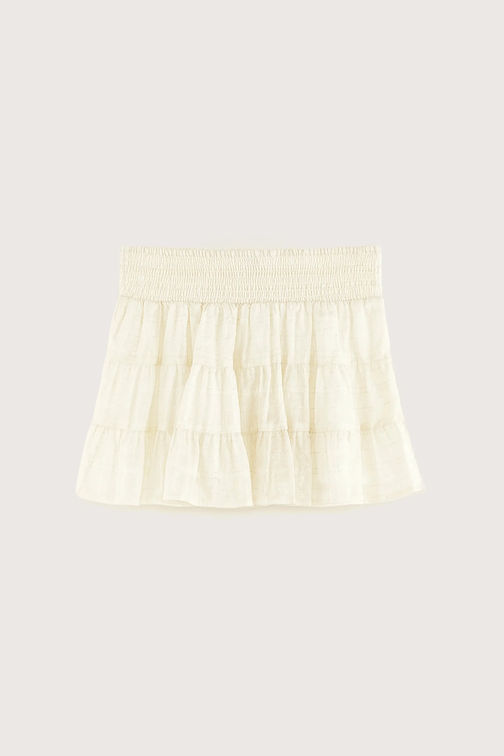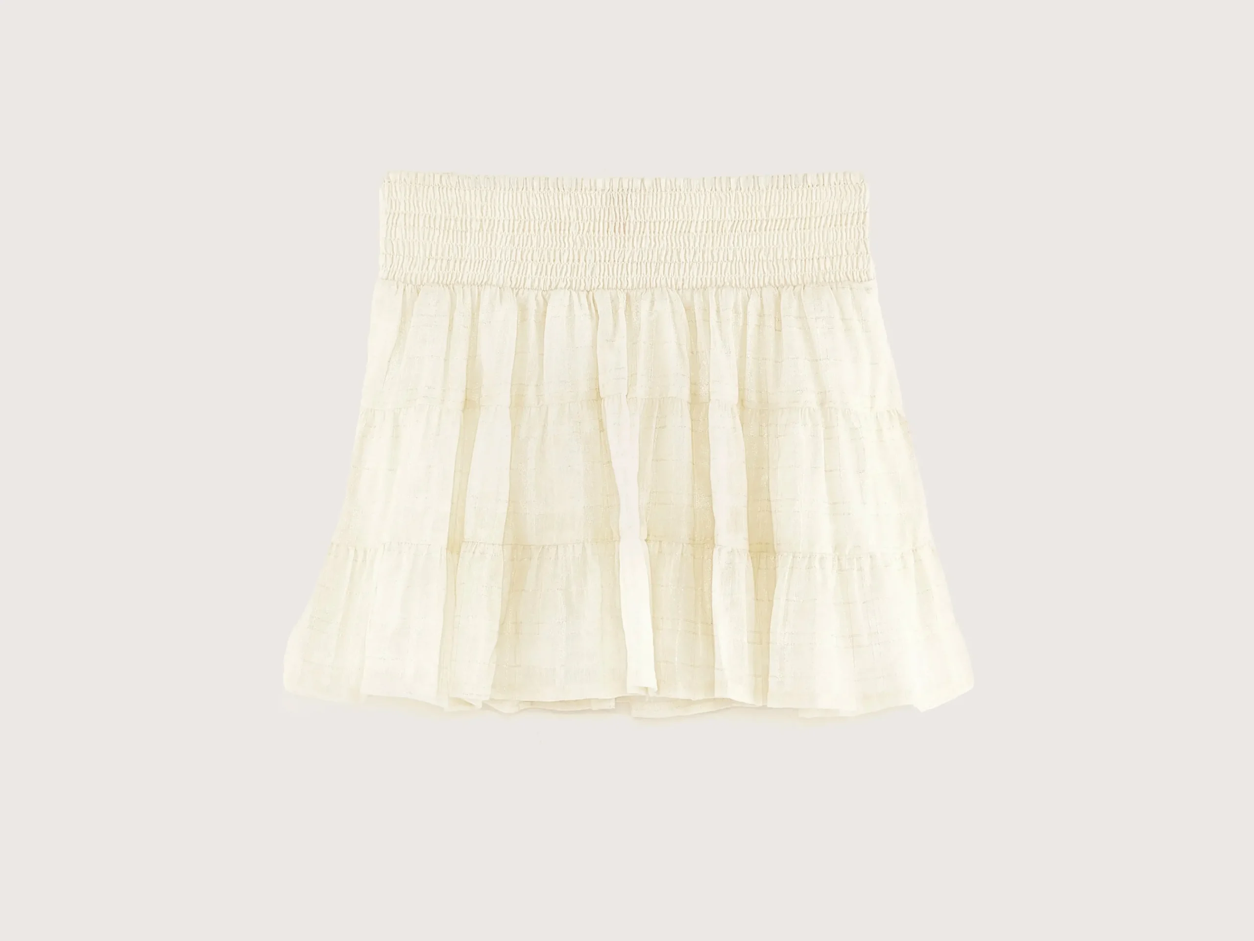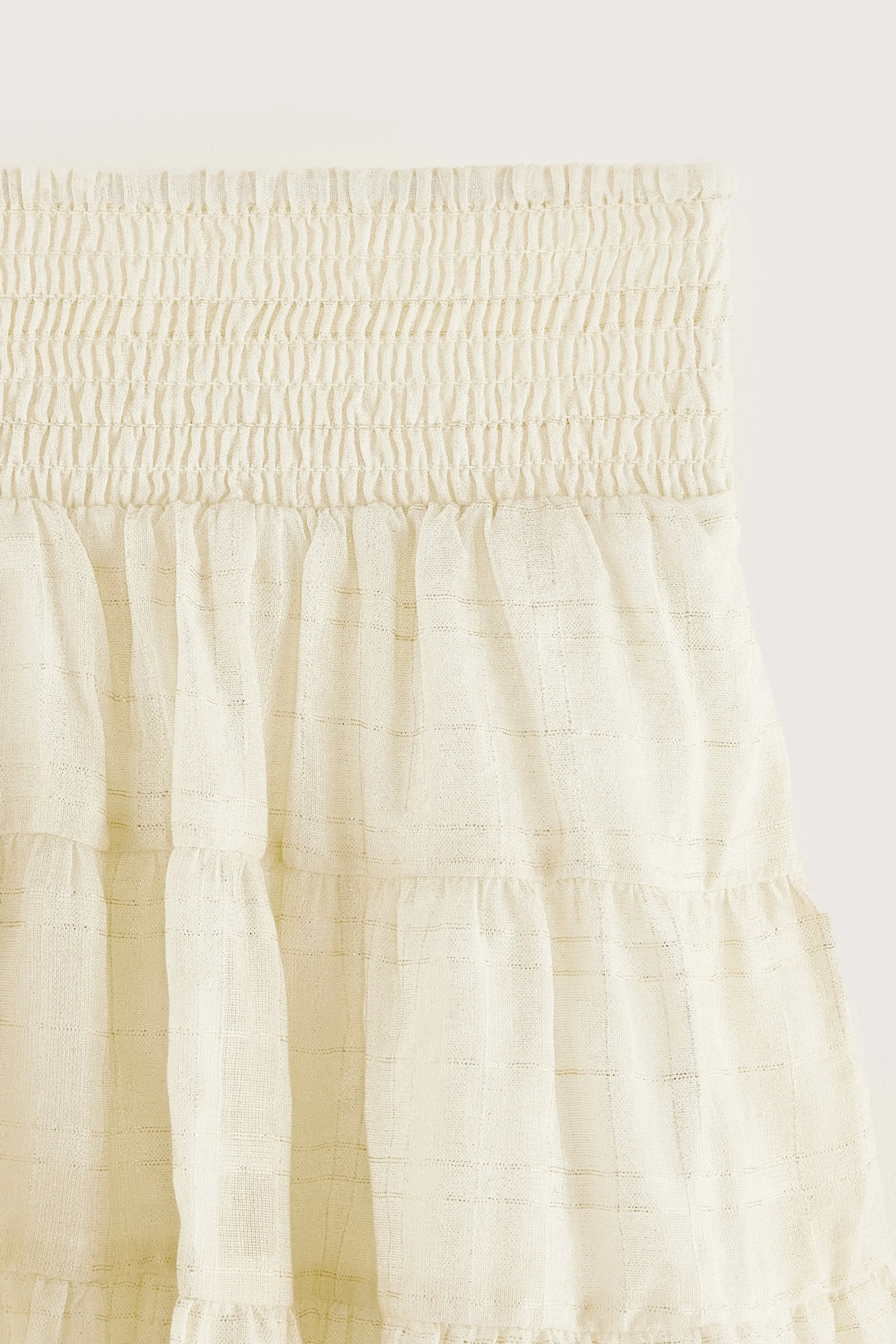 Minirok met elastische gesmokte taille, gemaakt van licht katoen met goudfolieafwerking.Klassieke pasvorm Gesmokte elastische tailleMinilengte3 niveaus met gerimpelde plooien