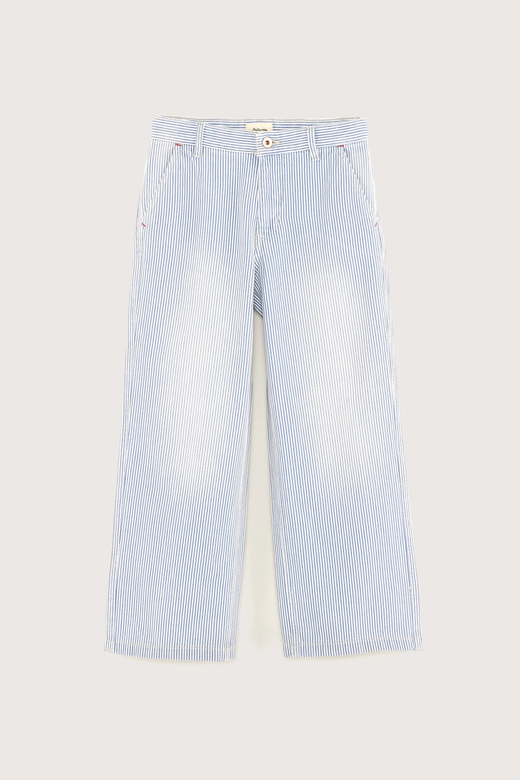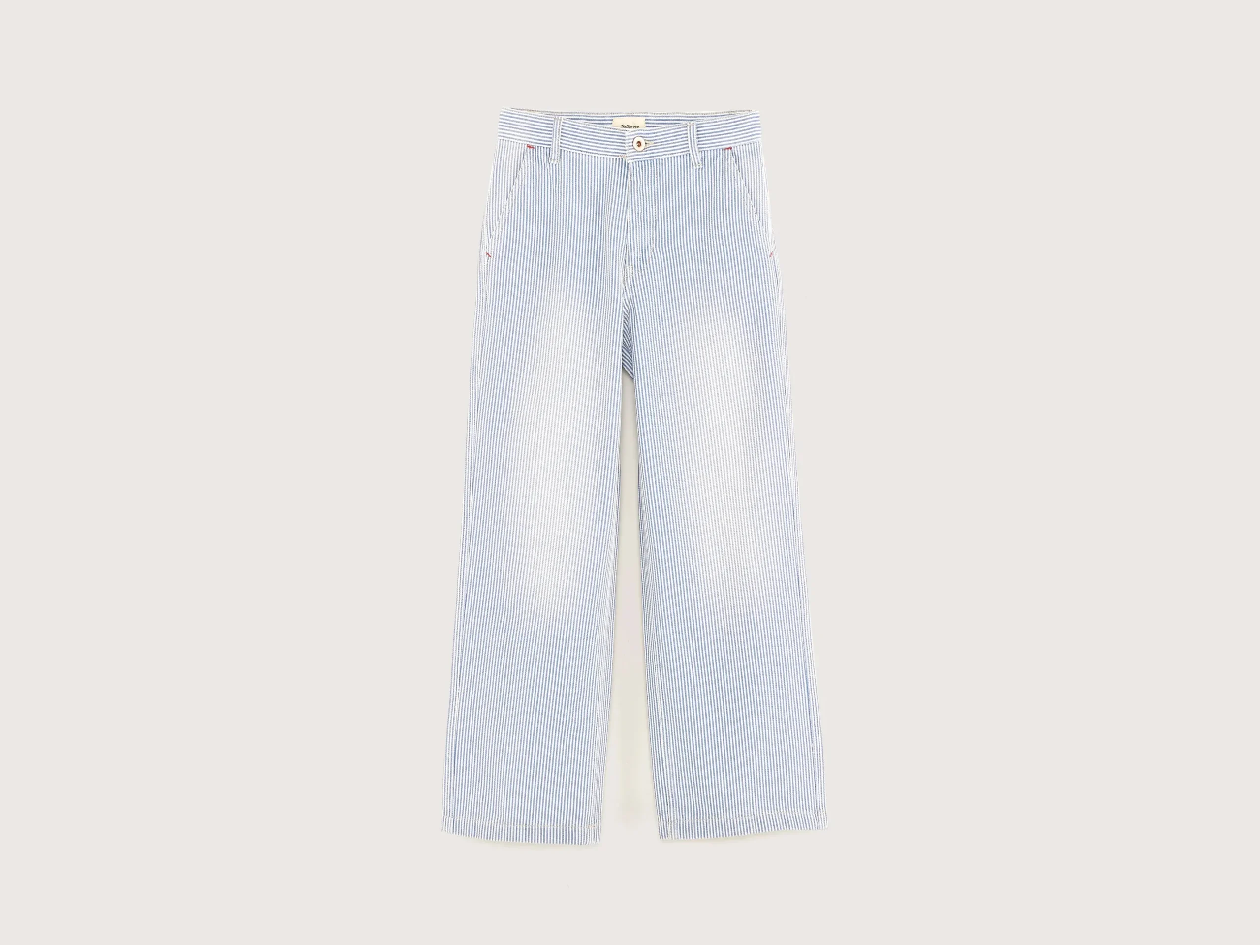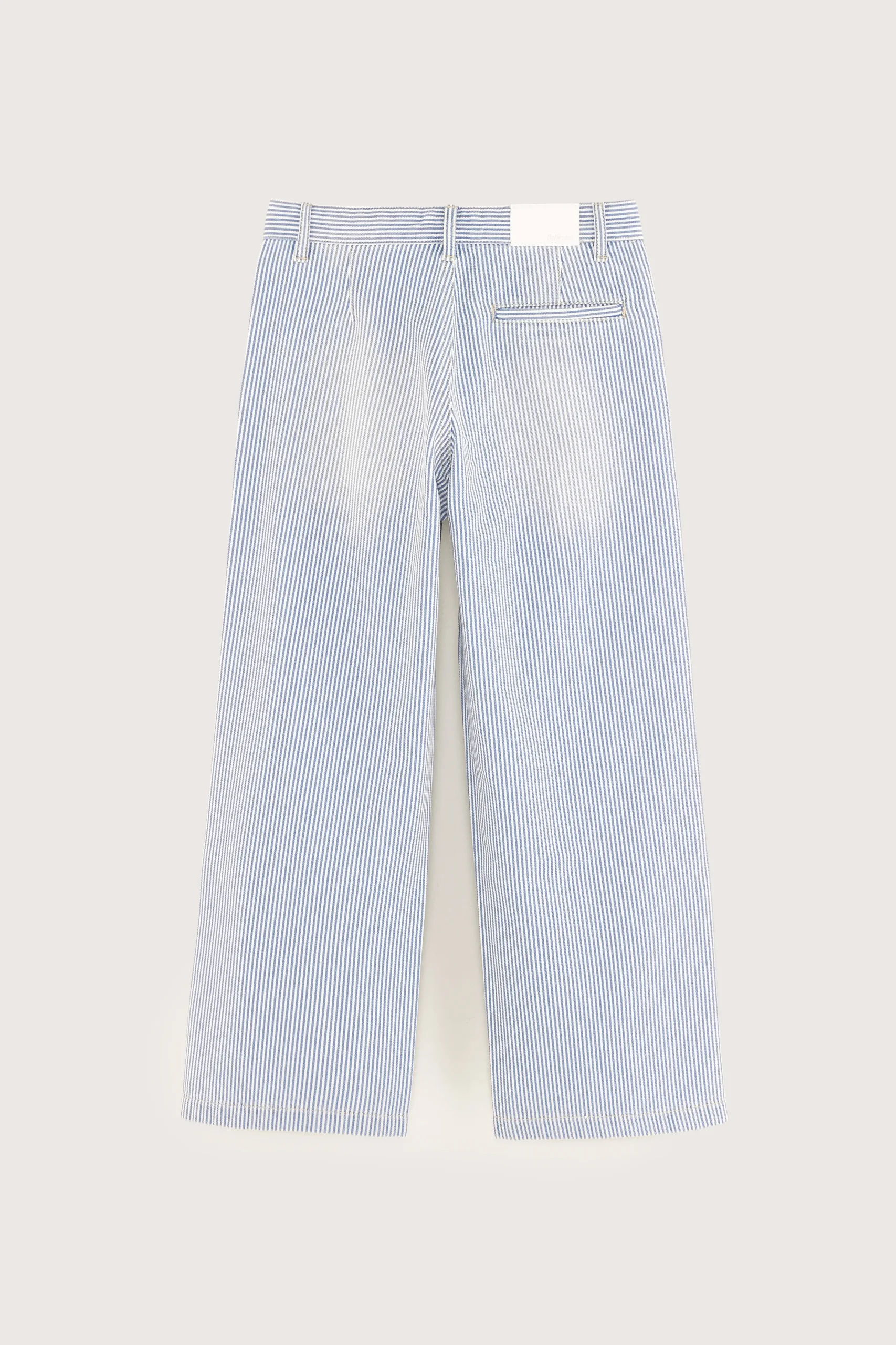 Losse broek met halfhoge taille, wijde pijpen en schuine zakken, gemaakt van gestreept katoendenim.Losse pasvorm Halfhoge taille, wijde pijpen KatoendenimSchuine zakken Achterzak met koordRitssluiting