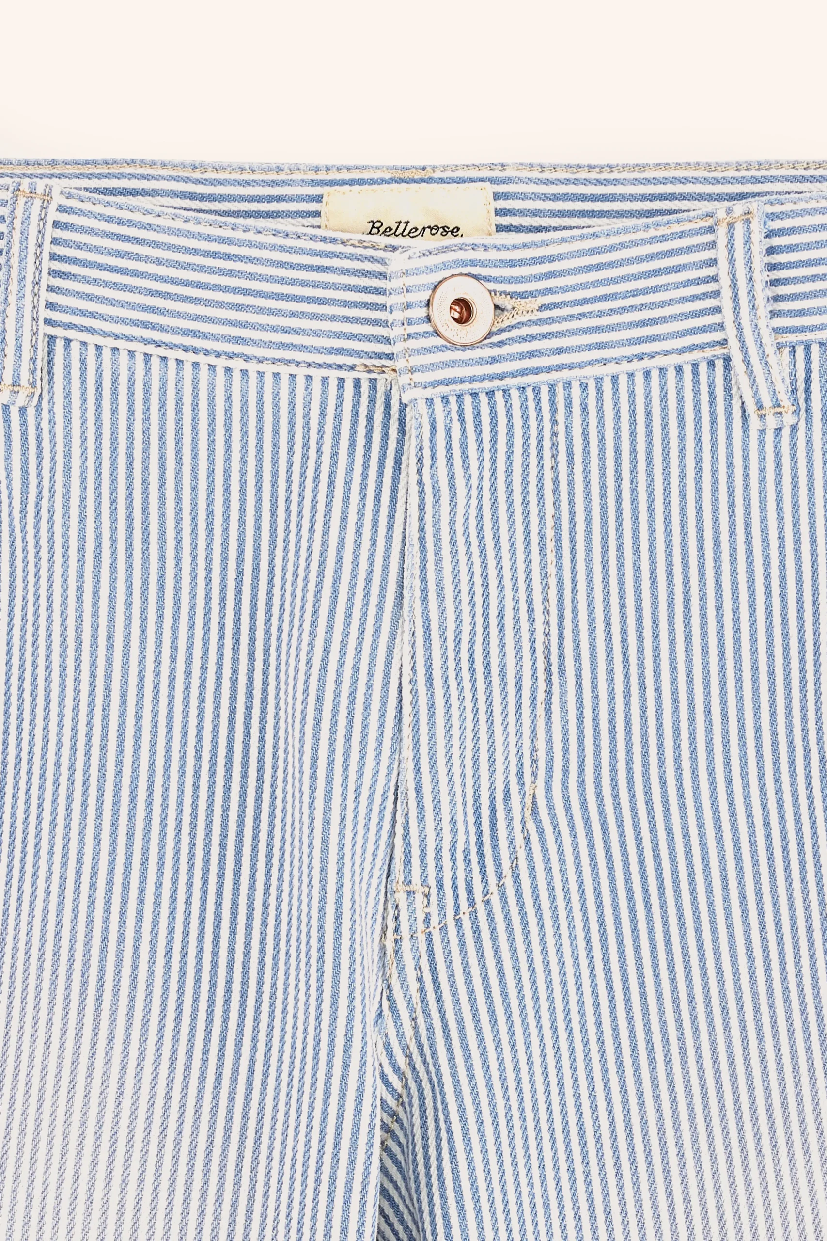 Losse broek met halfhoge taille, wijde pijpen en schuine zakken, gemaakt van gestreept katoendenim.Losse pasvorm Halfhog…