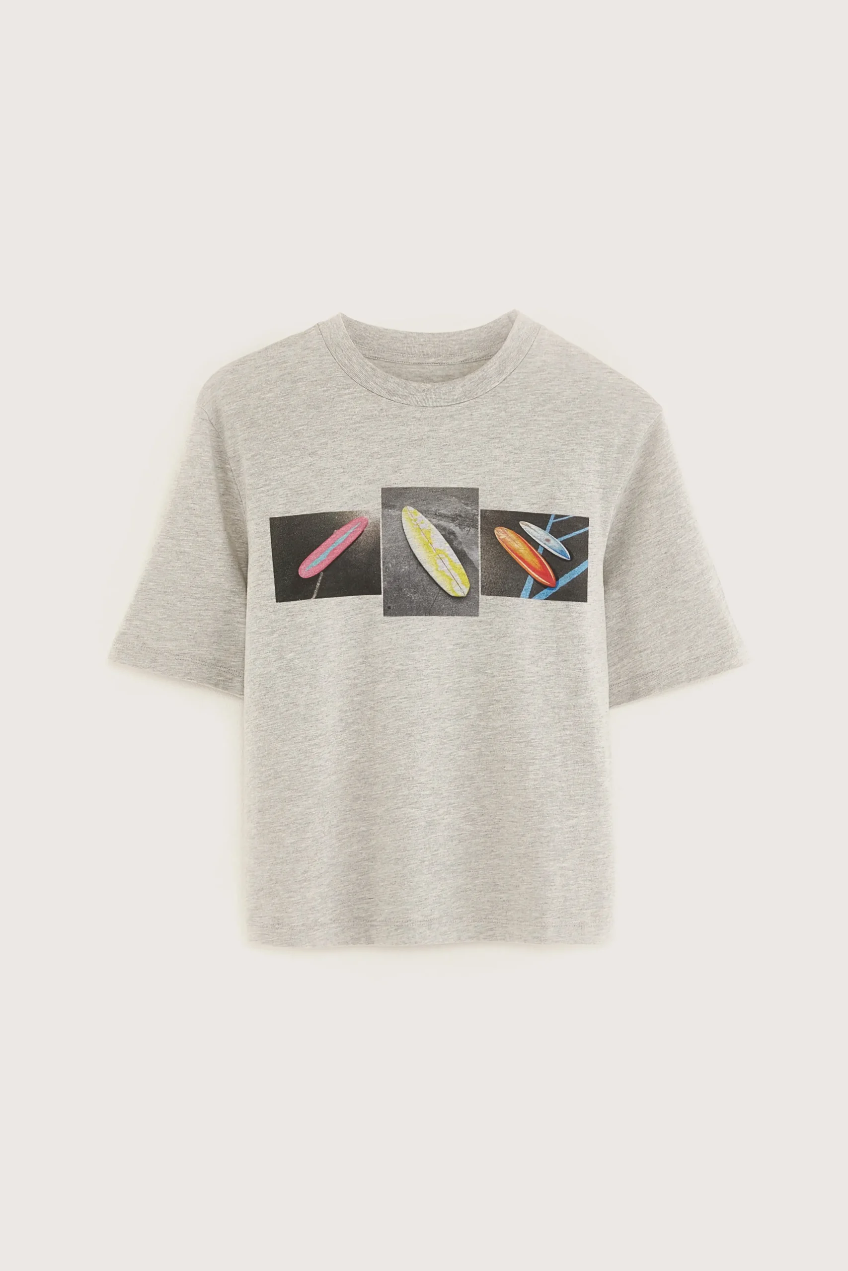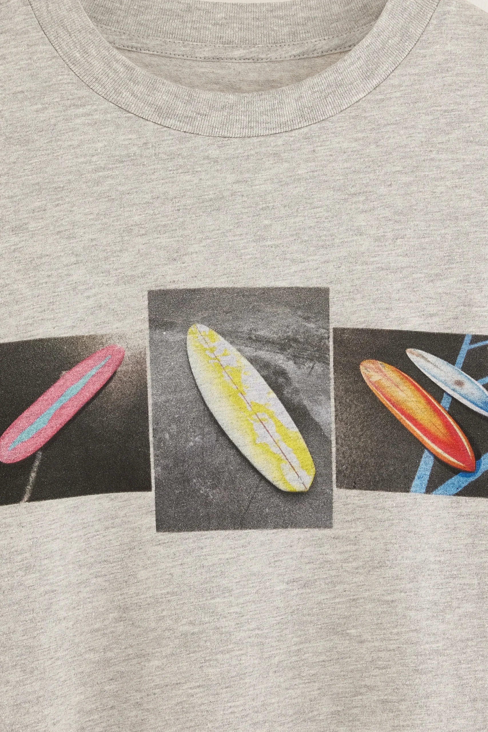Los T-shirt met geribde ronde hals en korte mouwen van geborsteld, heidegrijs katoenjersey en afgewerkt met een op surfen geïnspireerde fotoprint van Daniil Lavrovski op de voorkant.Losse pasvorm Geribde ronde hals Korte mouwen Borduursel op de voorkant en opdruk op de achterkant Halfzwaar katoenjersey