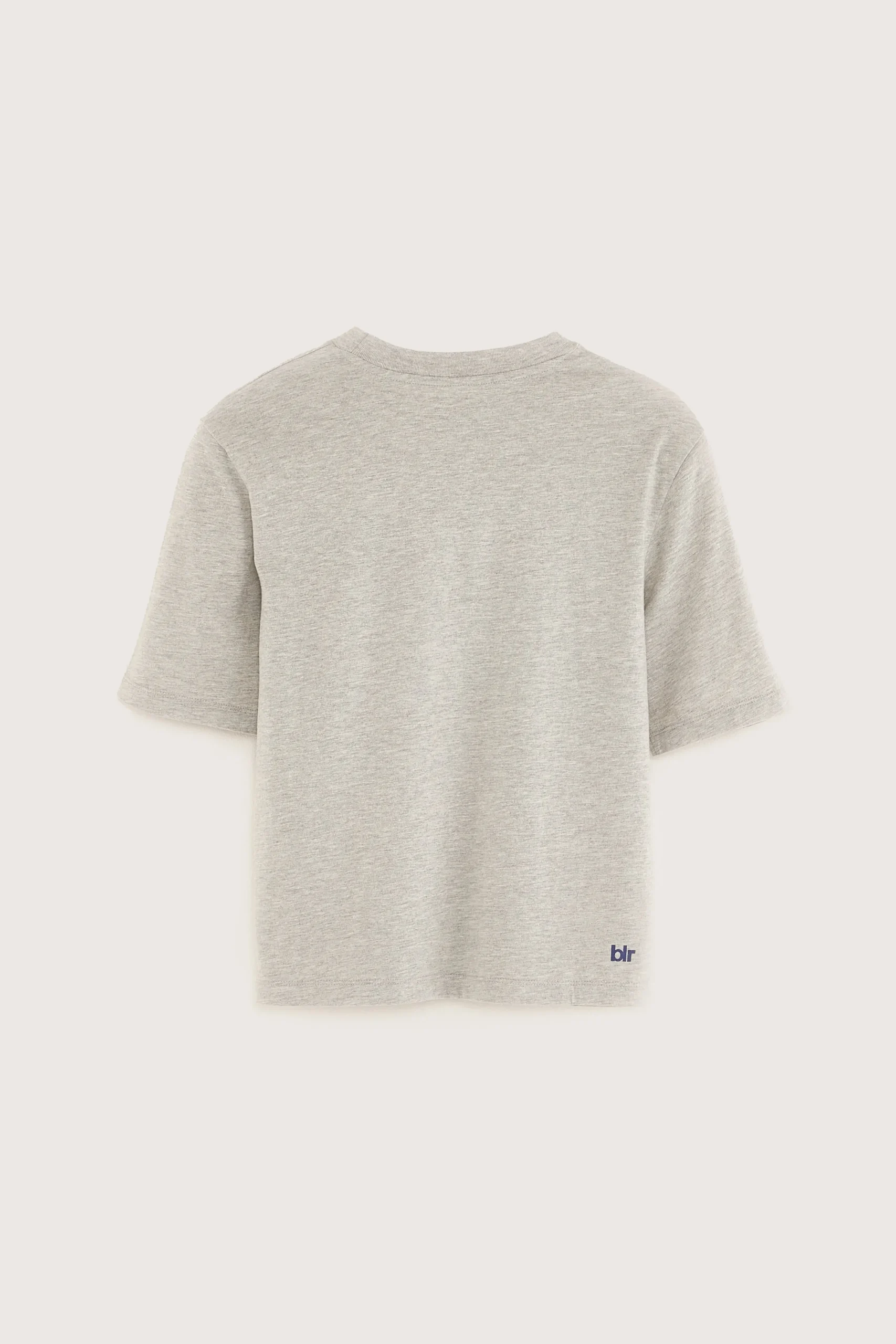 Los T-shirt met geribde ronde hals en korte mouwen van geborsteld, heidegrijs katoenjersey en afgewerkt met een op surfe…
