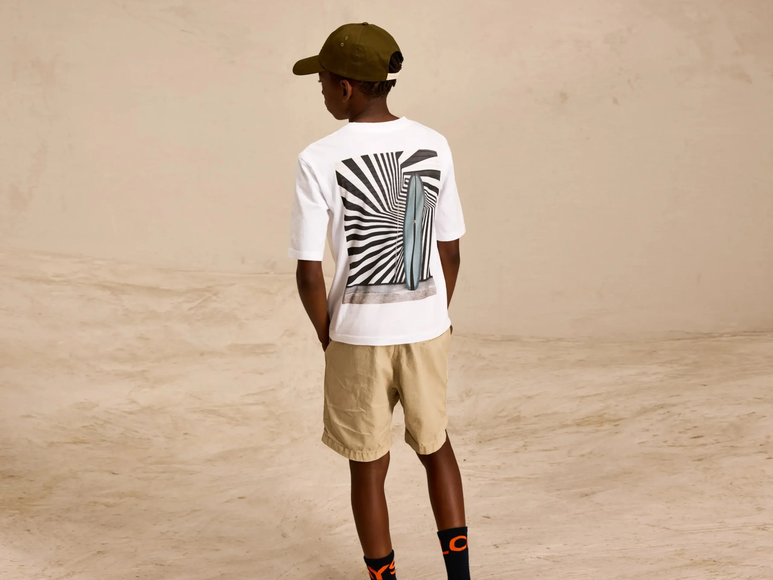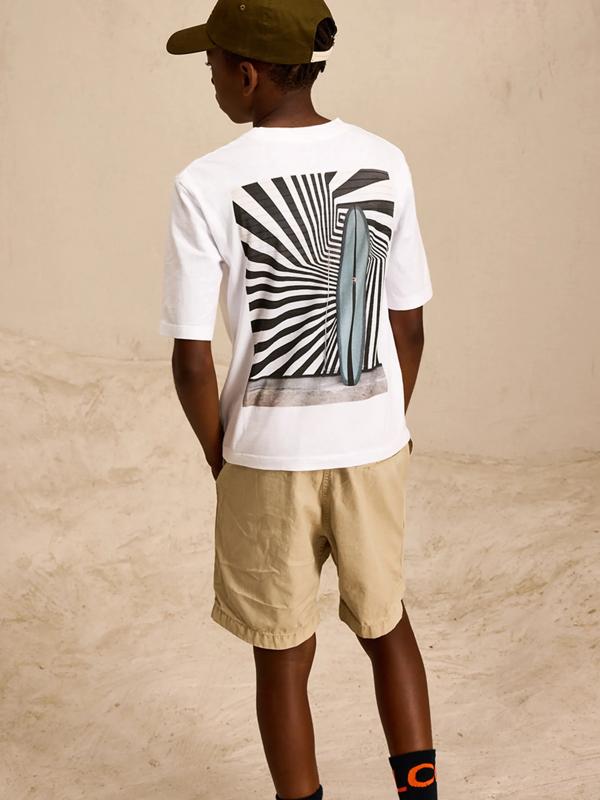 Los T-shirt met geribde ronde hals en korte mouwen van geborsteld, wit katoenjersey en afgewerkt met een op surfen geïnspireerde fotoprint van Daniil Lavrovski op de achterkant.Losse pasvorm Geribde ronde hals Korte mouwen Print op achterkant Halfzwaar katoenjersey
