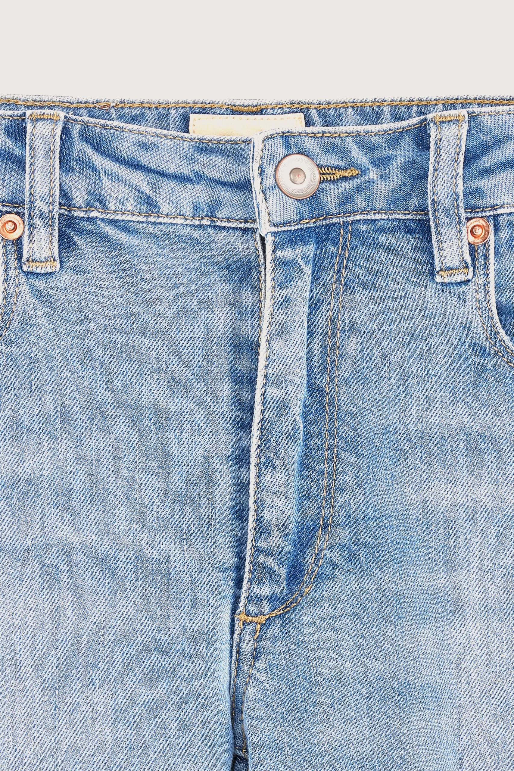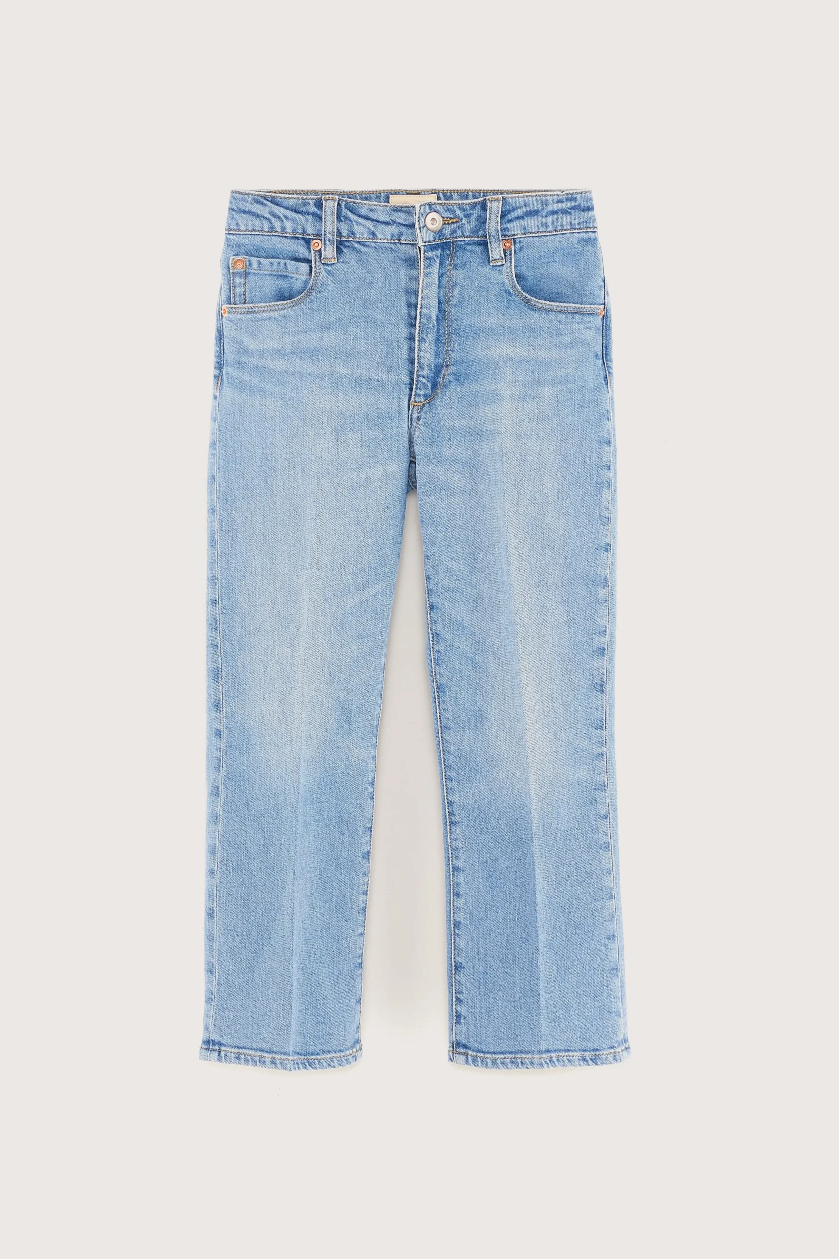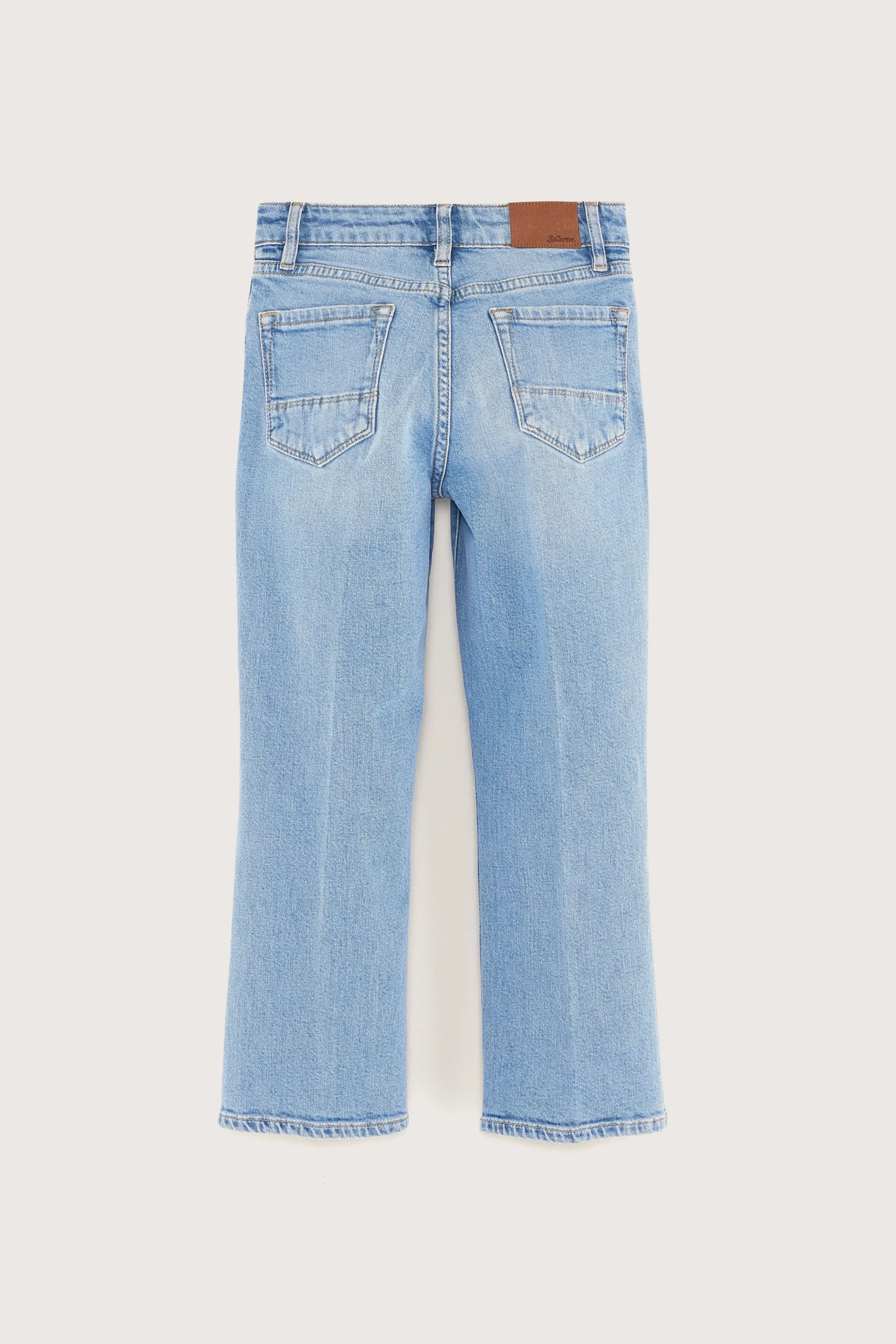 Klassieke 5-pocketjeans met halfhoge taille en flared 7/8-pijpen, gemaakt van lichtblauw katoendenim met een vleugje stretch.Klassieke pasvorm Halfhoge taille, flared-cropped pijpen Middelzwaar, lichte stretchRitssluiting