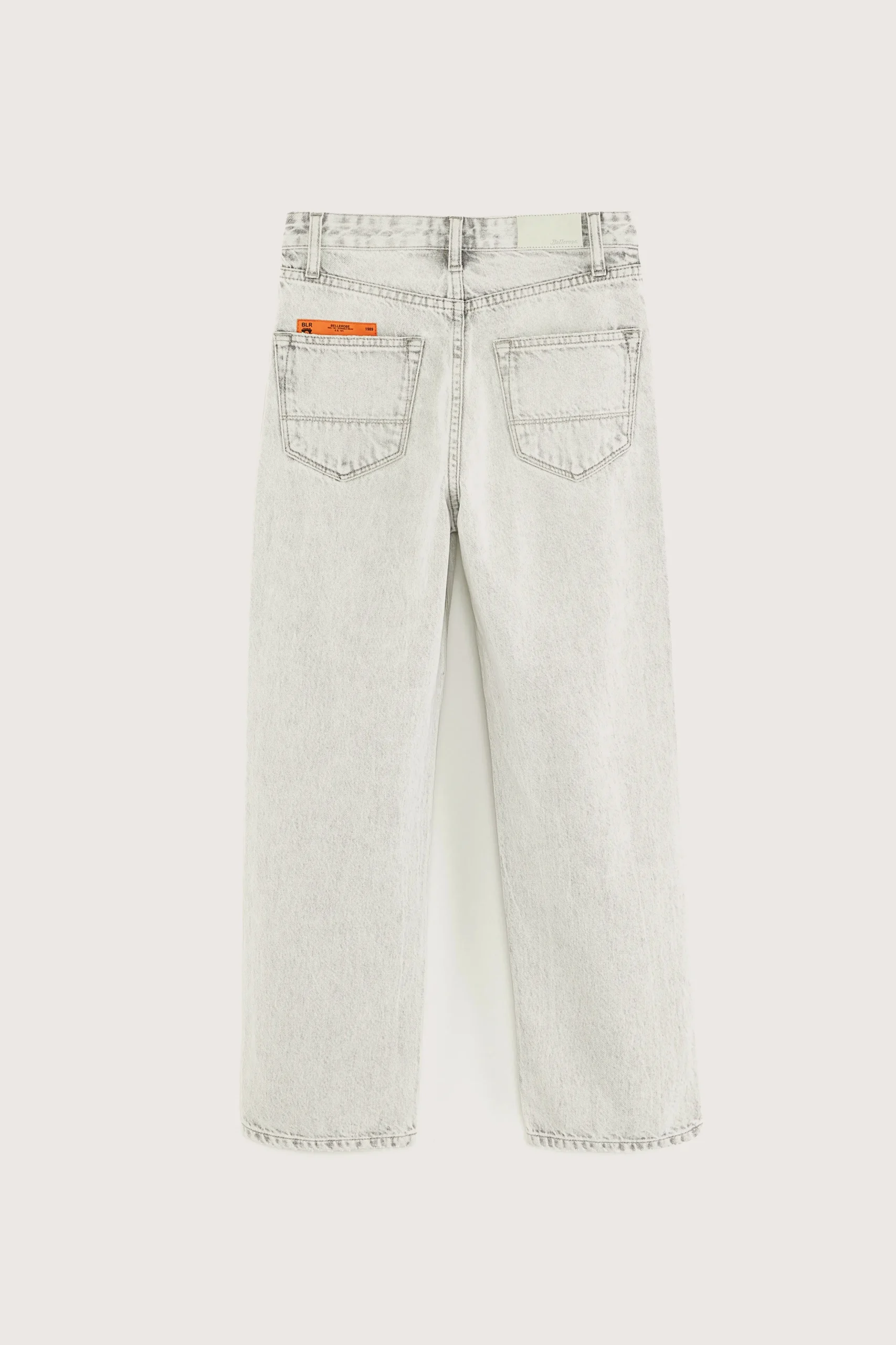 Relaxte 5-pocket jeans met mid-rise en wijde pijpen, gemaakt van grijs gebleekt katoen denim.Relaxte pasvorm Halfhoog, wijde pijpen Halfzwaar denim, geen stretchGulp met rits