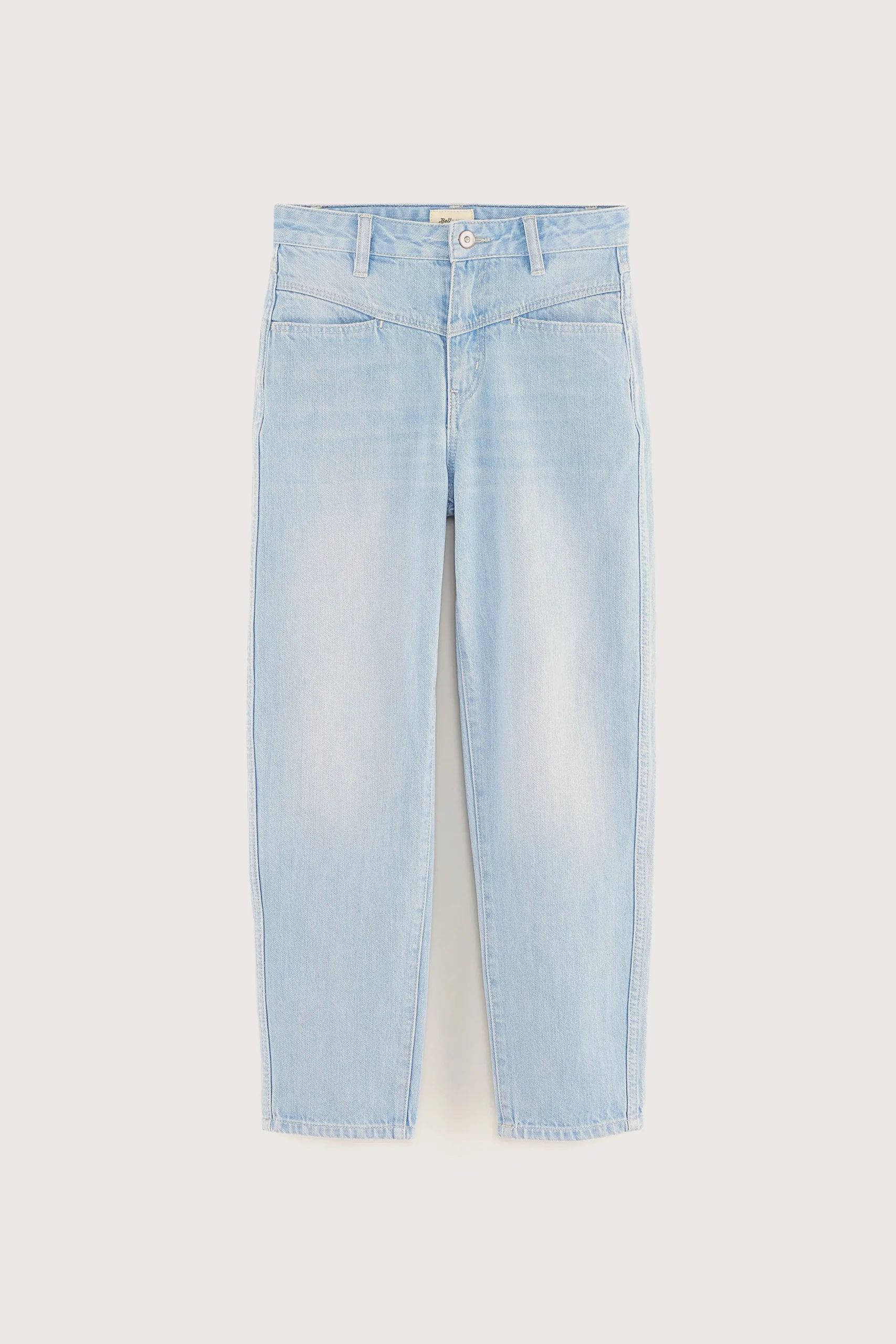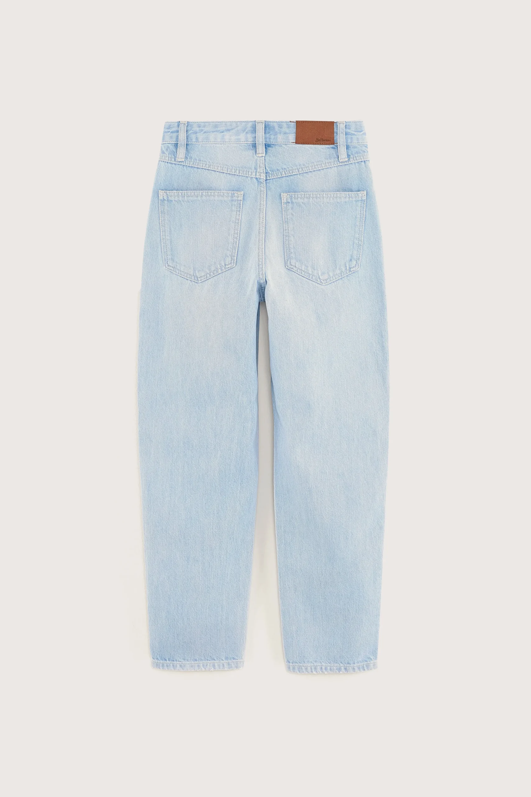 Klassieke jeans met hoge taille, tapered pijpen en X-pocket aan de voorkant, gemaakt van vintage, lichtblauw gewassen katoendenim.Klassieke pasvorm Hoge taille, tapered pijpen X-pocket aan de voorkant Middelzwaar, geen stretchRitssluiting