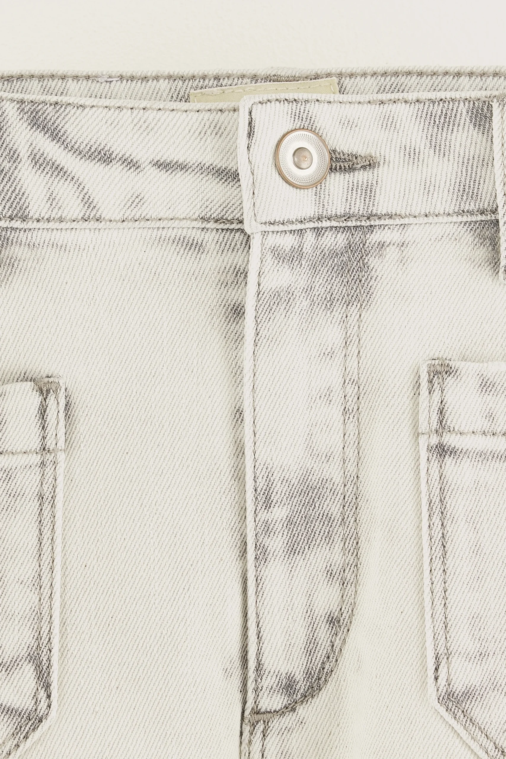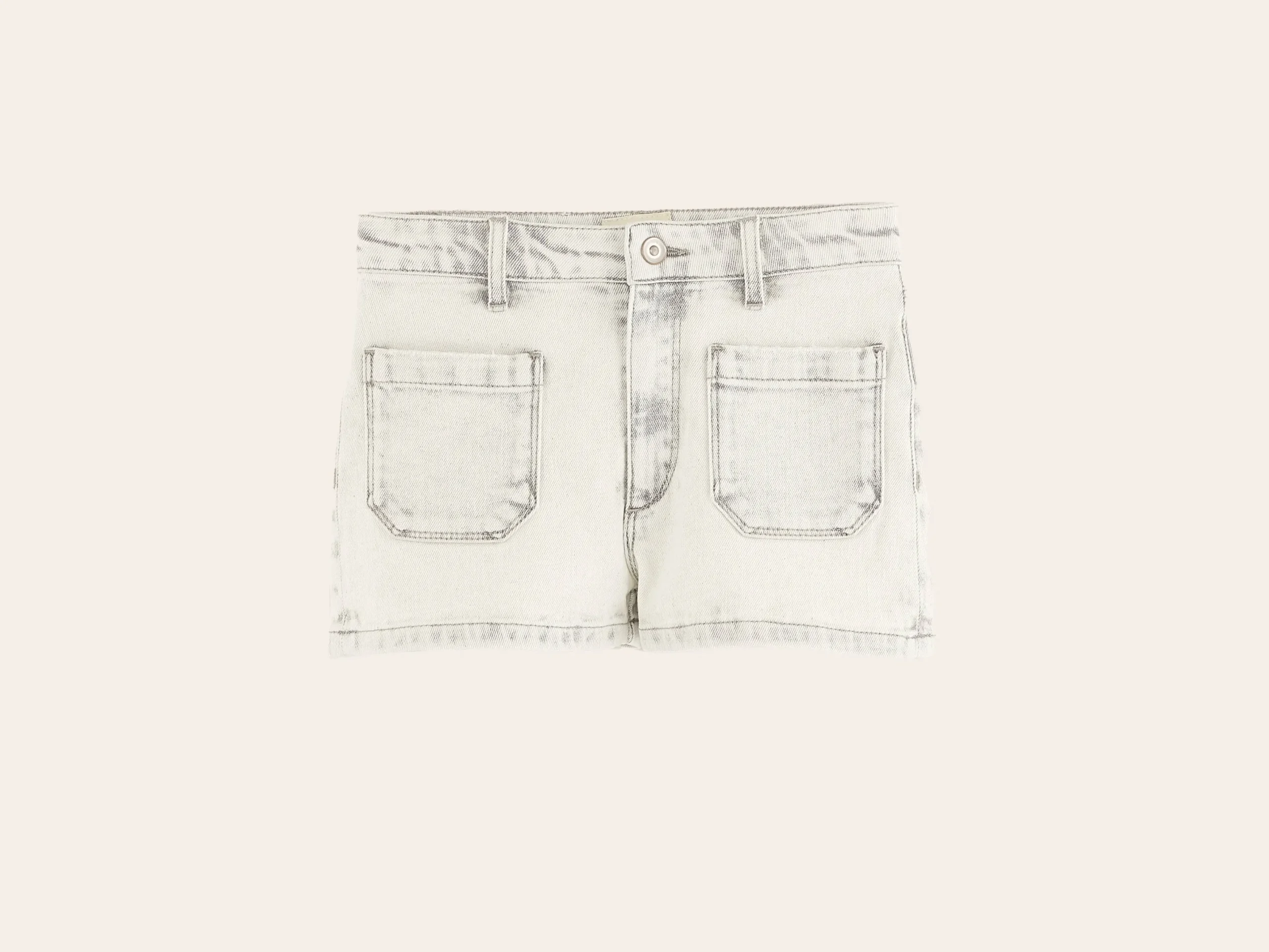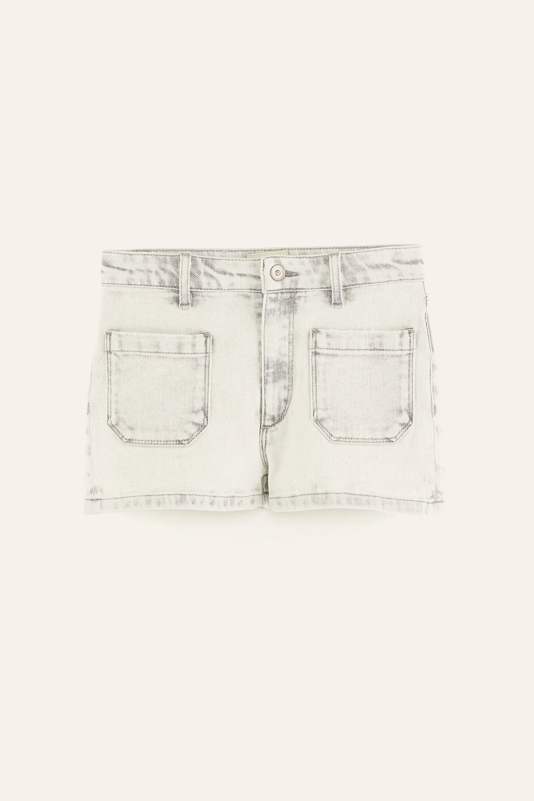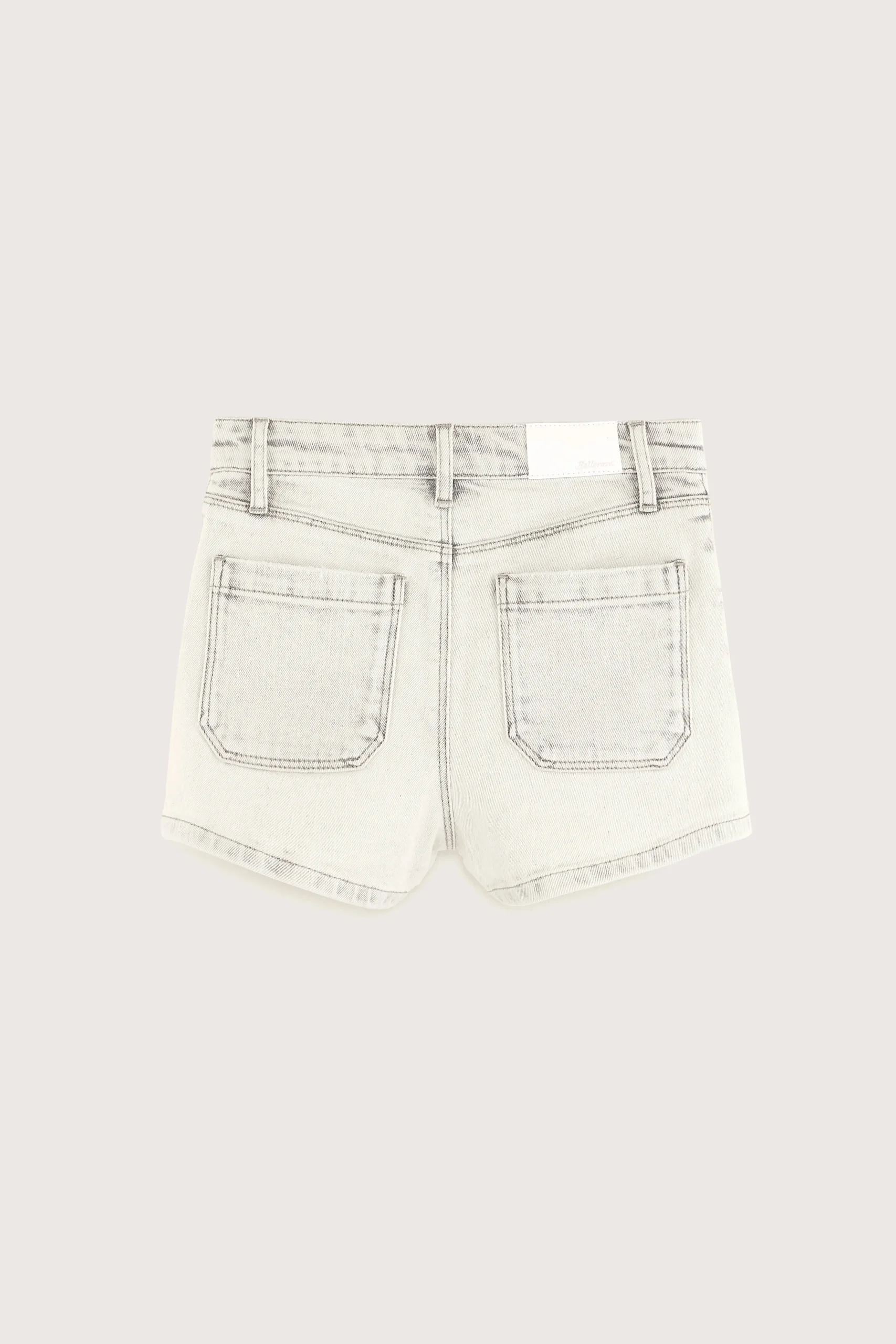 Nauwsluitende short met hoge taille, slim fit, rechte pijpen en gepatchte zakken aan de voor- en achterkant, gemaakt van lichtgrijs katoendenim.Slim fit Hoge taille, rechte pijpenLicht, lichte stretchGepatchte zakken aan de voor- en achterkant