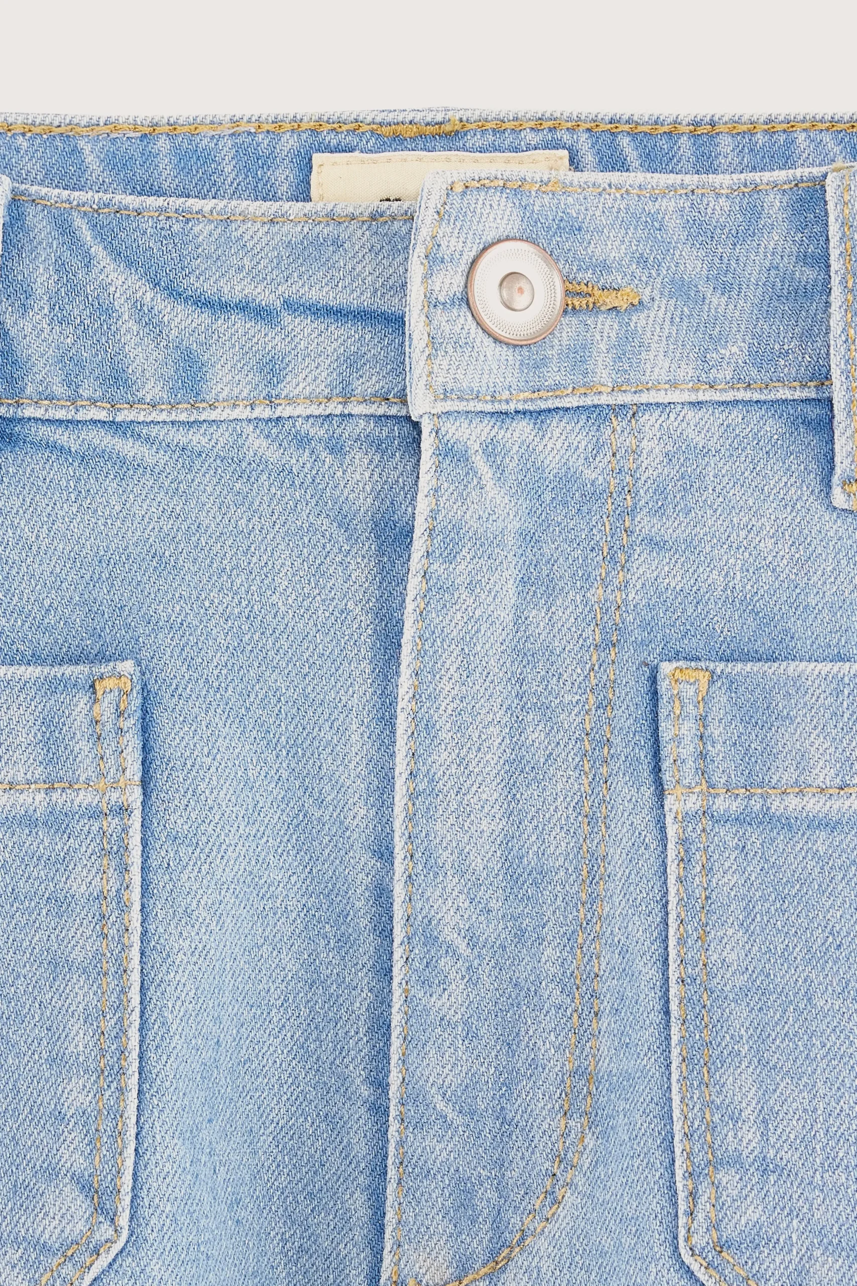 Short met hoge taille, slim fit, rechte pijpen en gepatchte zakken aan de voor- en achterkant, gemaakt van lichtblauw de…