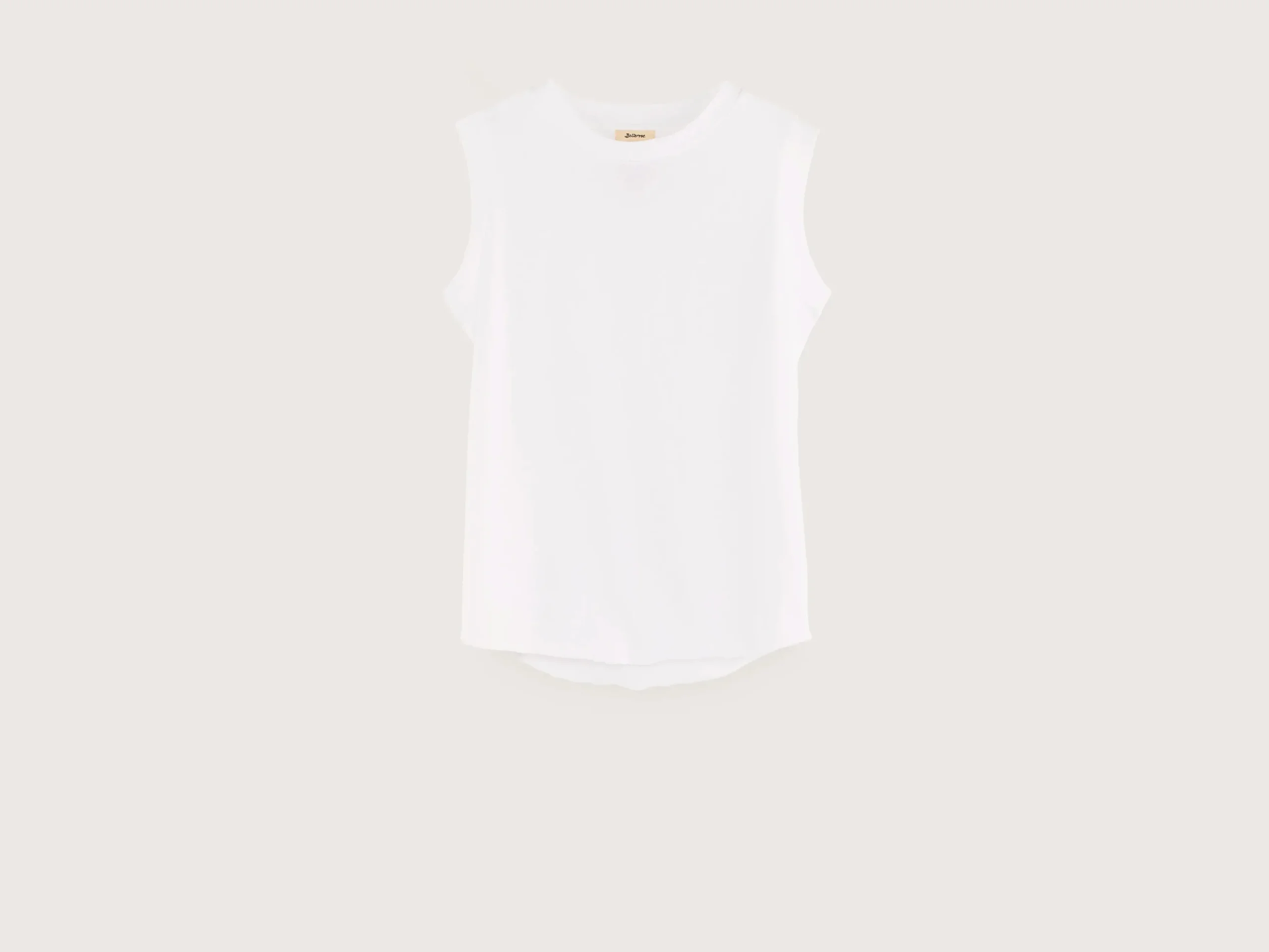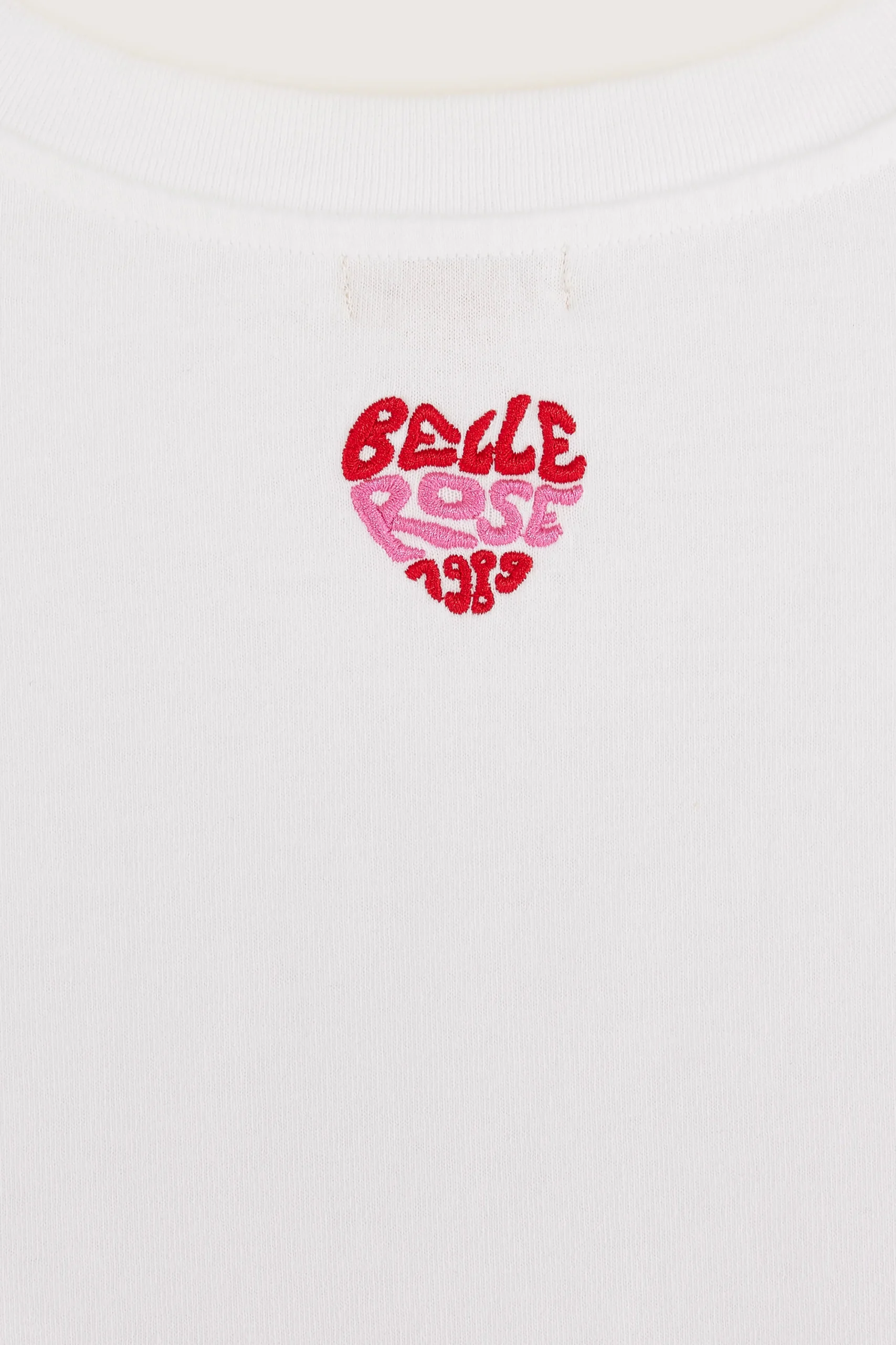 Losse tanktop met geribde boorden, gebogen zoom met gezekerde, onafgewerkte boorden en geborduurd hartje op de rug, gemaakt van halfzwaar wit katoenjersey.Losse pasvorm Ronde hals Geribde boorden Gebogen zoom met gezekerde, onafgewerkte boordenHalfzwaar katoenenjerseyHartvormig Bellerose-borduursel met 1989 op de rug