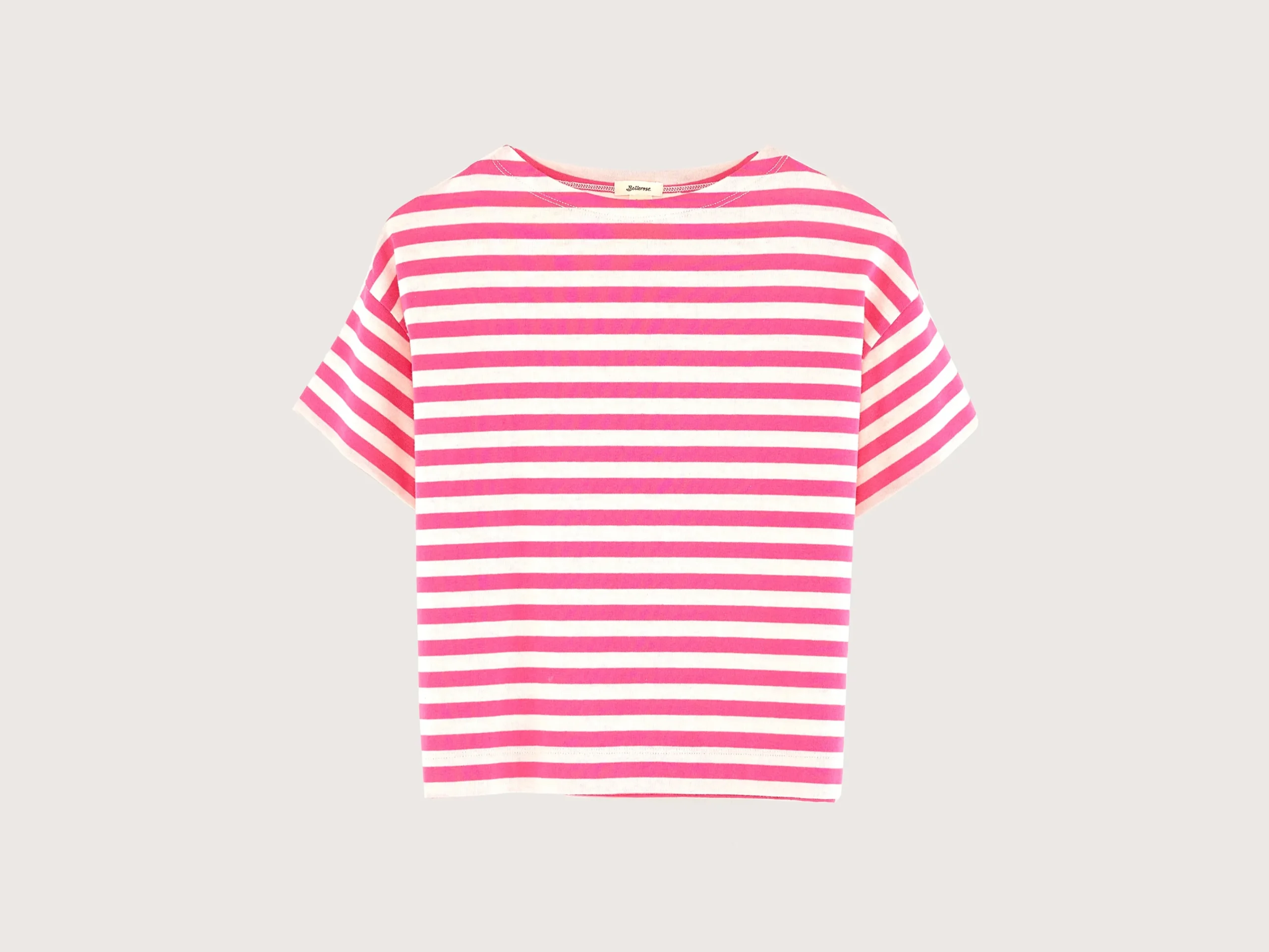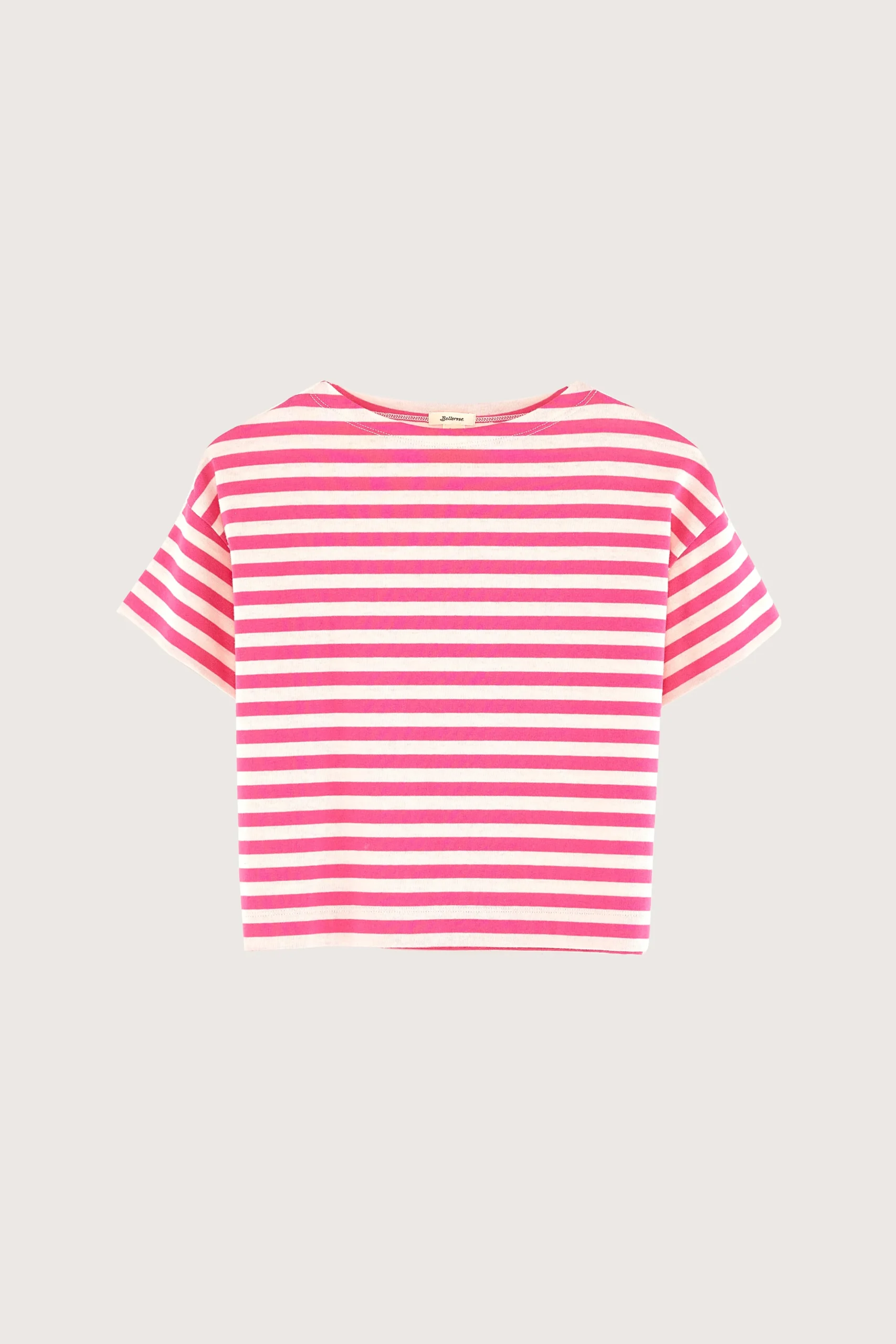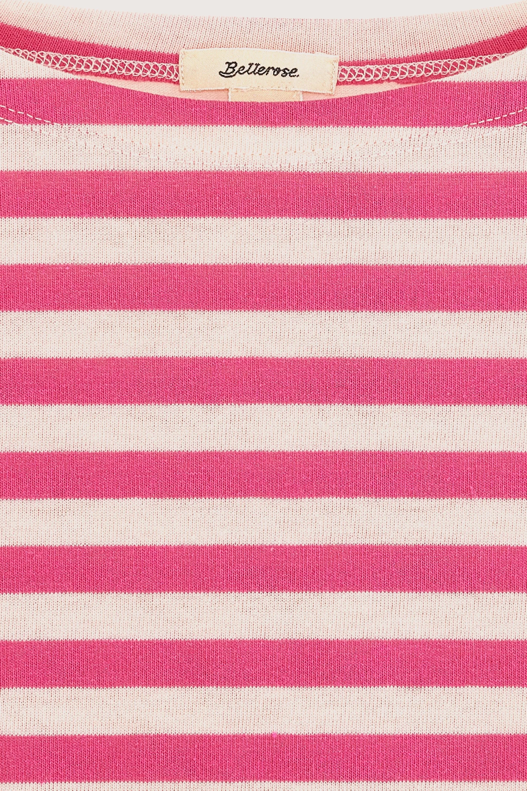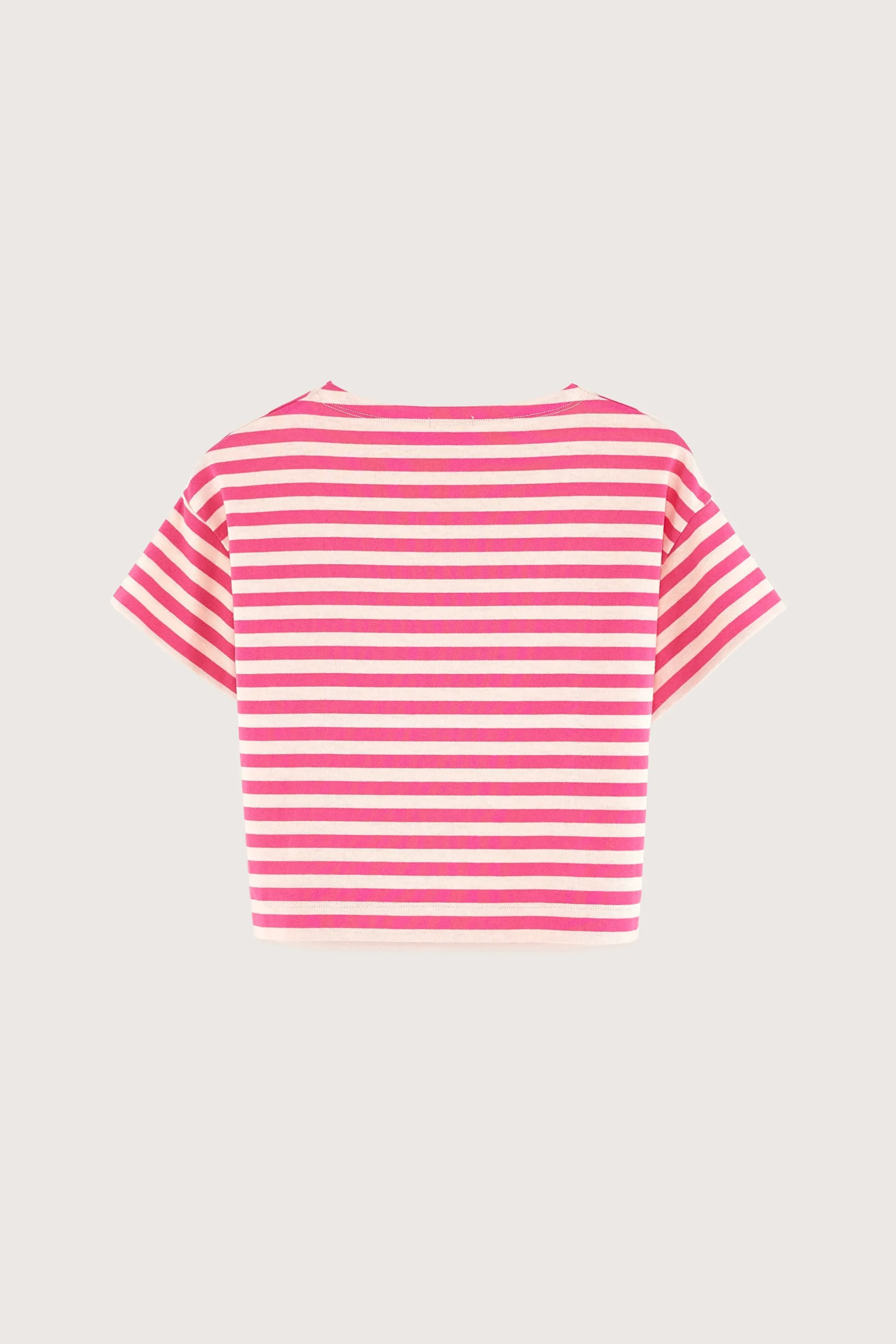 Los, cropped T-shirt met korte mouwen en ronde hals, gemaakt van halfzwaar katoenjersey met brede ecru en roze strepen.L…