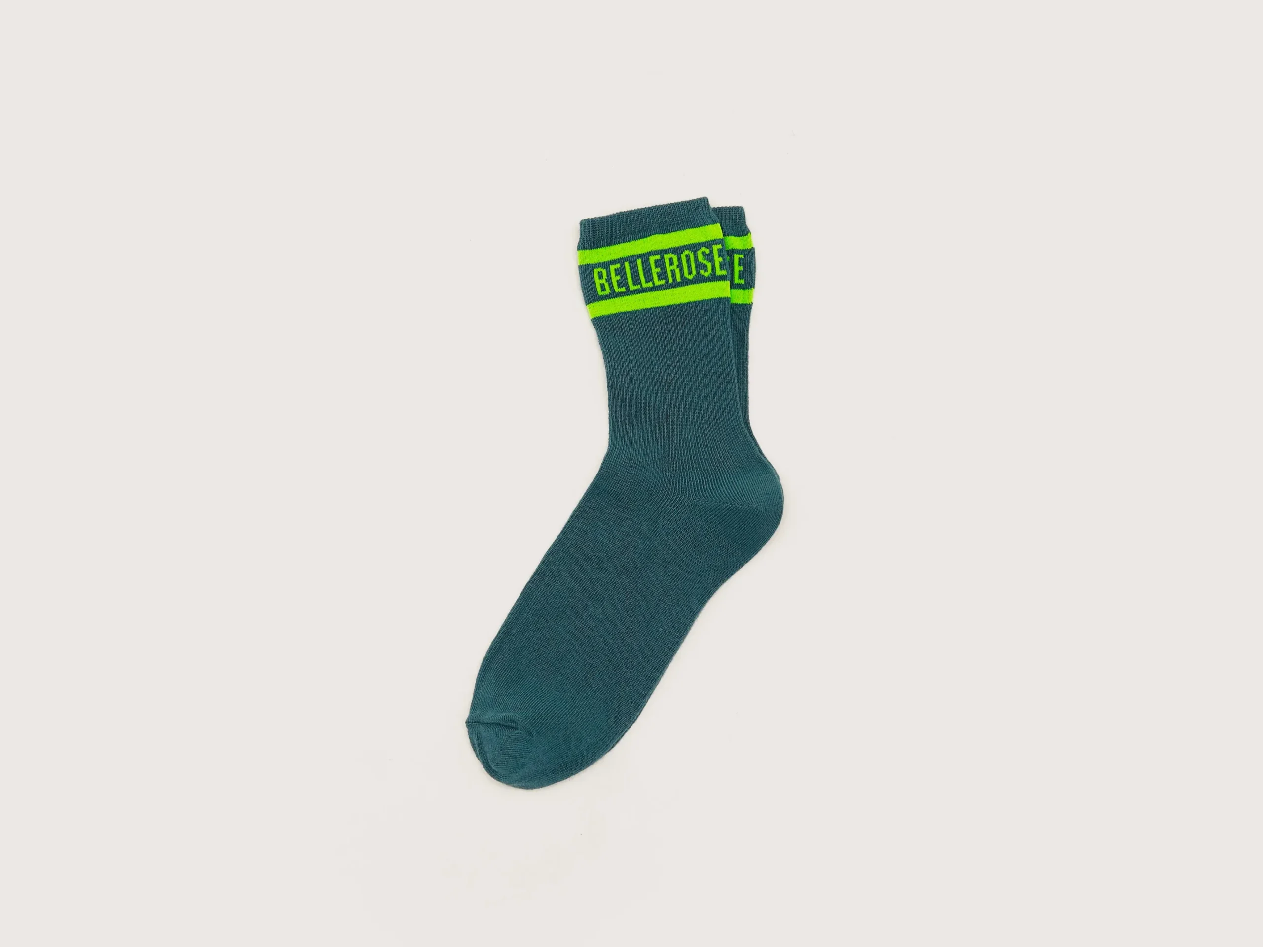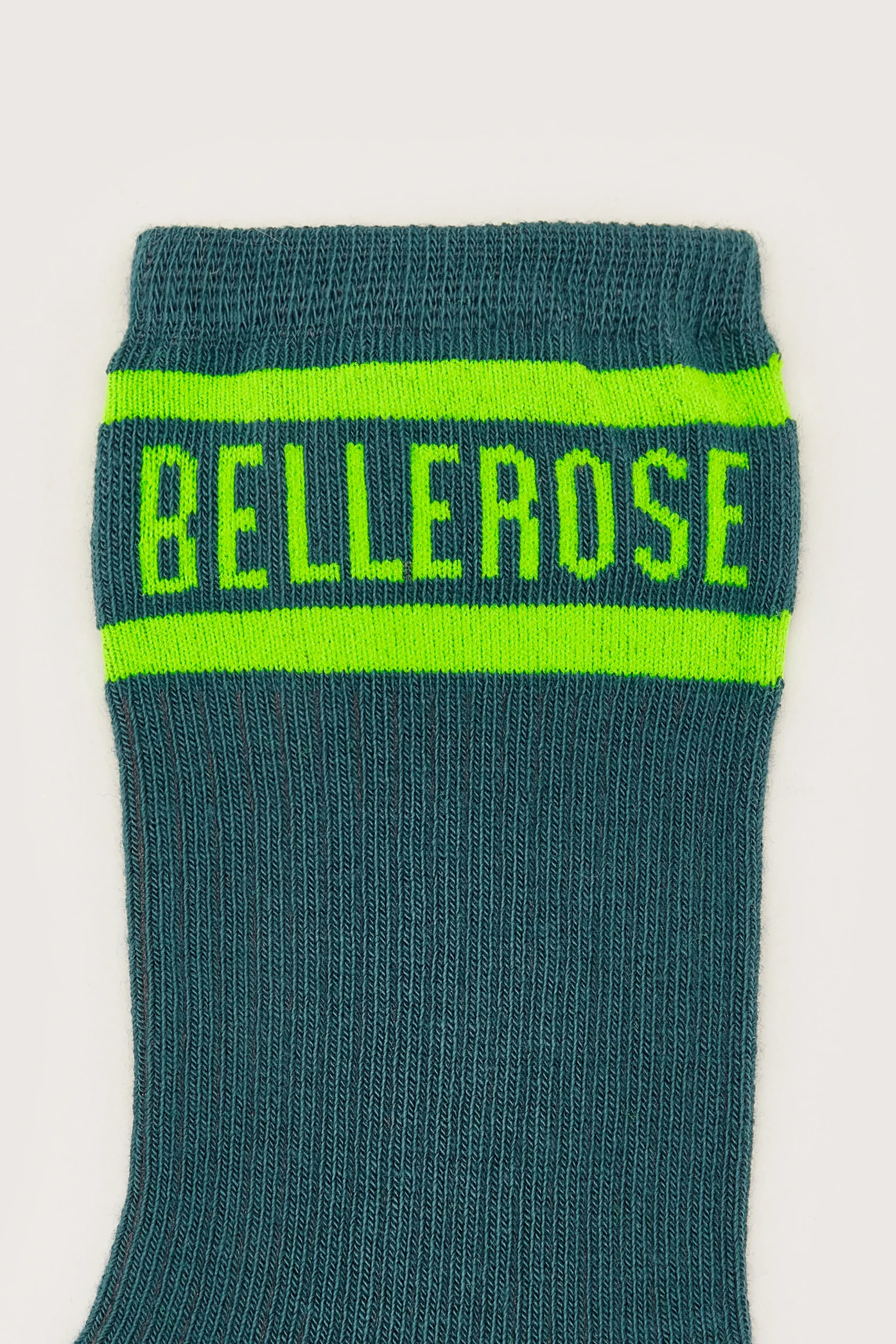 Halfhoge sokken met geribde bovenkant en contrasterend Bellerose-logo op de enkels, gemaakt van zacht, blauwgroen katoen…