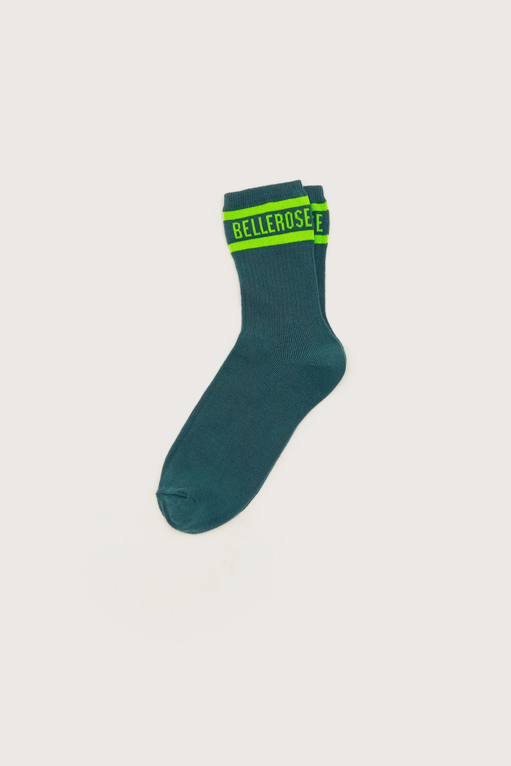 Halfhoge sokken met geribde bovenkant en contrasterend Bellerose-logo op de enkels, gemaakt van zacht, blauwgroen katoen.HalfhoogGeribde bovenkant Groen Bellerose-logo