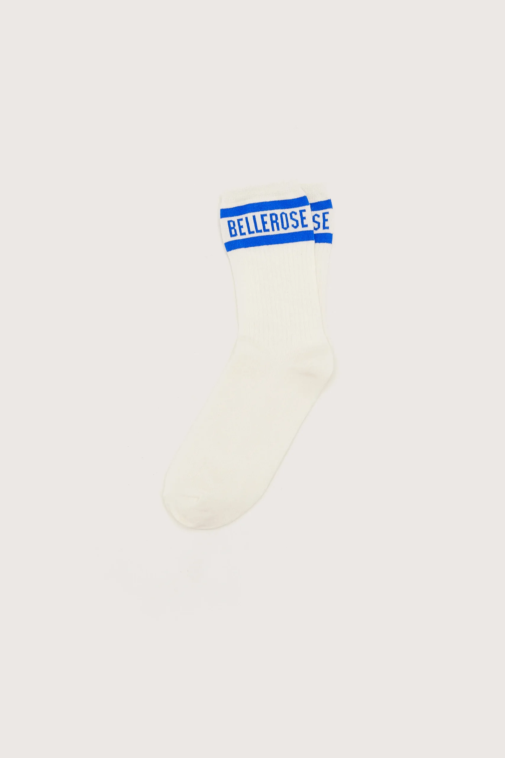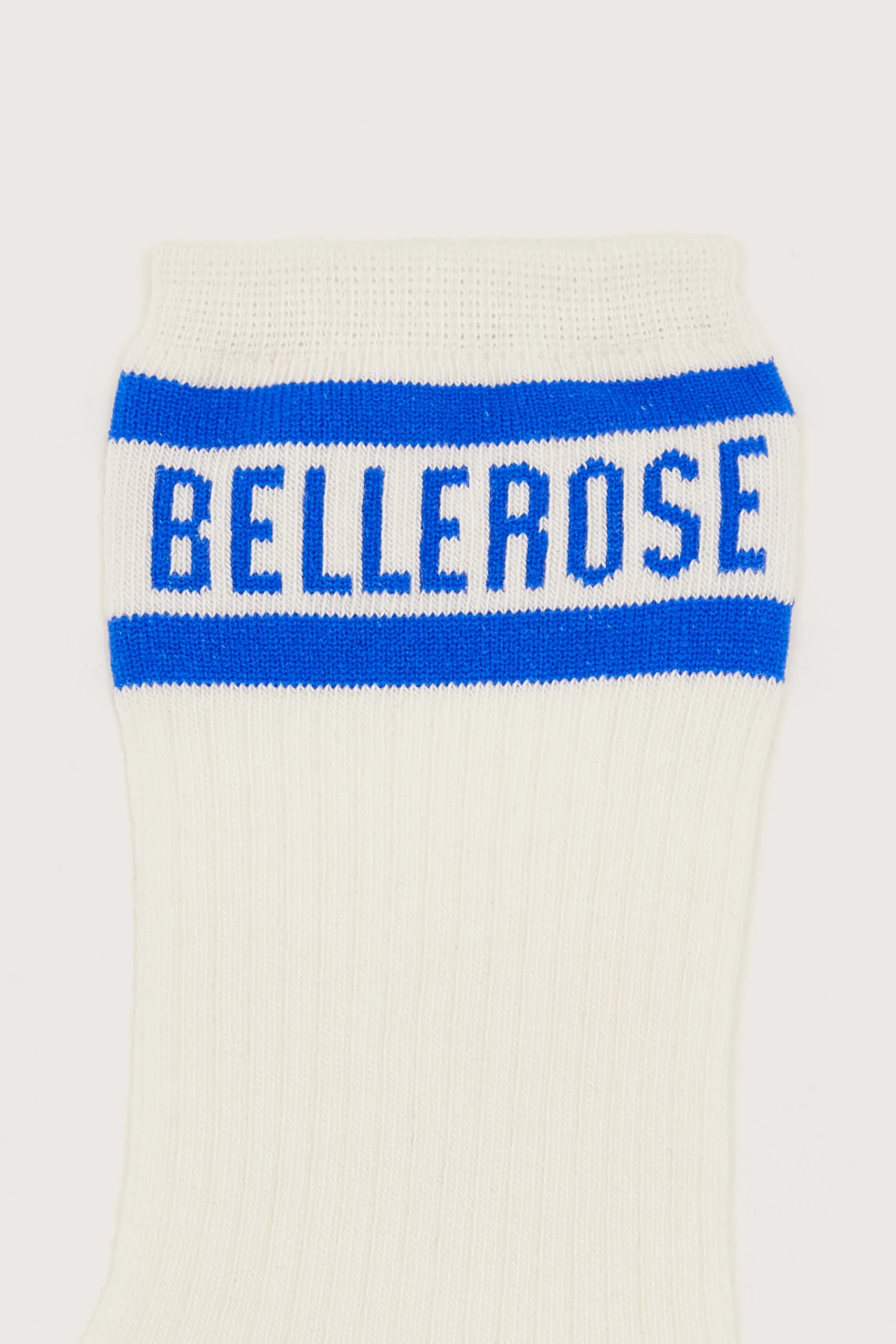 Halfhoge sokken met geribde bovenkant en contrasterend Bellerose-logo op de enkels, gemaakt van zacht, gebroken wit katoen.HalfhoogGeribde bovenkant Lazuli Bellerose-logo
