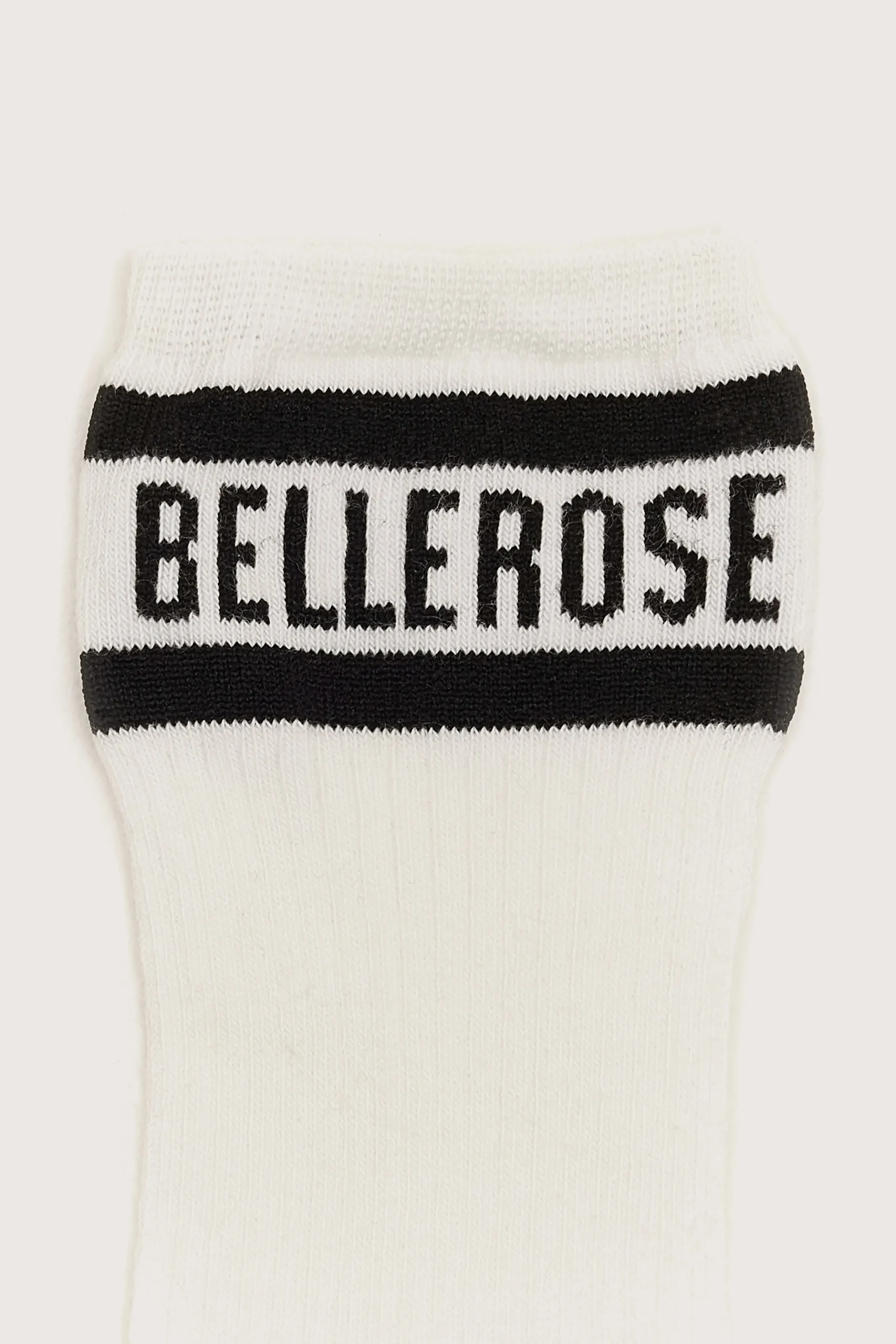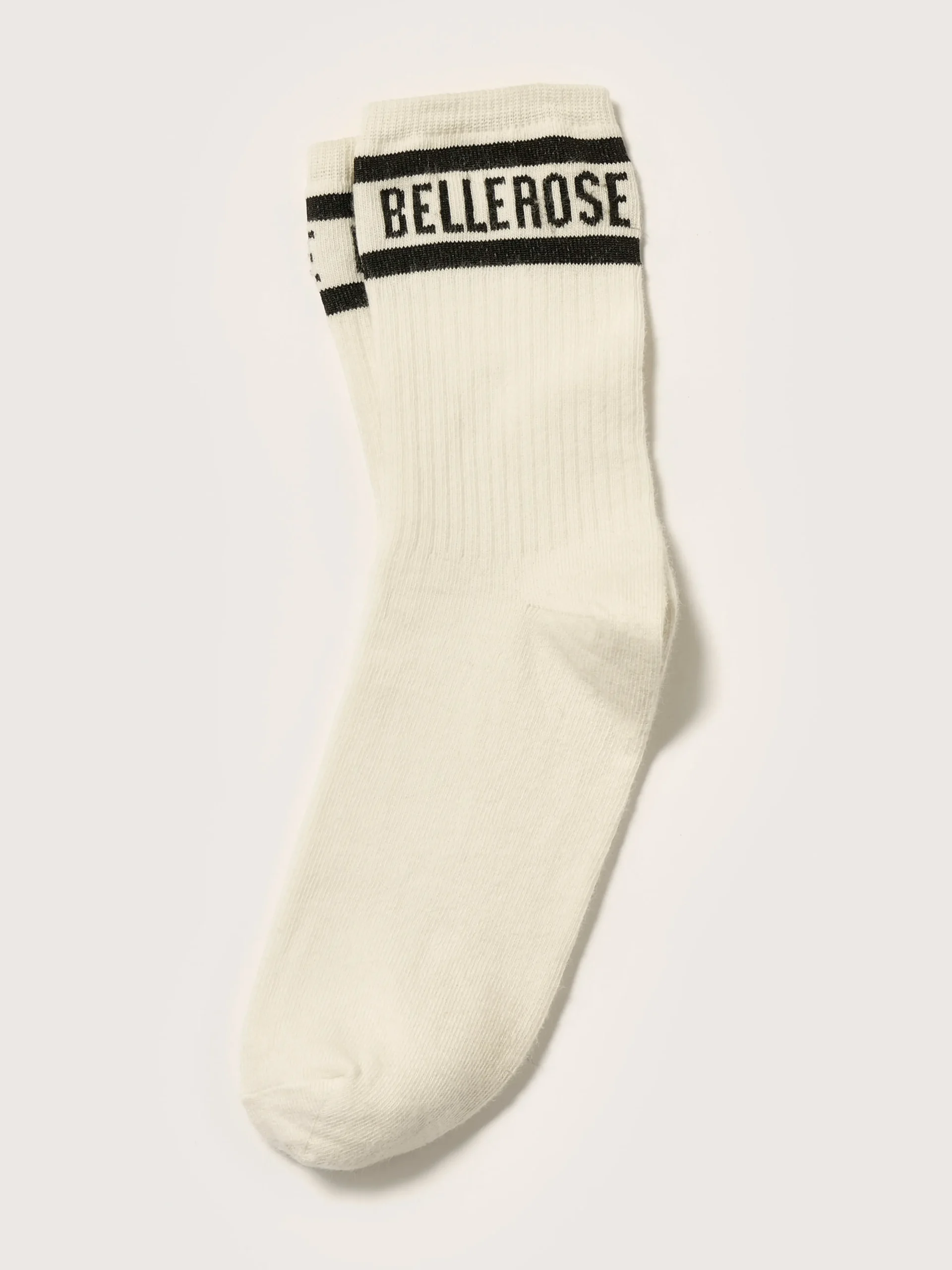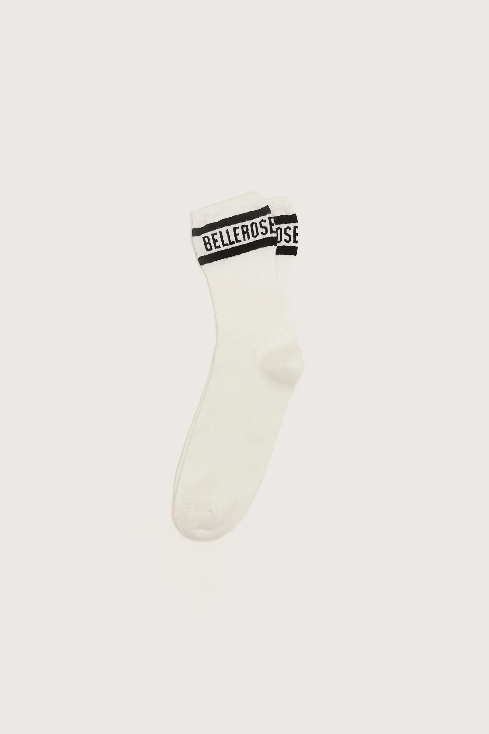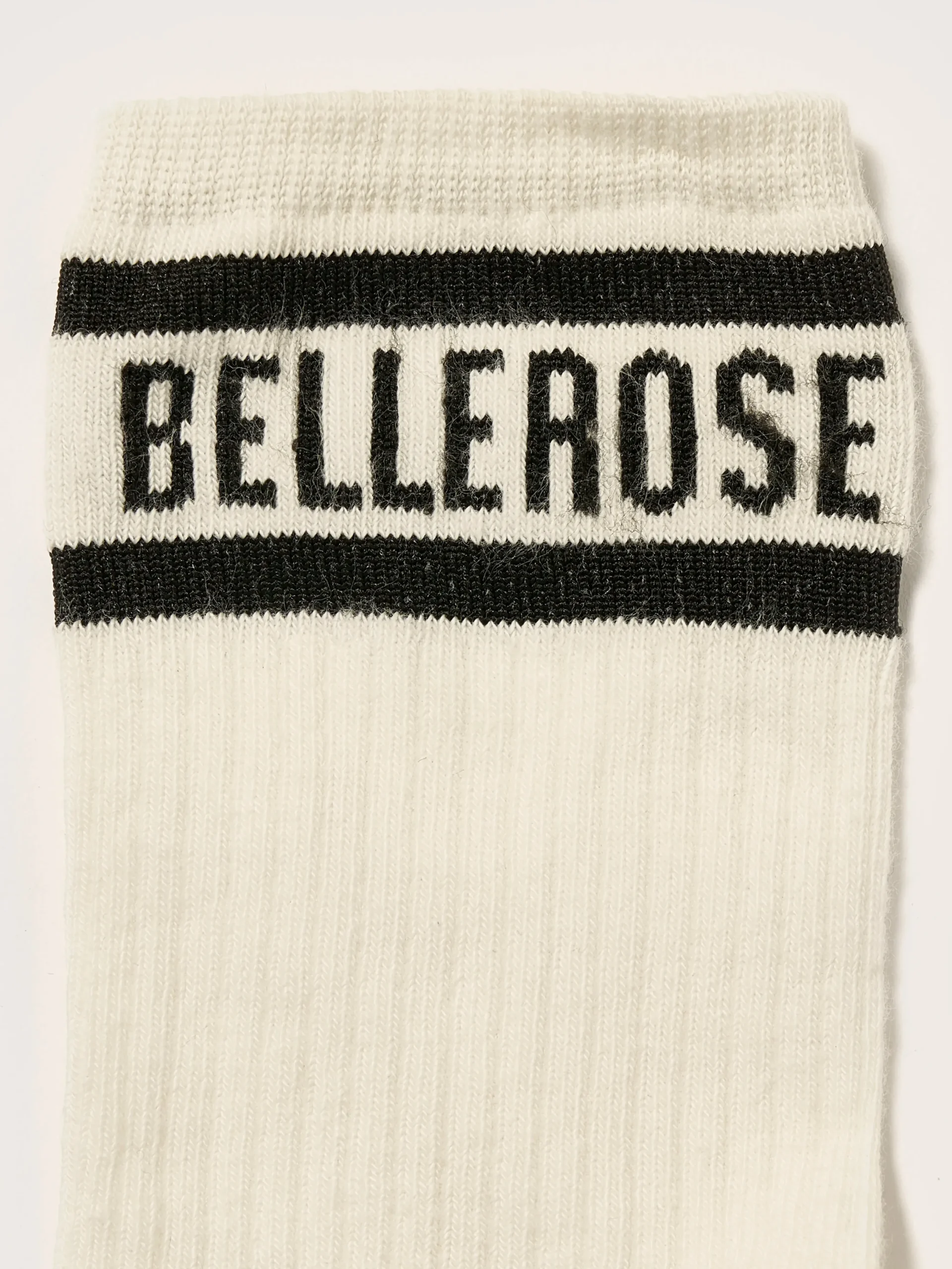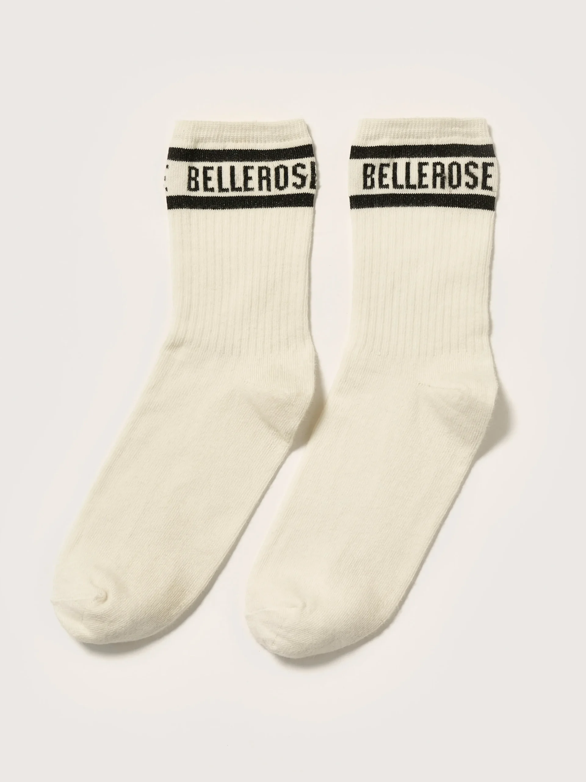 Klassieke sokken in ecru met Bellerose-logo in zwart op de enkel.rKlassieke crew pasvormrGeribde enkelsrContrasterend…