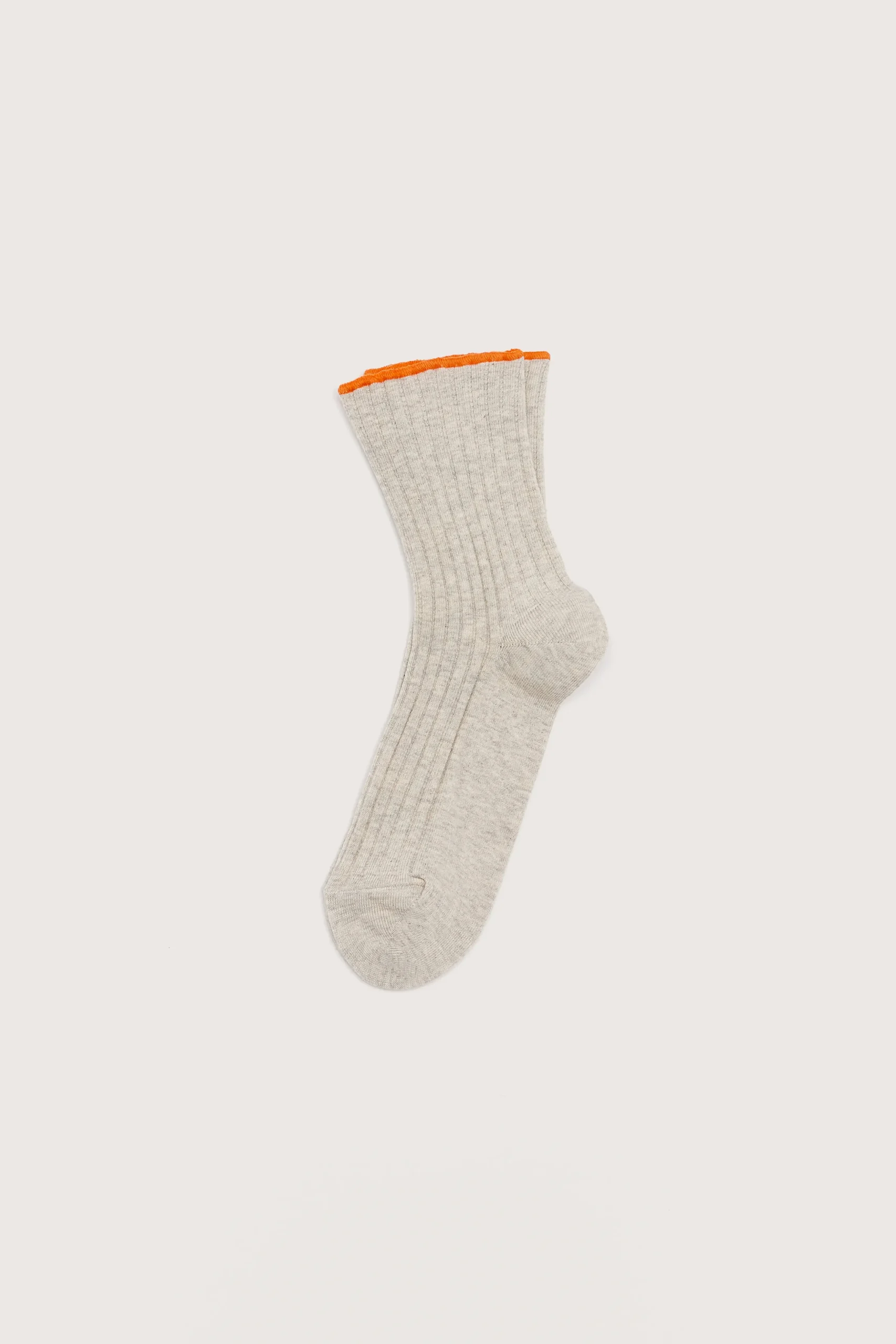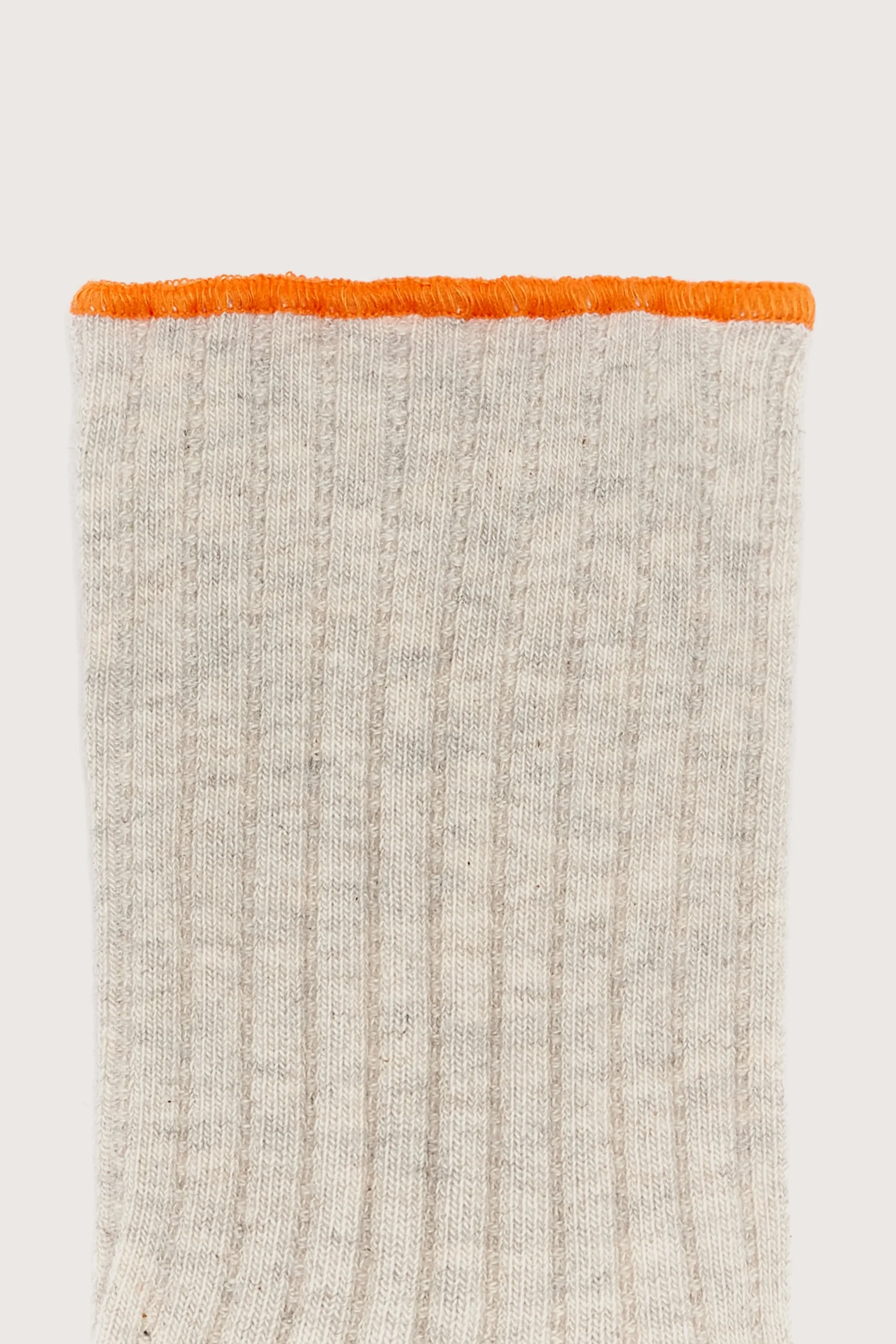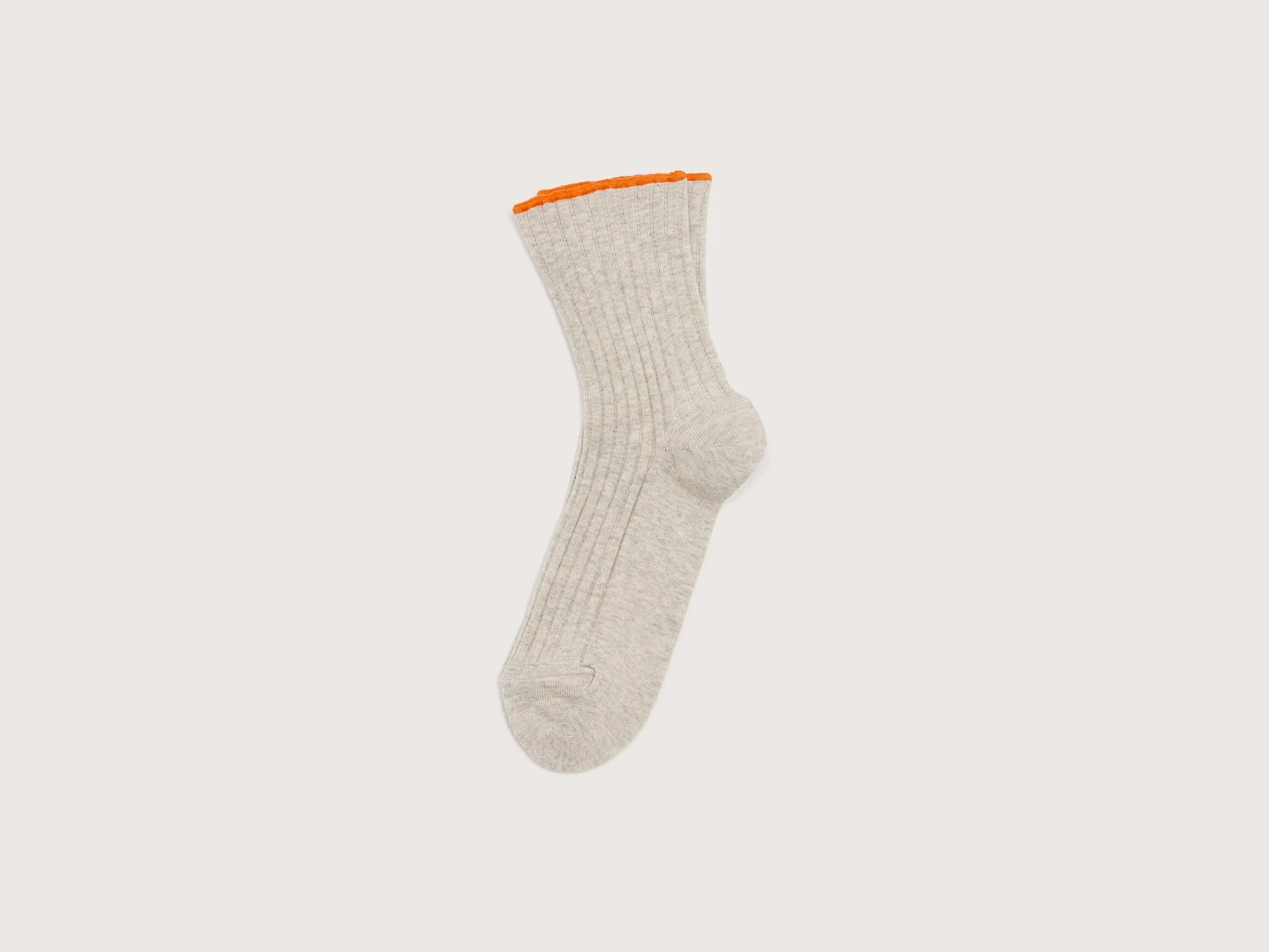 Klassieke sokken in ecru met Bellerose-logo in rood op de enkel.rKlassieke crew pasvormrGeribde enkelsrContrasterend …