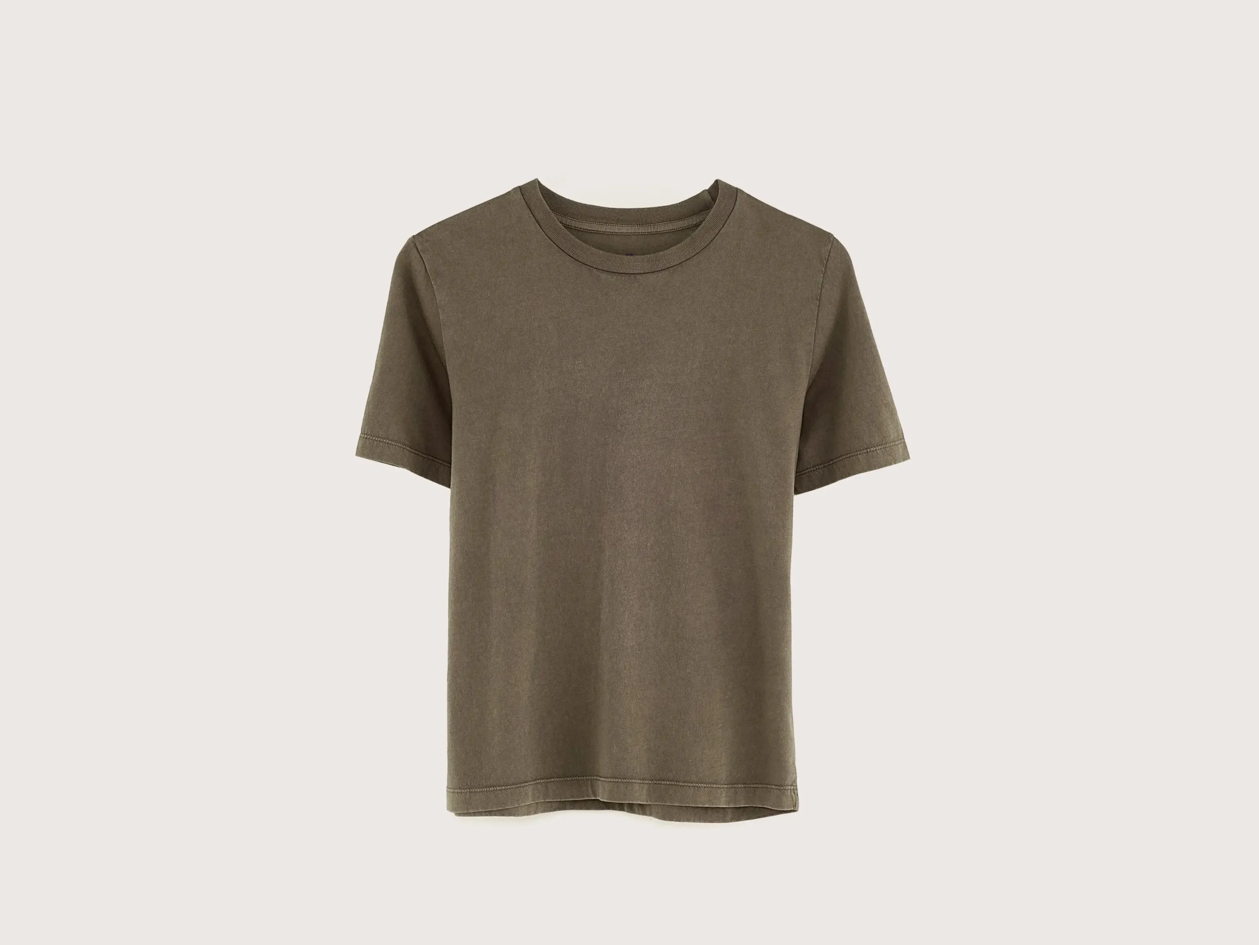Regular t-shirt met een ronde hals en korte mouwen van grijsgroen katoenen jersey.Regular pasvorm Geribde ronde hals Korte mouwen Katoenen jersey van gemiddeld gewicht