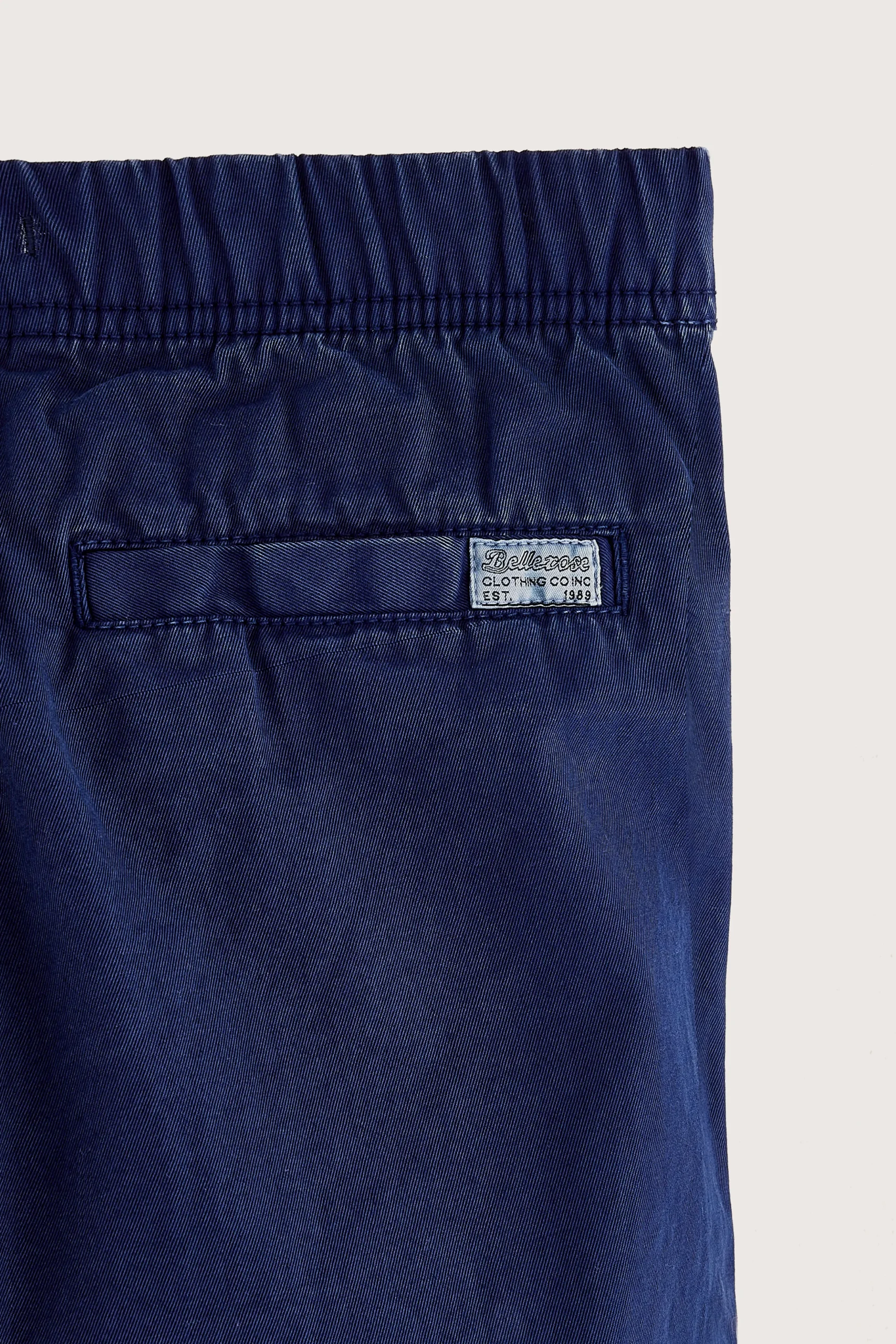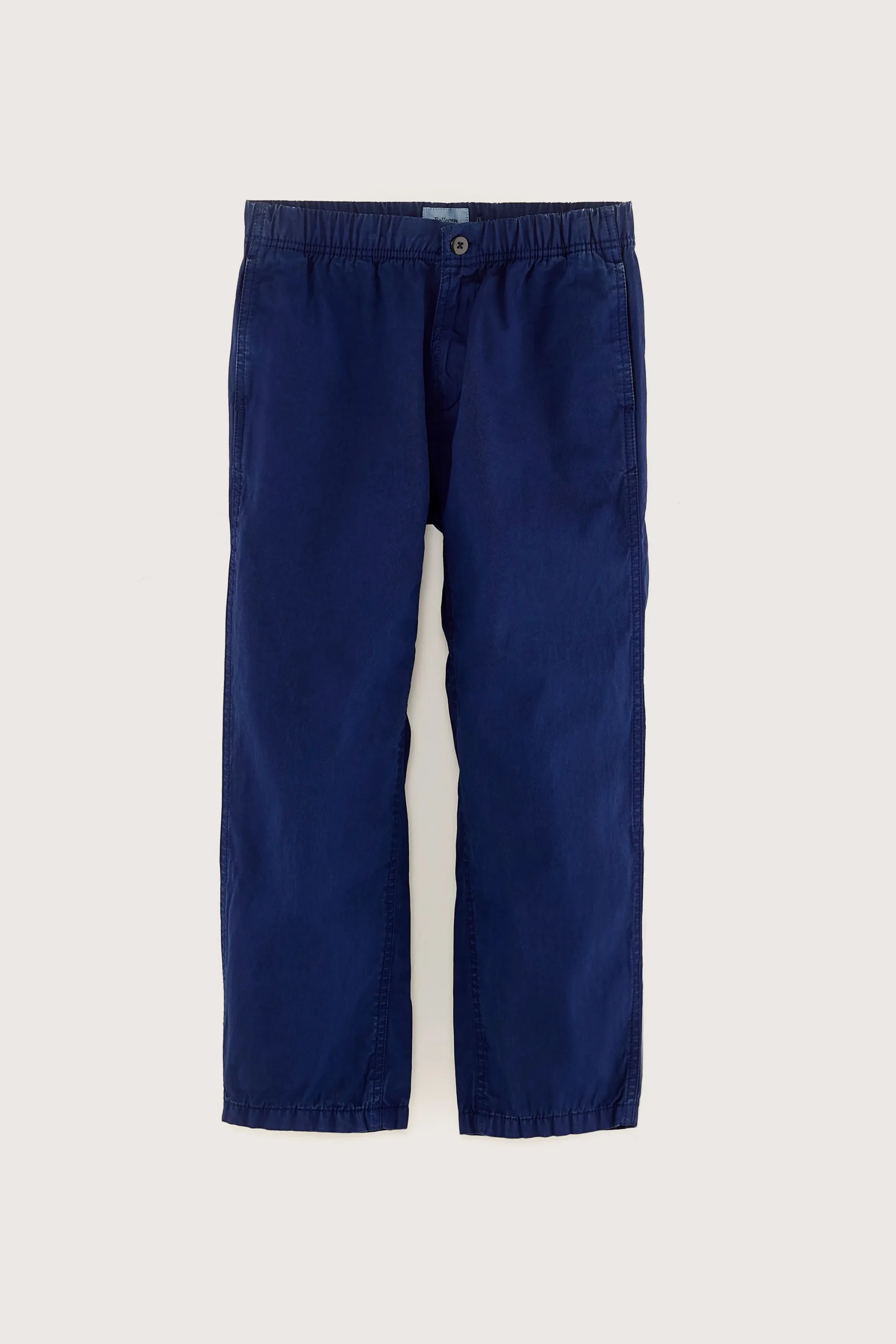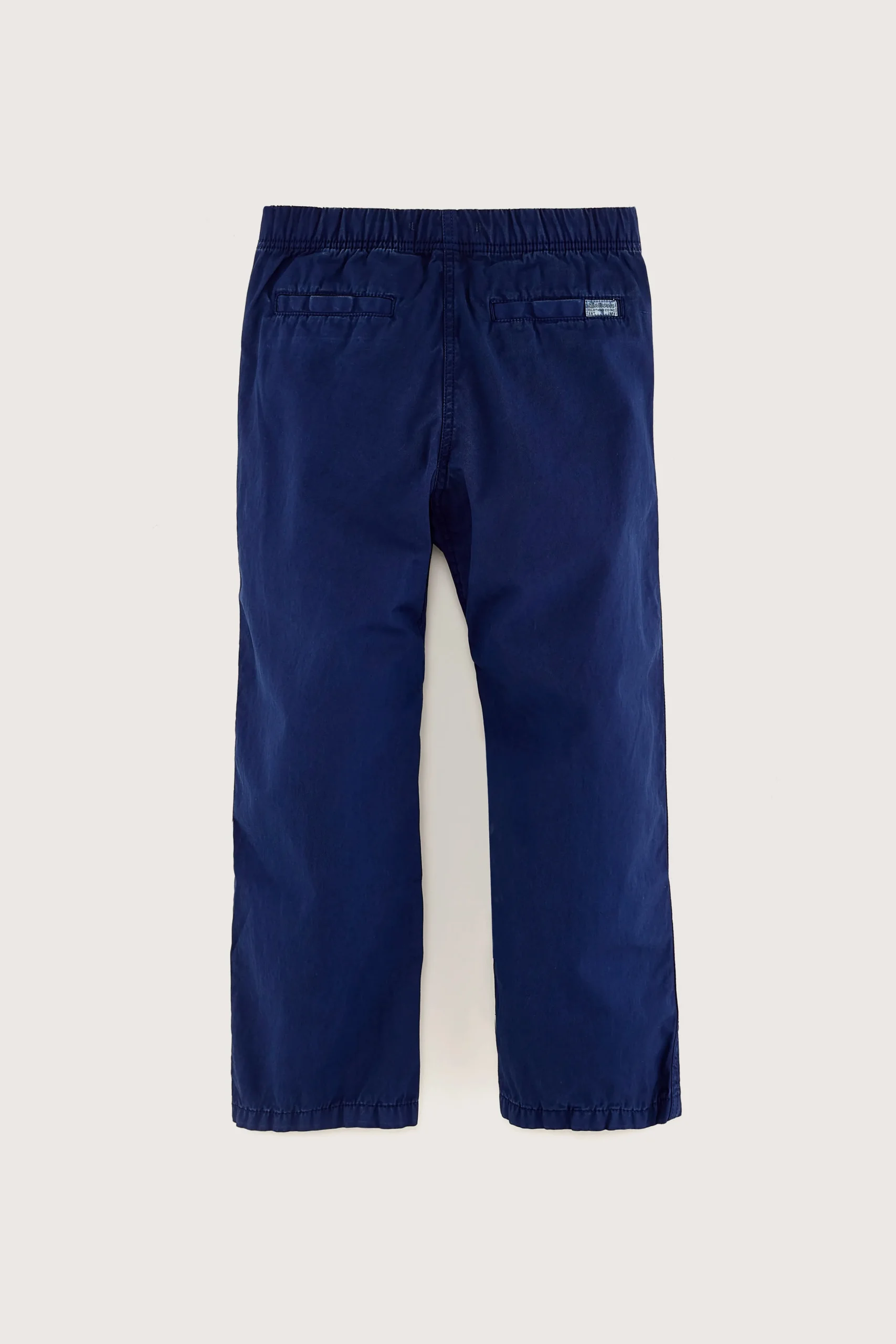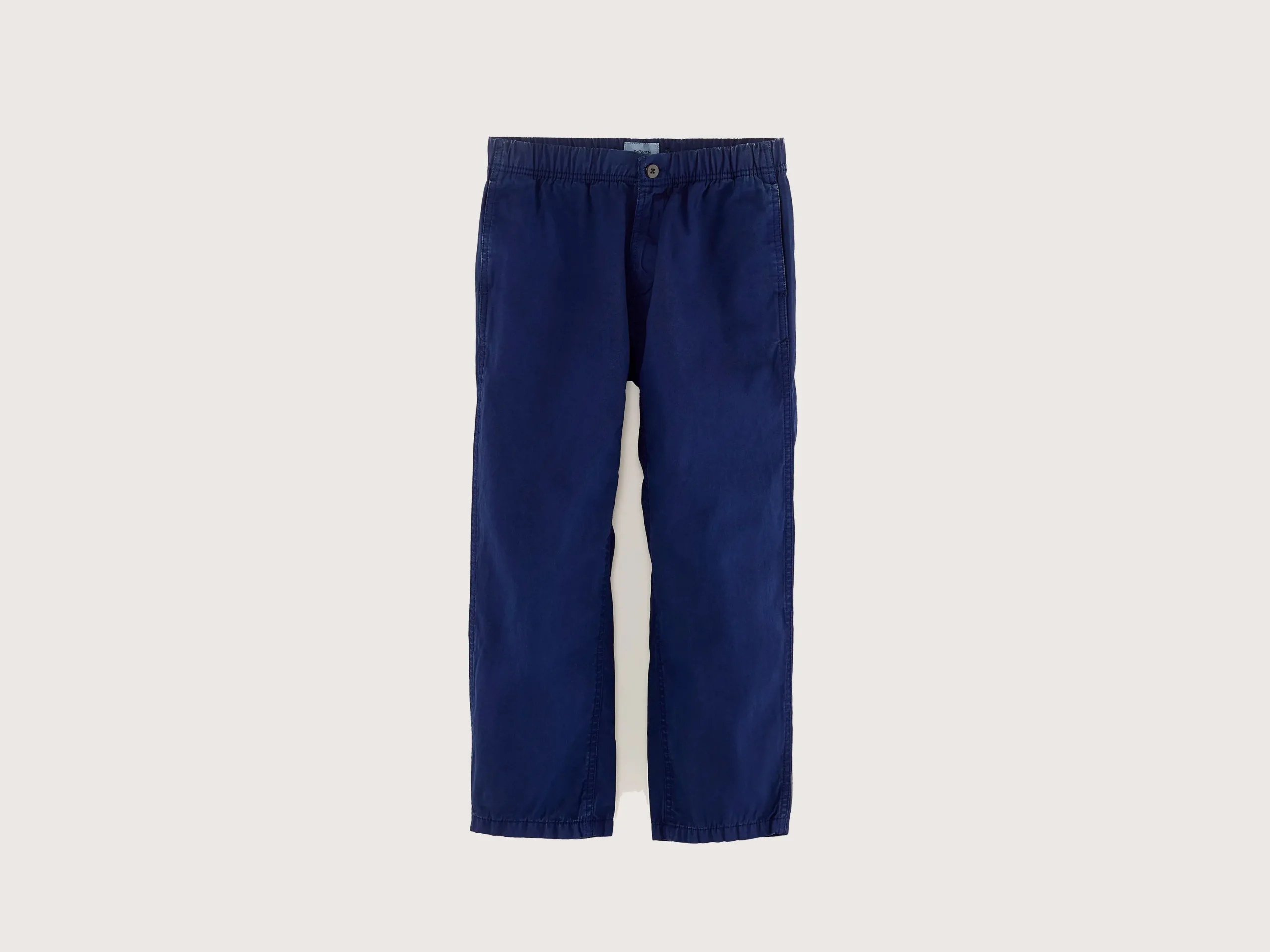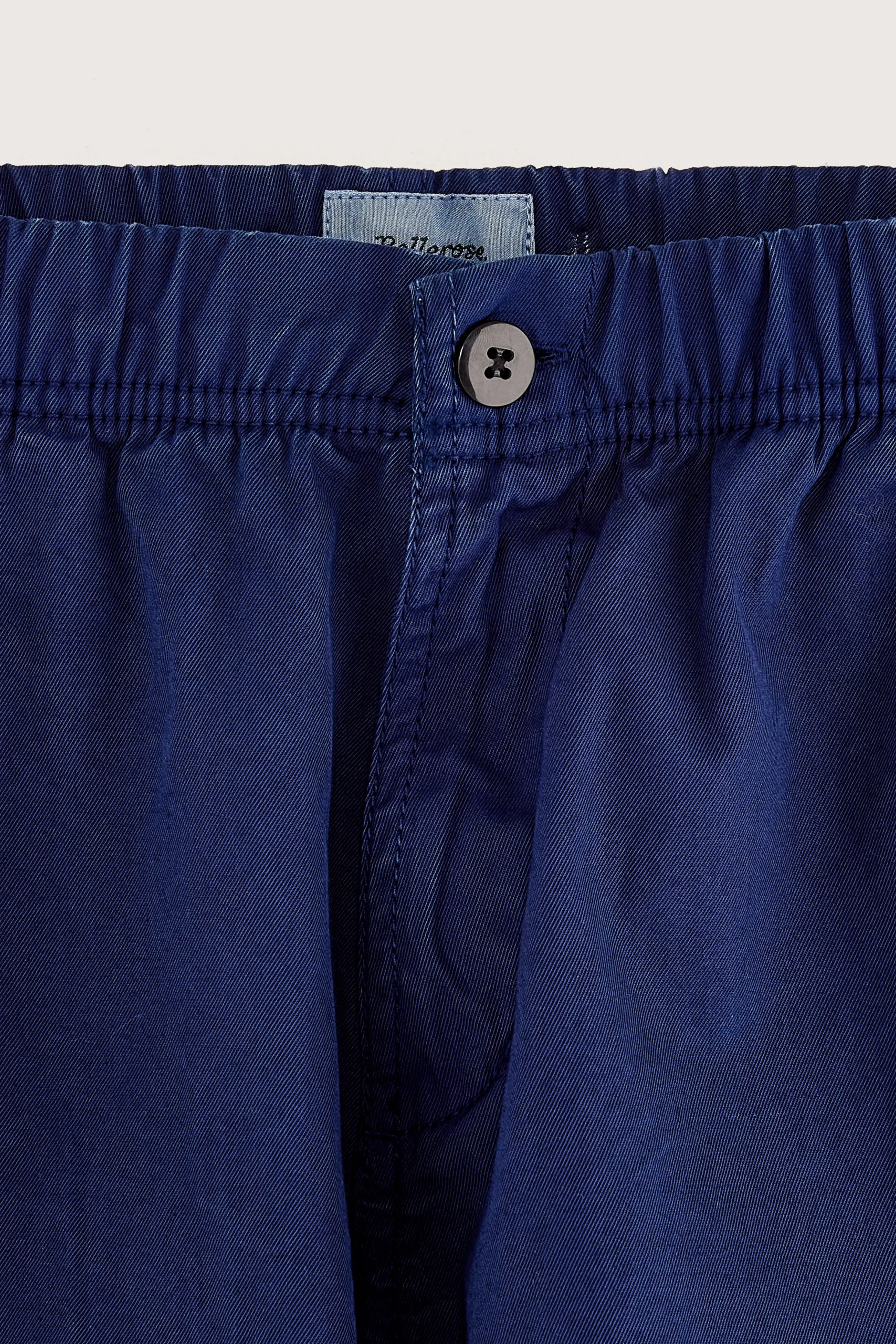 Losse pasvorm broek met elastiek in de taille, platte voorkant en tapered pijpen, gemaakt van kobaltblauw katoenen twill.Losse pasvorm Elastische taille, tapered pijpen Contrasterend trekkoordGeen stretch