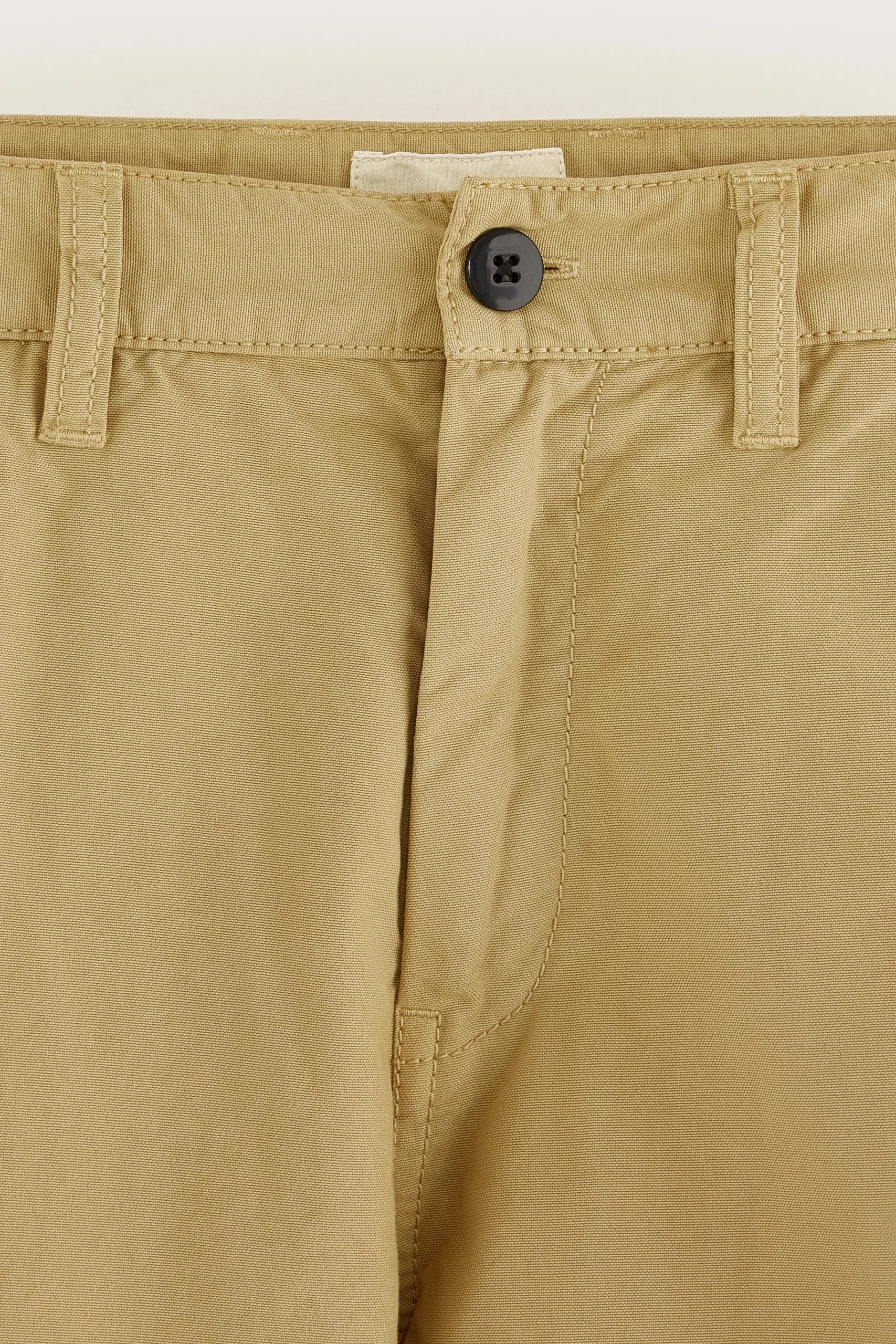 Relaxte chino broek met een mid-waist, platte voorkant en rechte pijpen, gemaakt van greige oxford katoen.Relaxte pasvorm Middenwijdte, rechte pijpen Platte voorkant Geen stretch