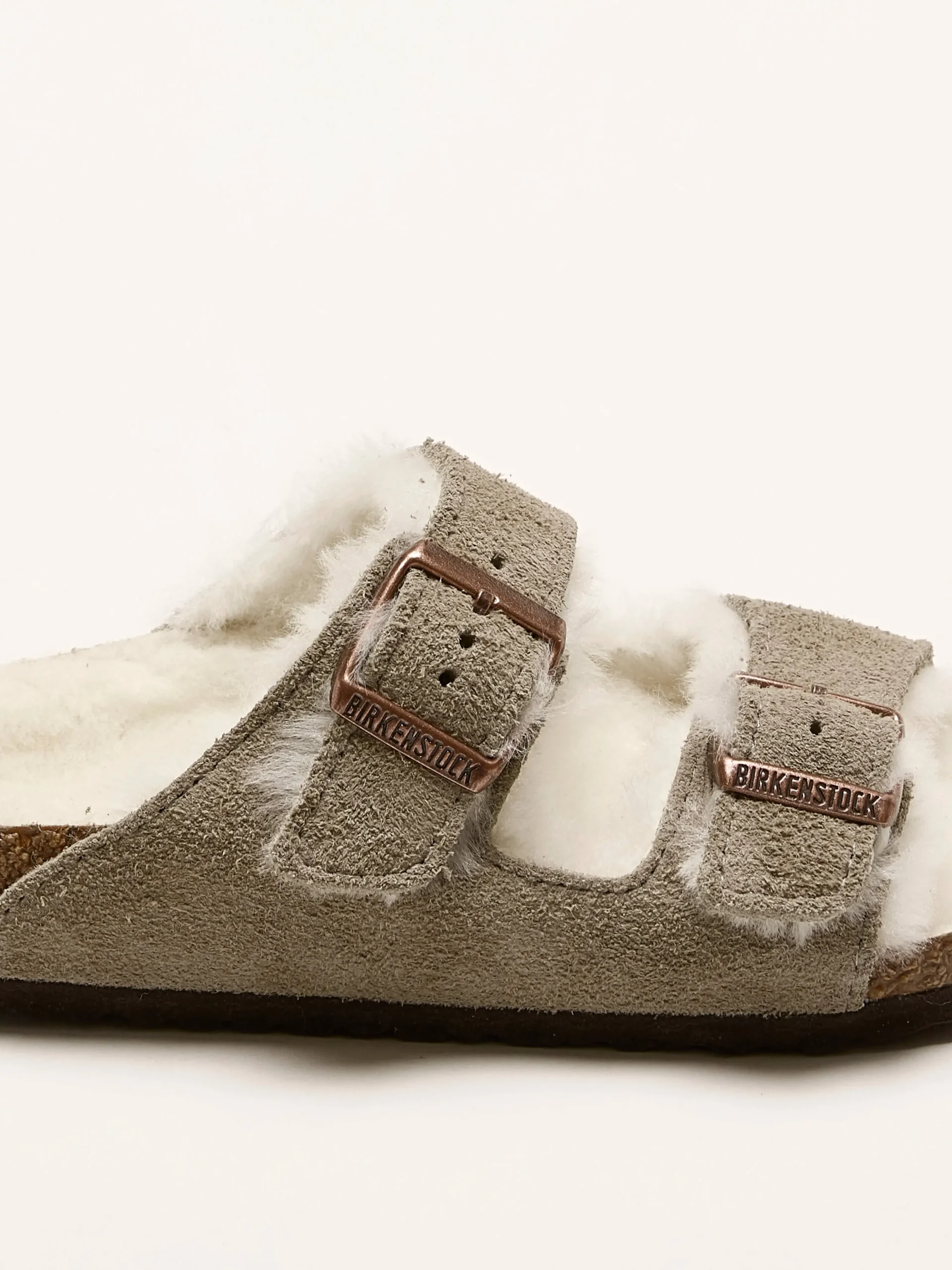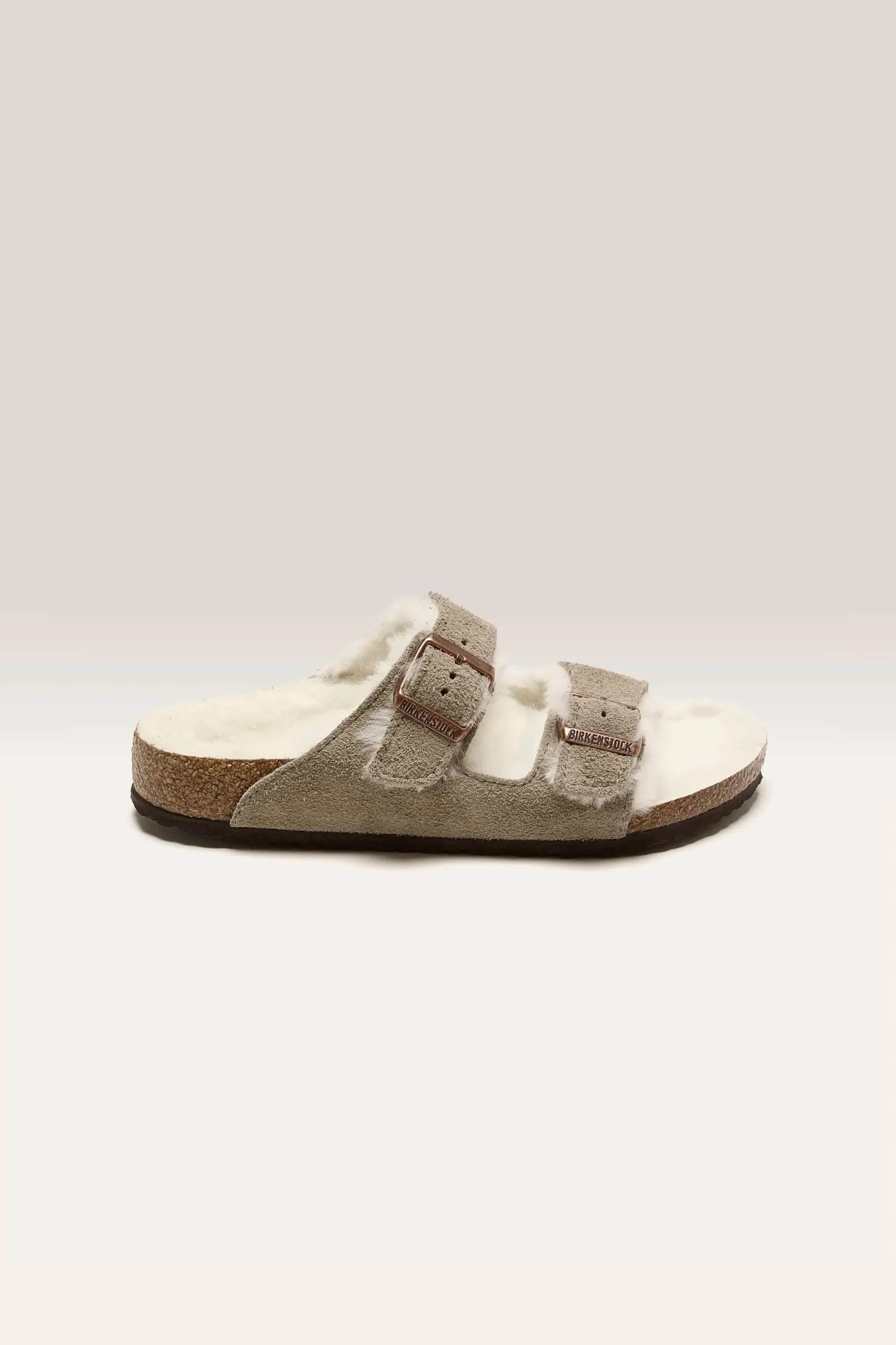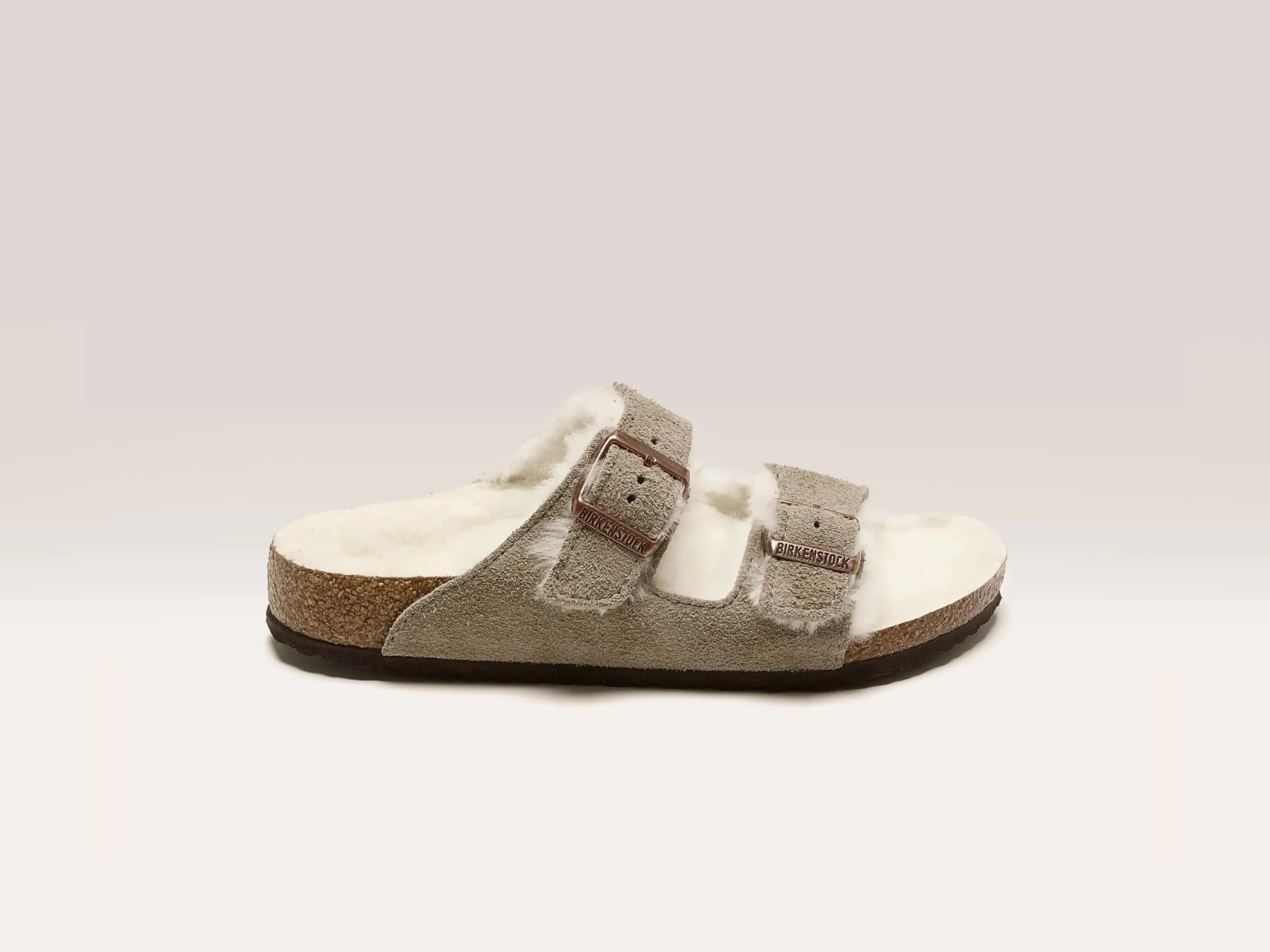 De Birkenstock Arizona Shearling sandalen hebben een suède bovenwerk en een anatomisch gevormd voetbed gevoerd met zacht lamsveld.Stijl: 1028689Kleur: Taupe