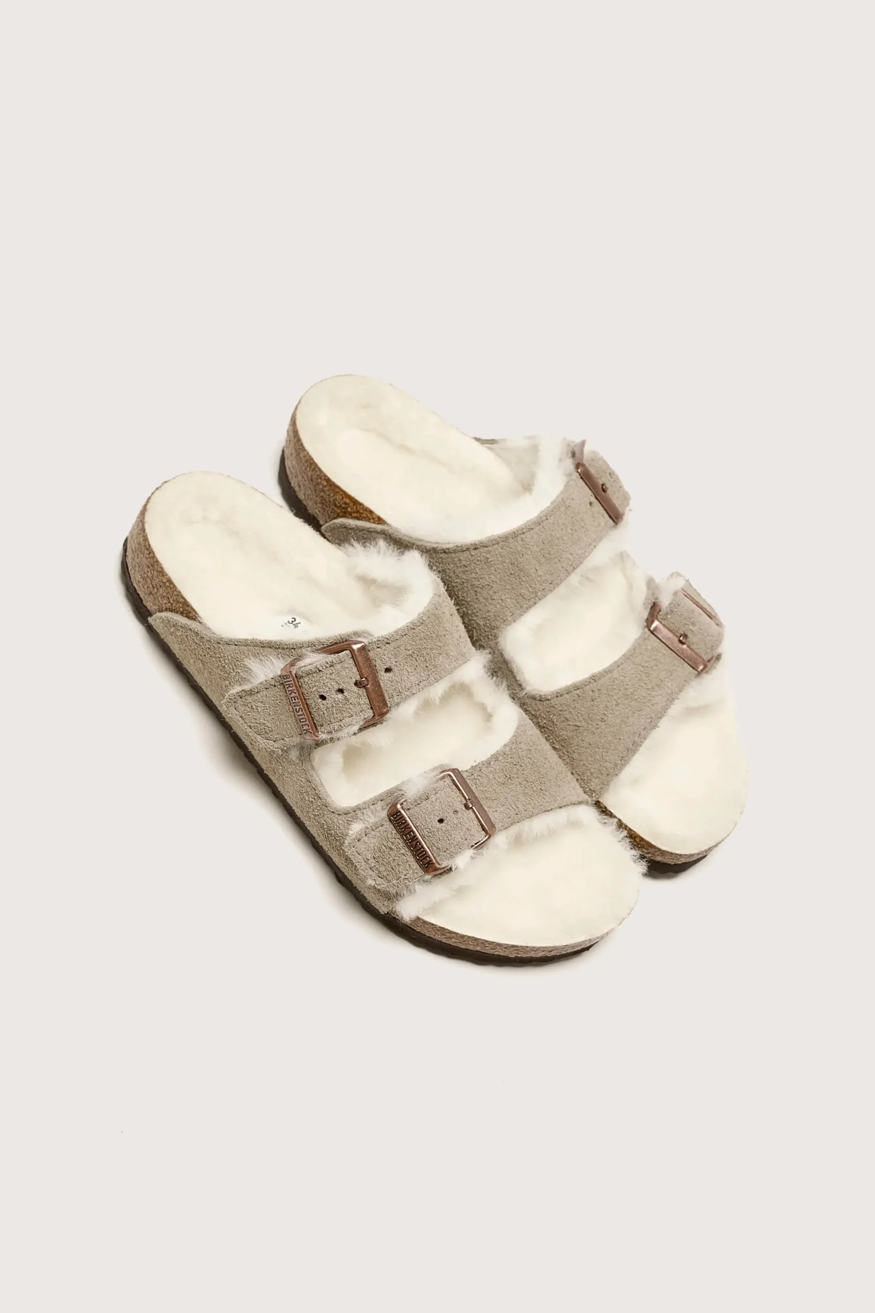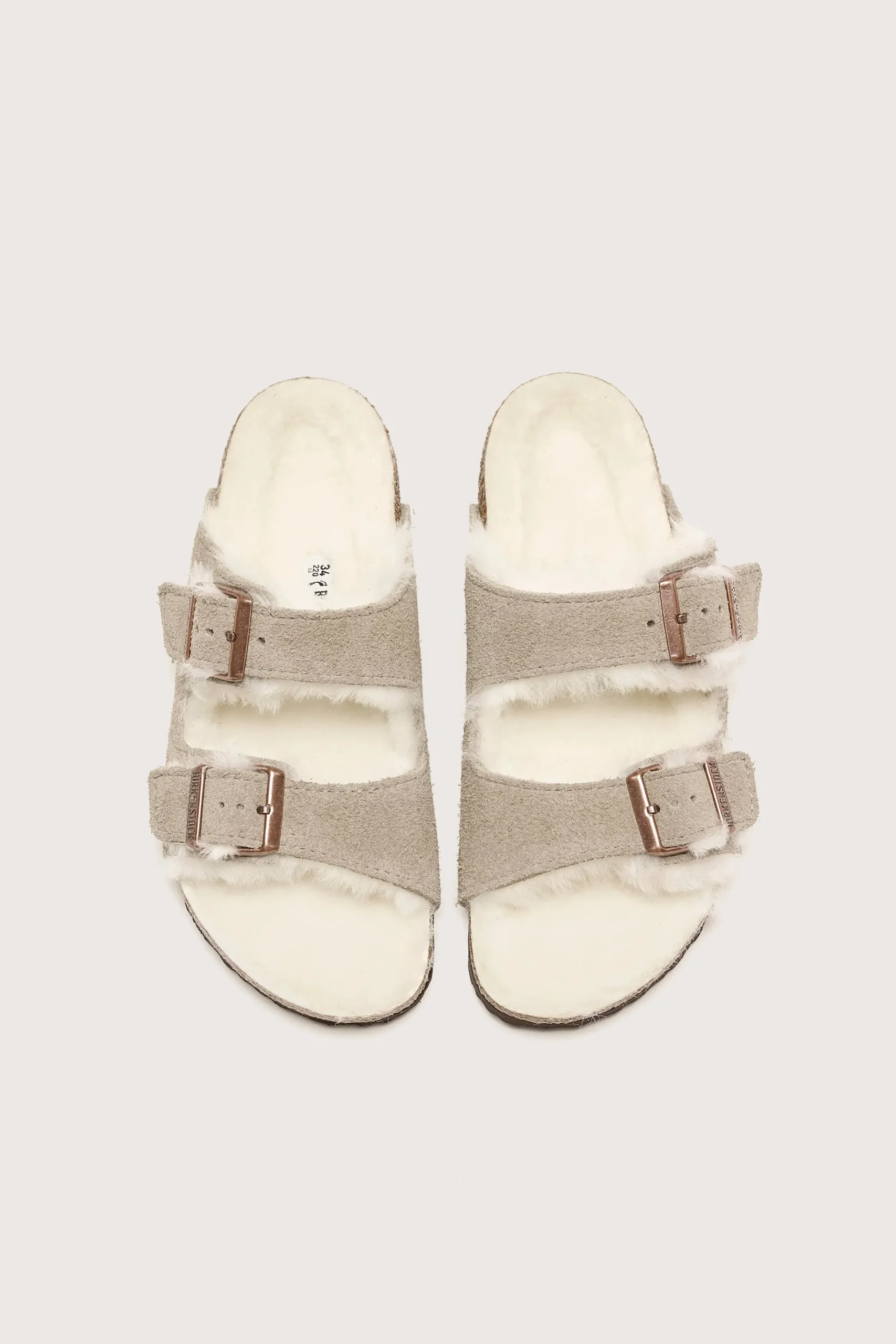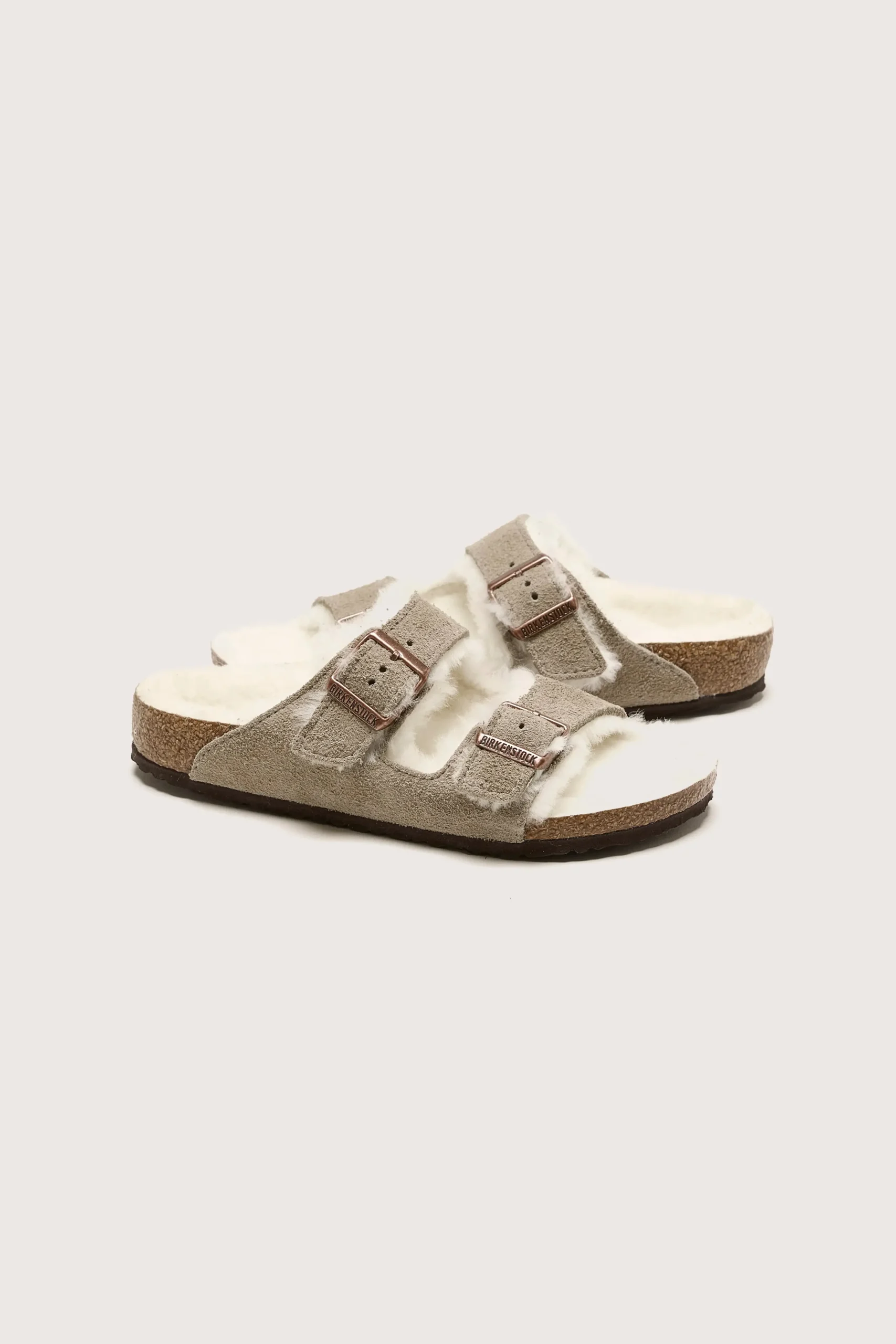 De Birkenstock Arizona Shearling sandalen hebben een suède bovenwerk en een anatomisch gevormd voetbed gevoerd met zacht lamsveld.Stijl: 1028689Kleur: Taupe