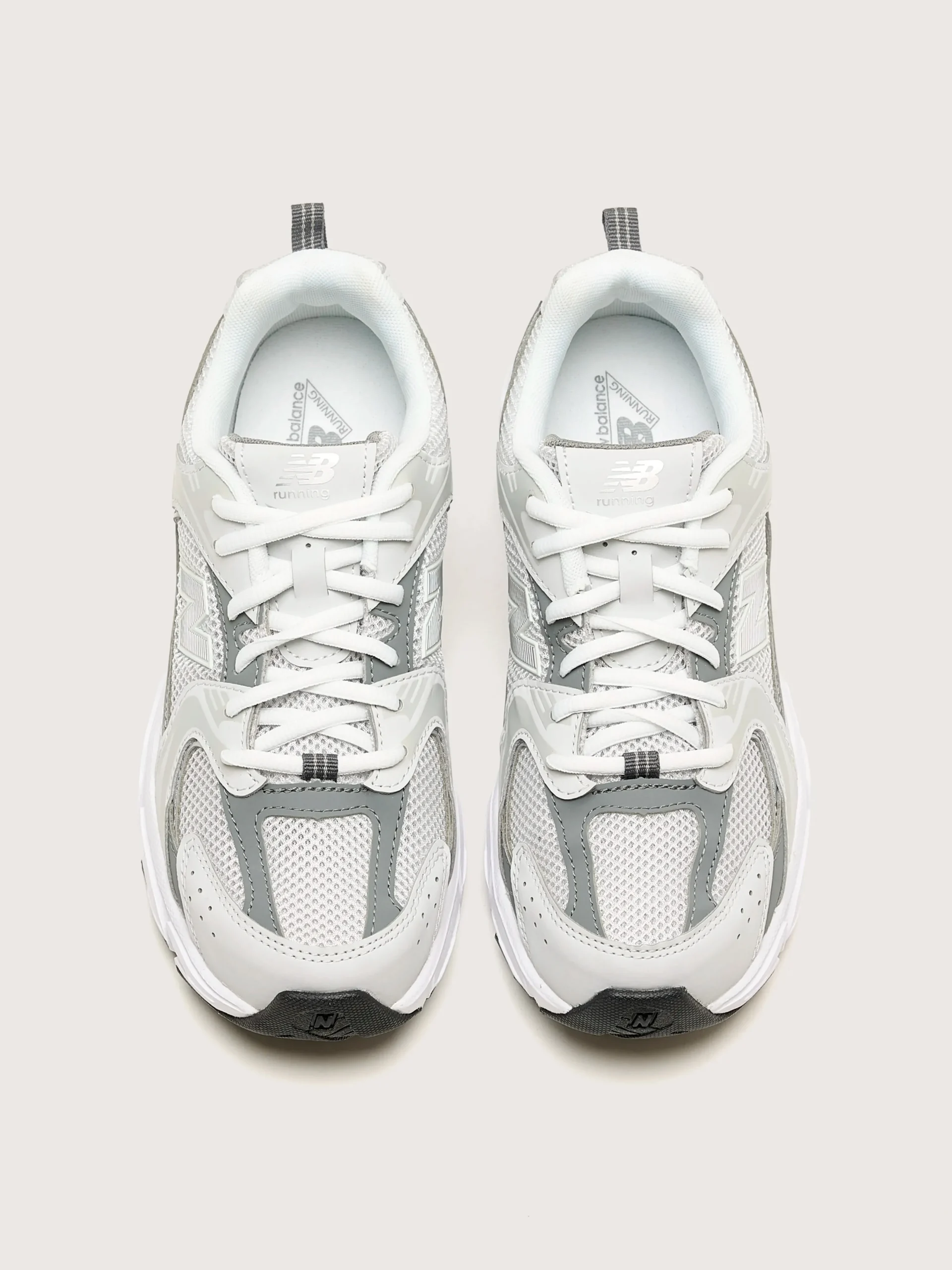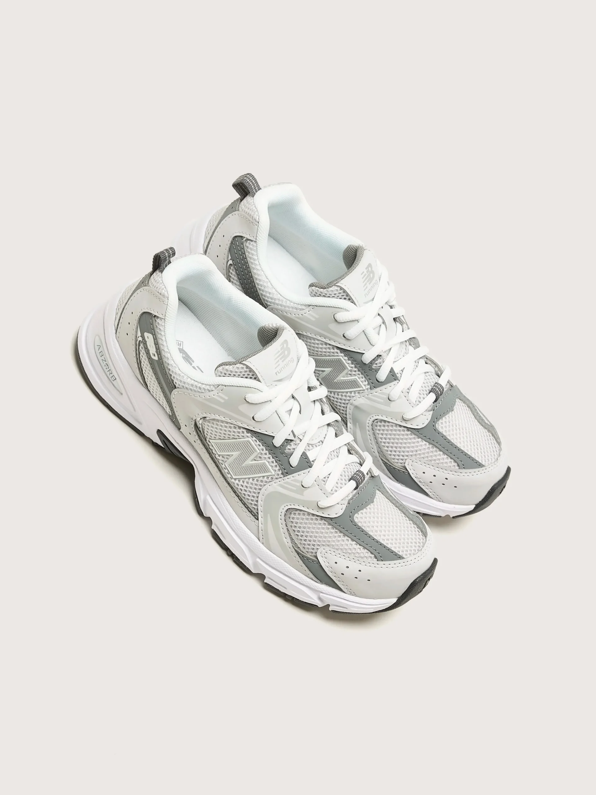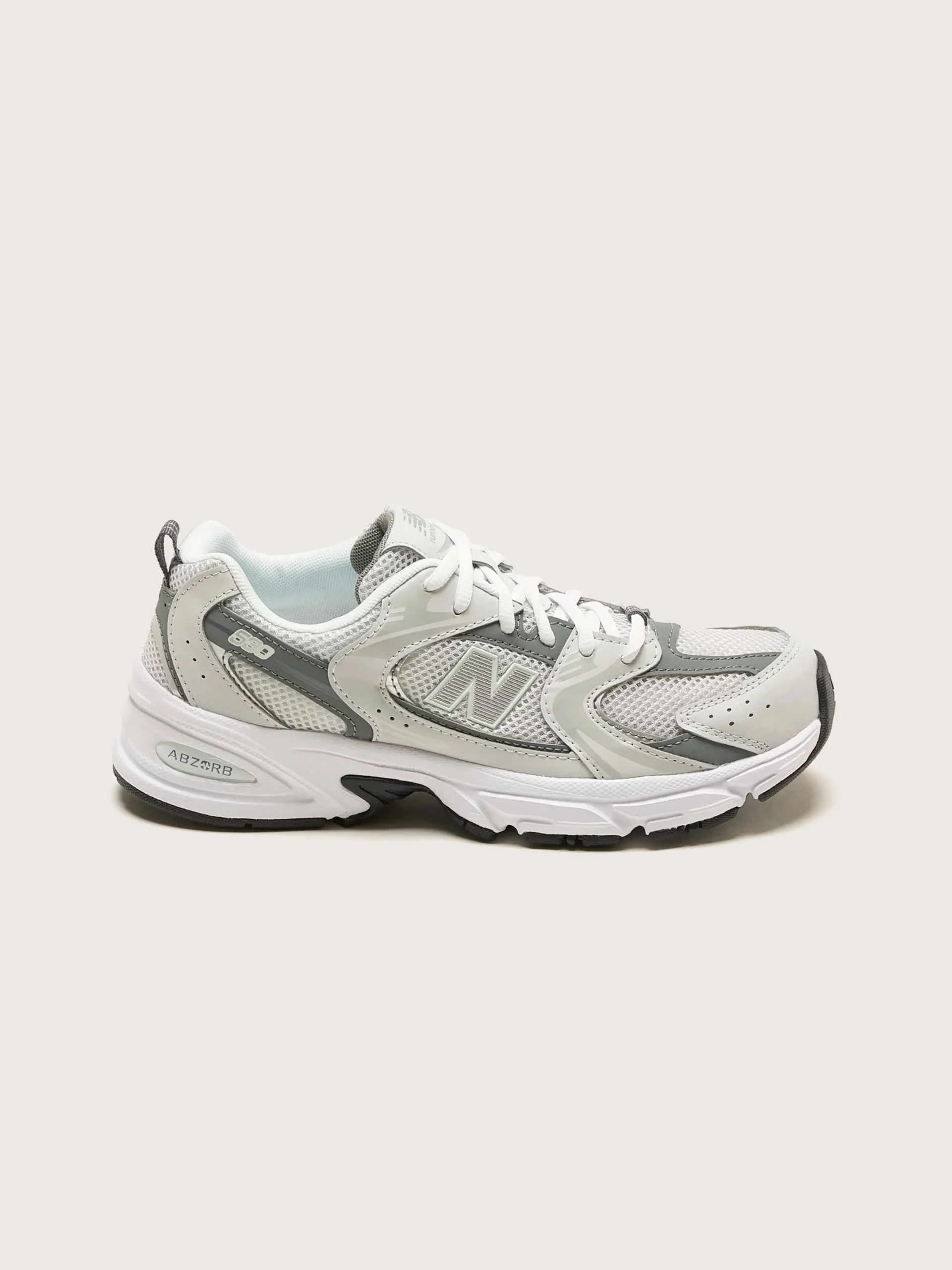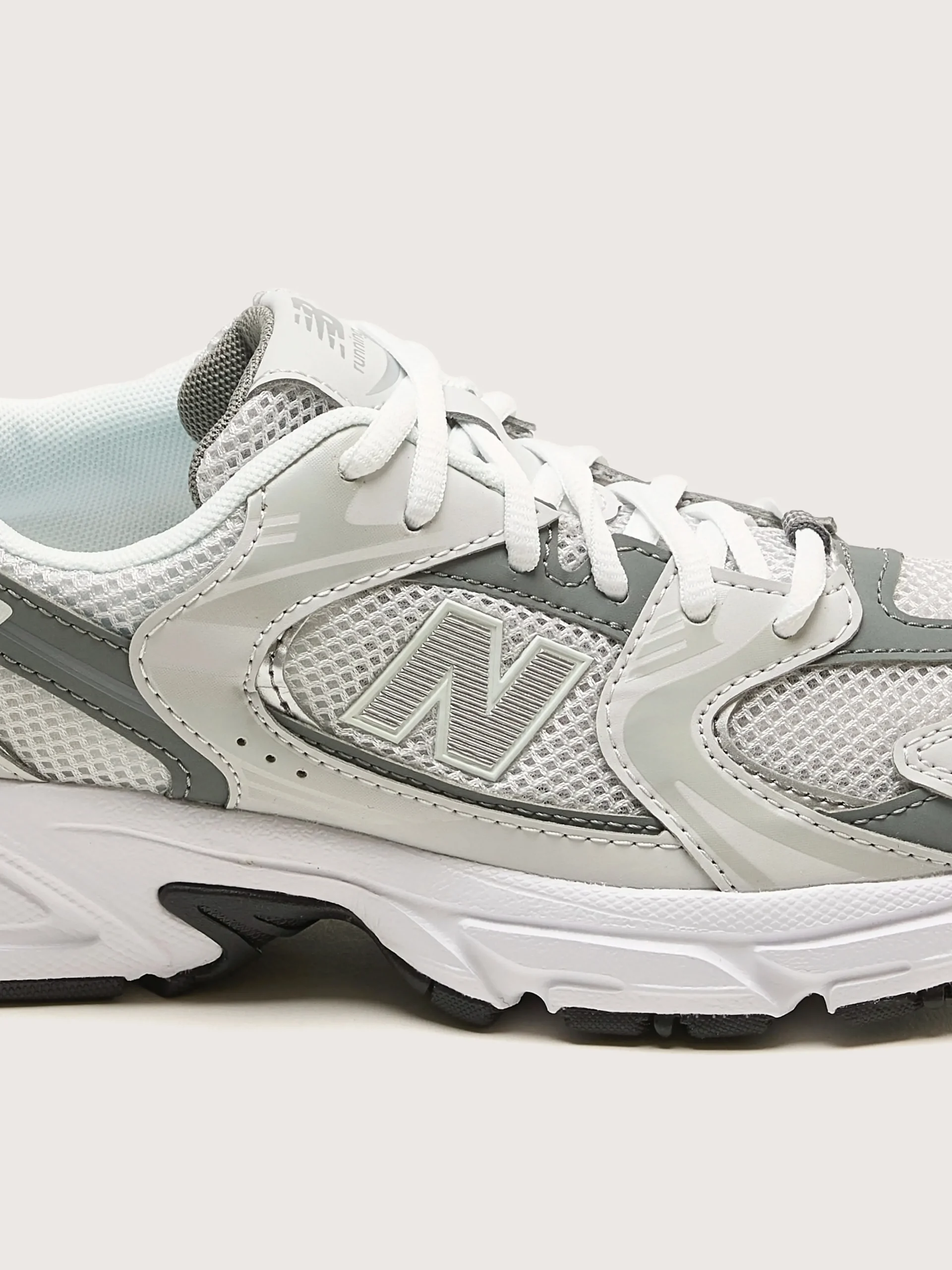 De New Balance 530 juniors sneakers zijn alledaagse sneakers met een duurzaam synthetisch bovenwerk met mesh en een dempende middenzool. Normale pasvormStijl: GR530CBKleur: Grey matter with silver metalic
