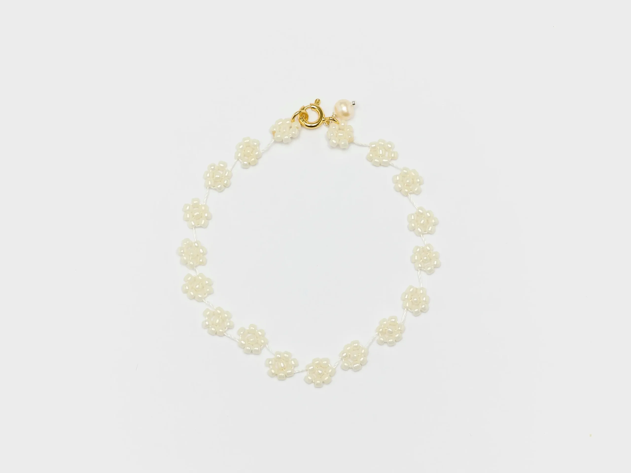 De prachtige Labro Fiori armband heeft glaskralen op een duurzaam nylondraad met een stevige sluiting.Lengte: 18 cmStijl: Fiori N° 01Kleur: Wit