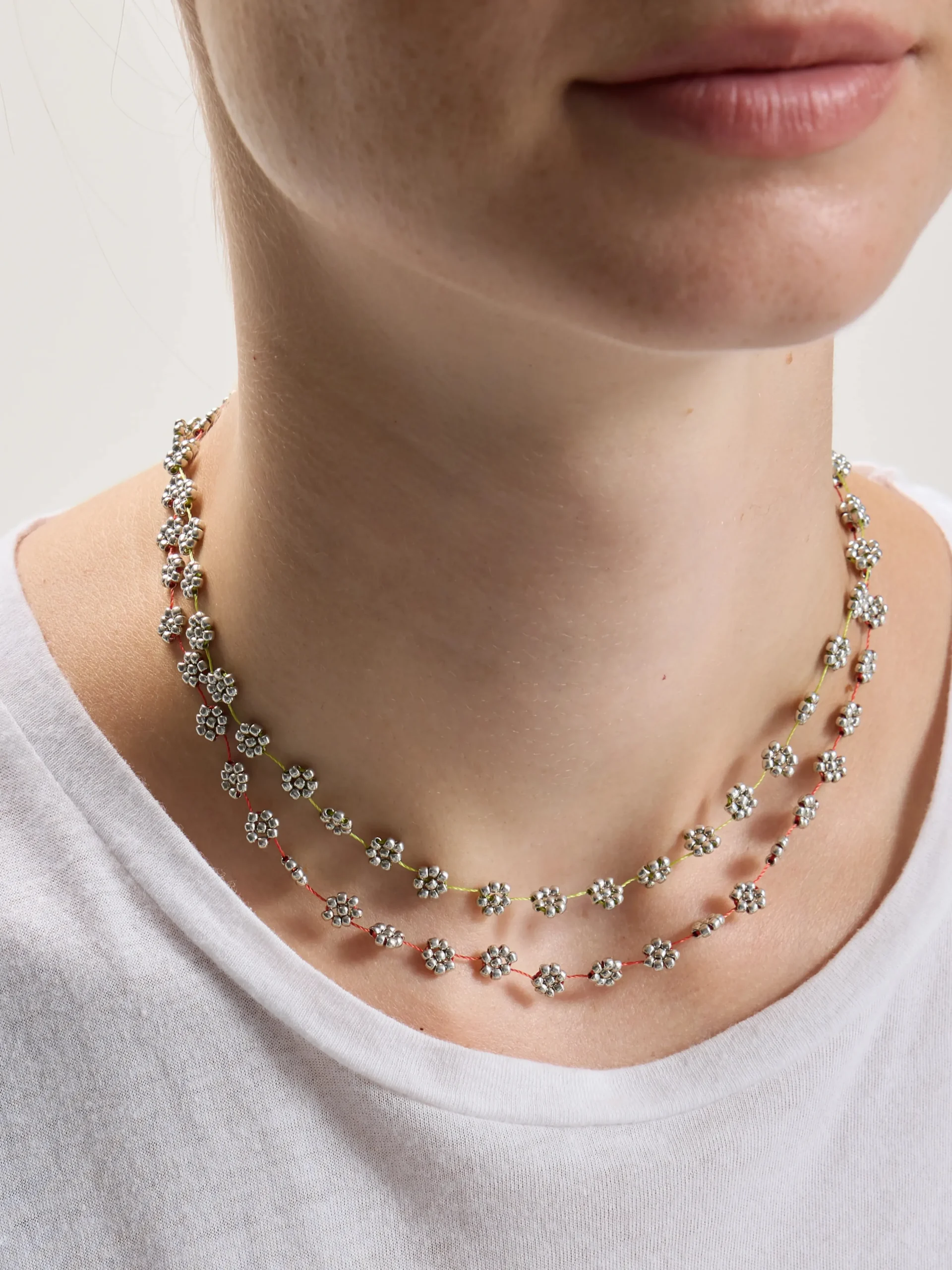 De prachtige Labro Fiori halsketting heeft glaskralen op een duurzaam nylondraad met een stevige sluiting.Lengte: 43 cmStijl: Fiori N° 26Kleur: Zilver u0026 Groen