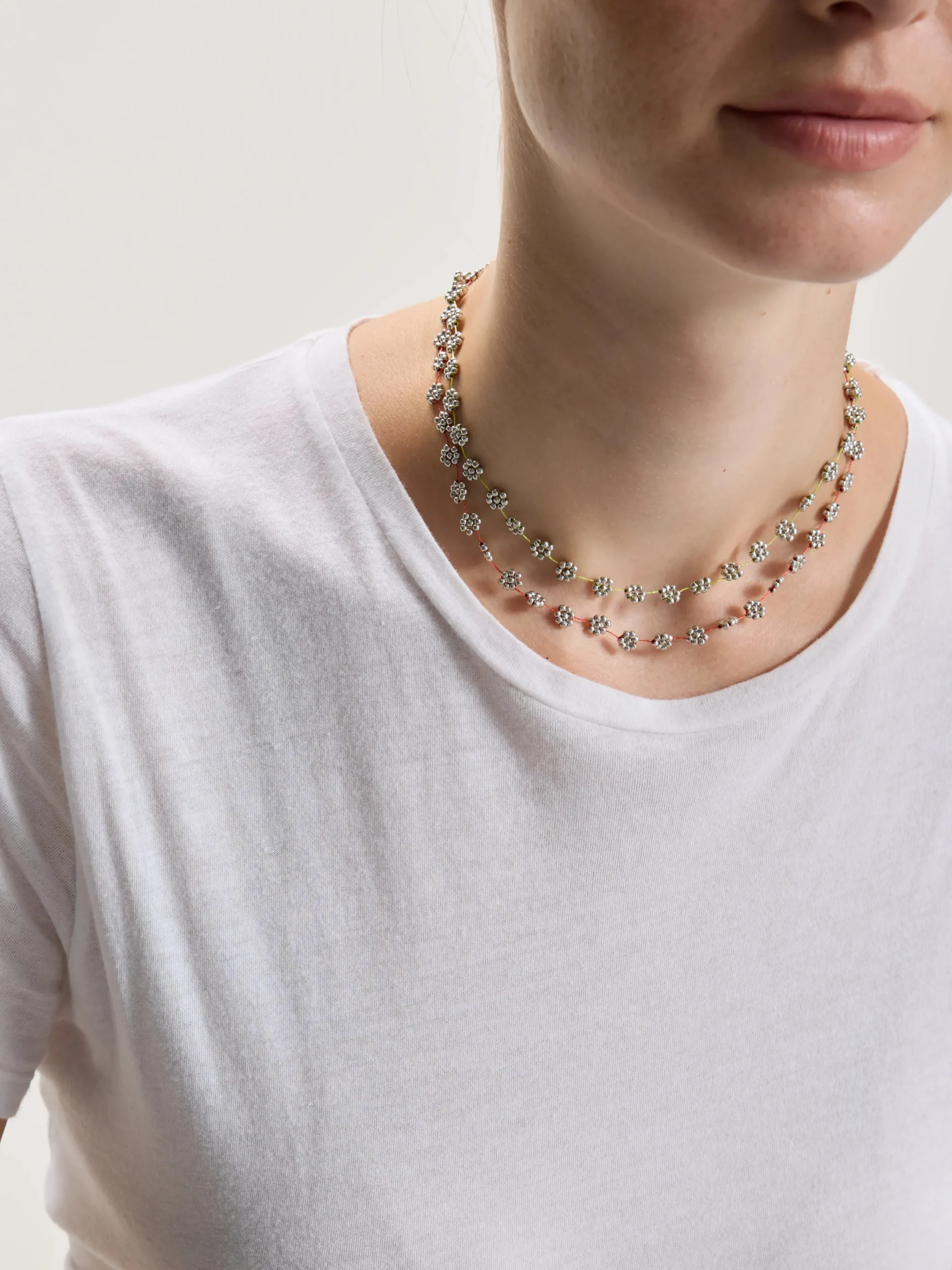 De prachtige Labro Fiori halsketting heeft glaskralen op een duurzaam nylondraad met een stevige sluiting.Lengte: 43 cmS…