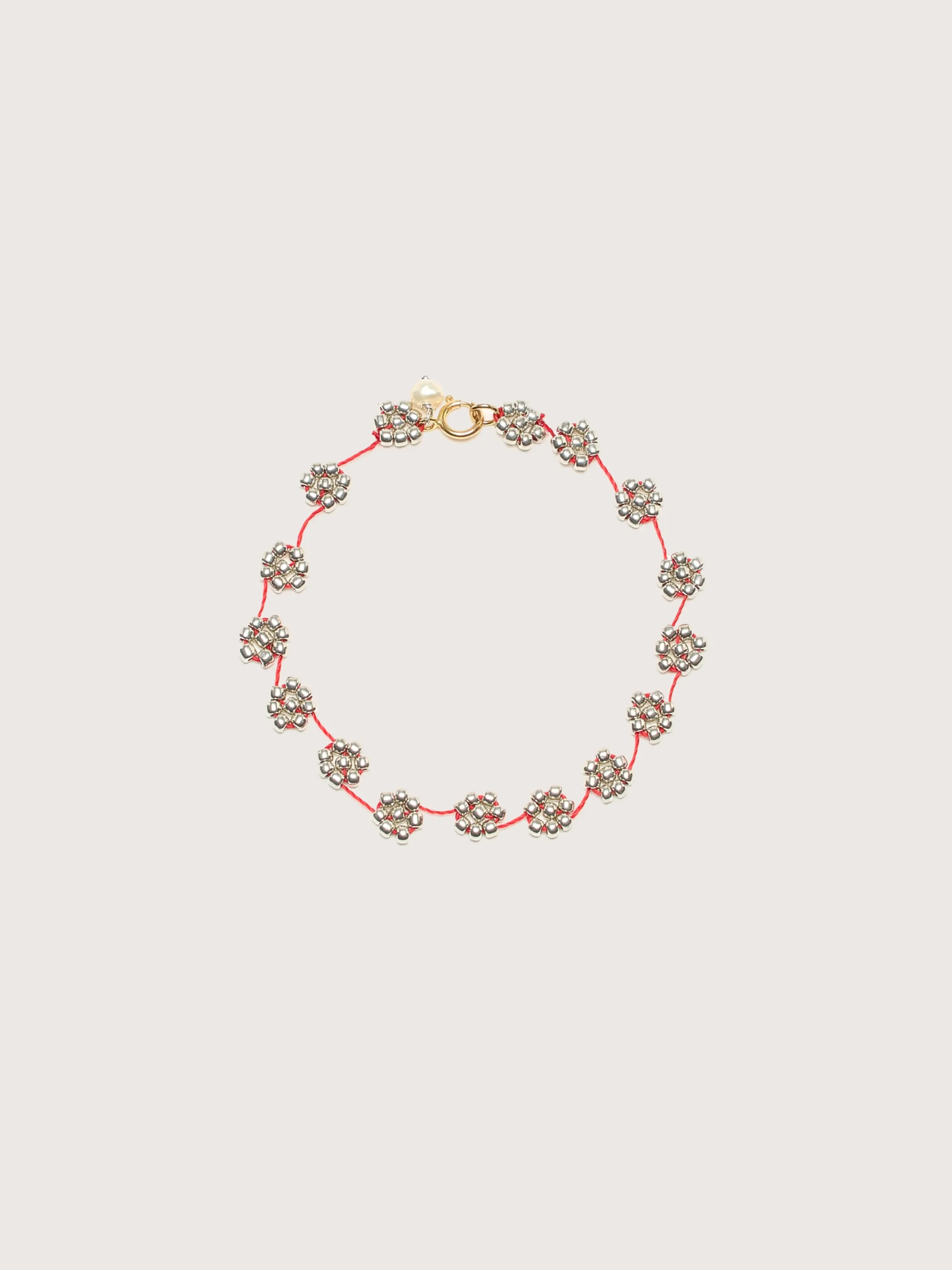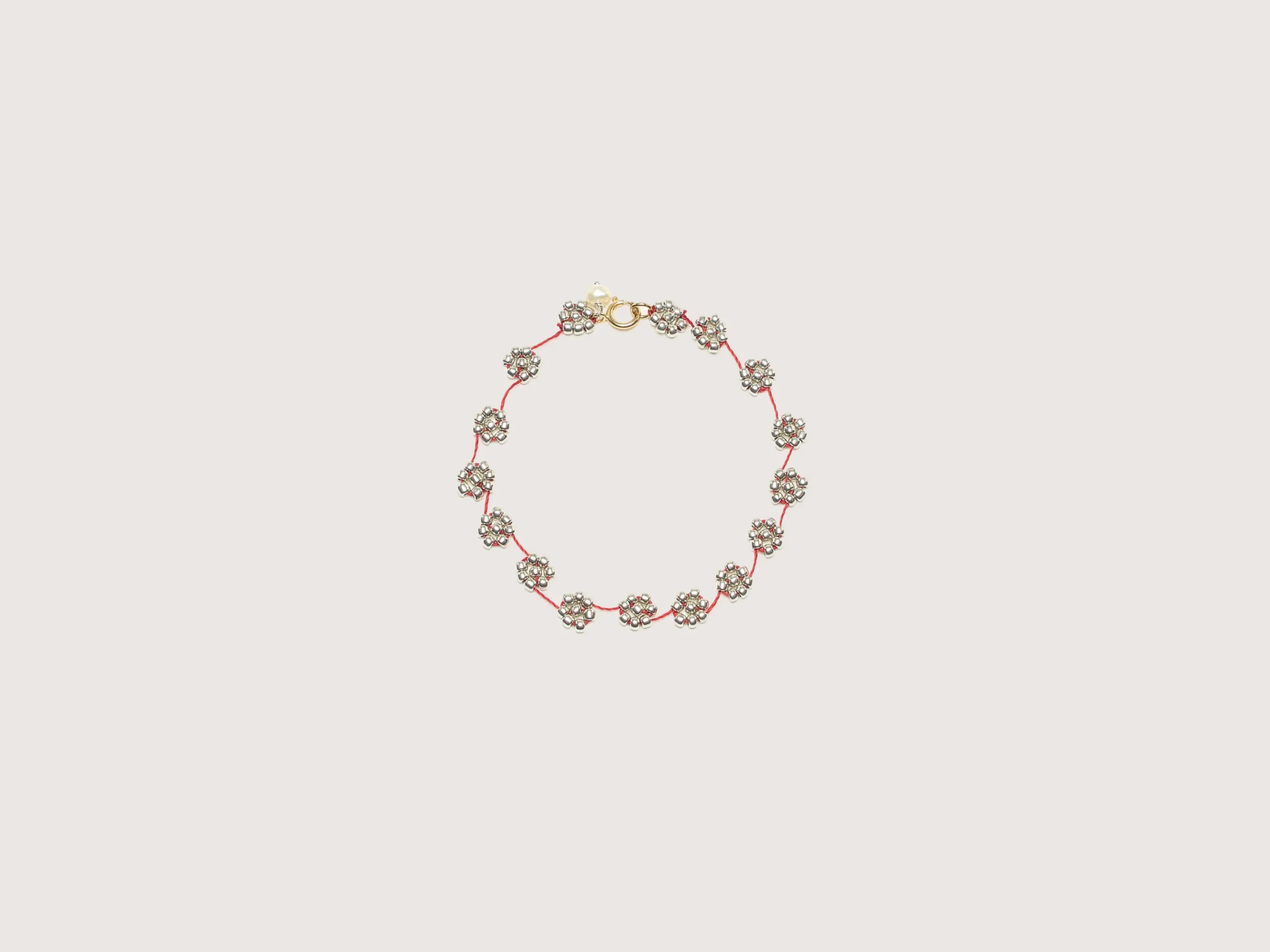 De prachtige Labro Fiori armband heeft glaskralen op een duurzaam nylondraad met een stevige sluiting.Lengte: 18 cmStijl: Fiori N° 27Kleur: zilver u0026 rood