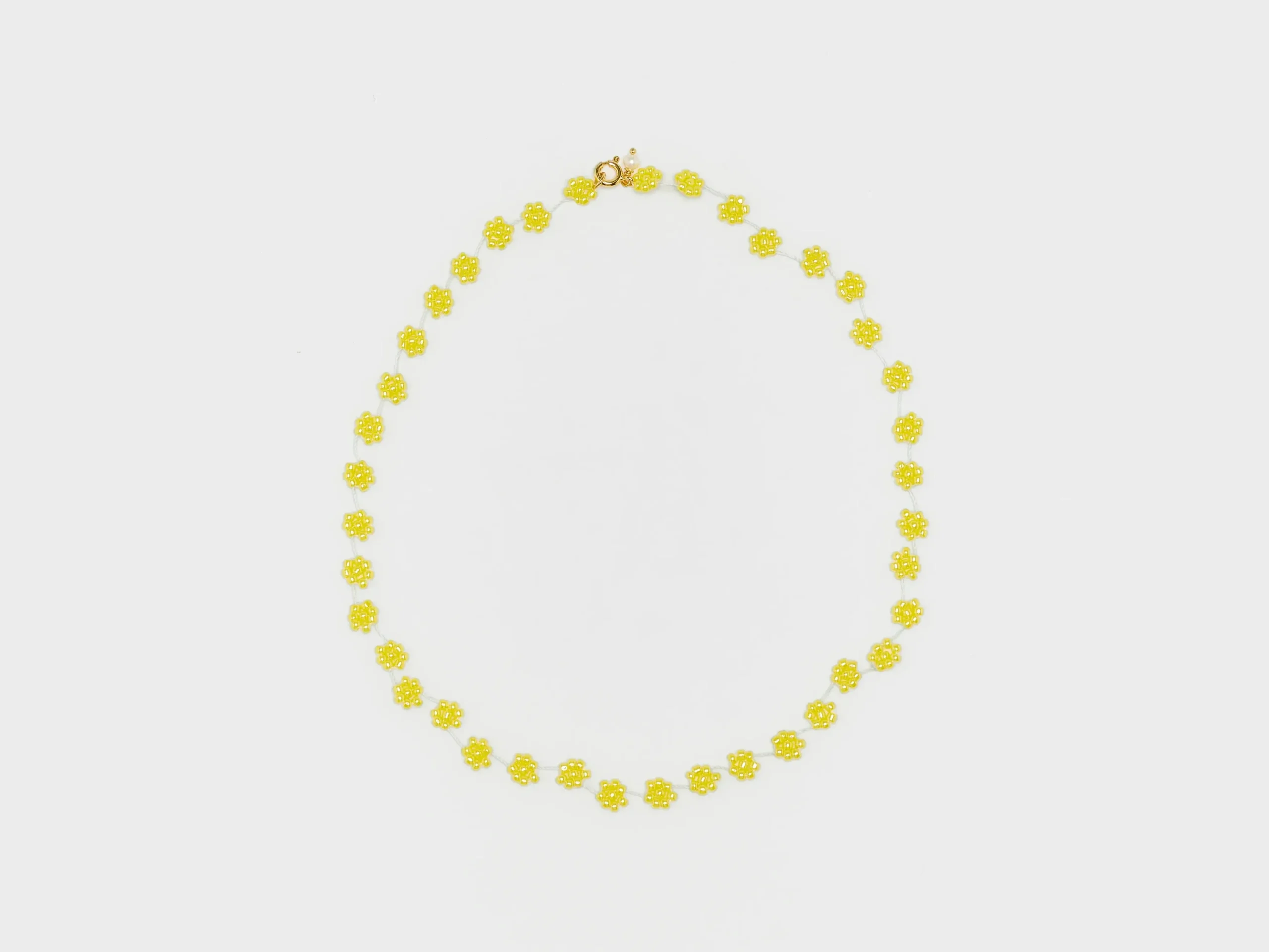 The delightful Labro Fiori necklace features glass beads on a durable nylon thread with a 14 gold-filled clasp closure.