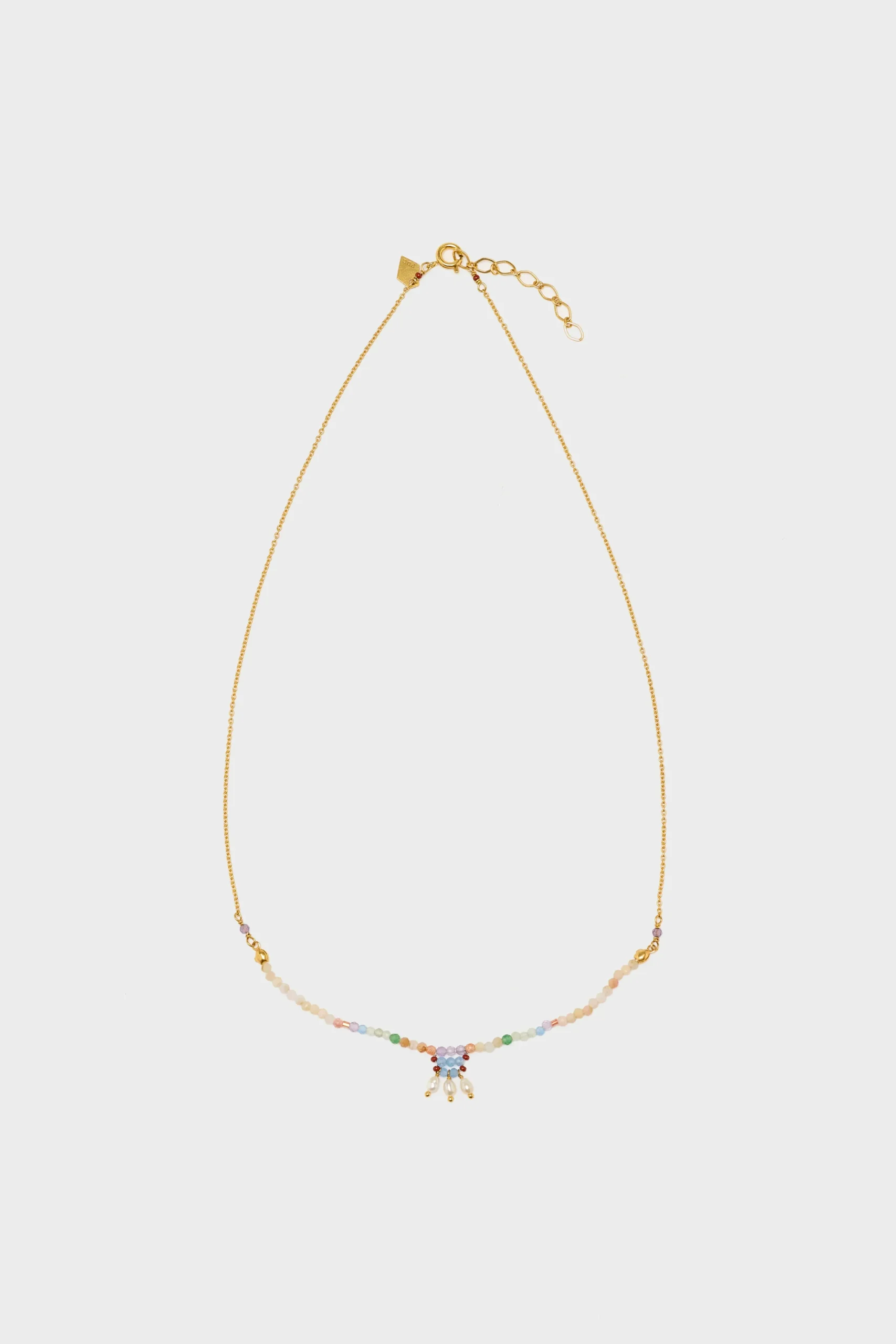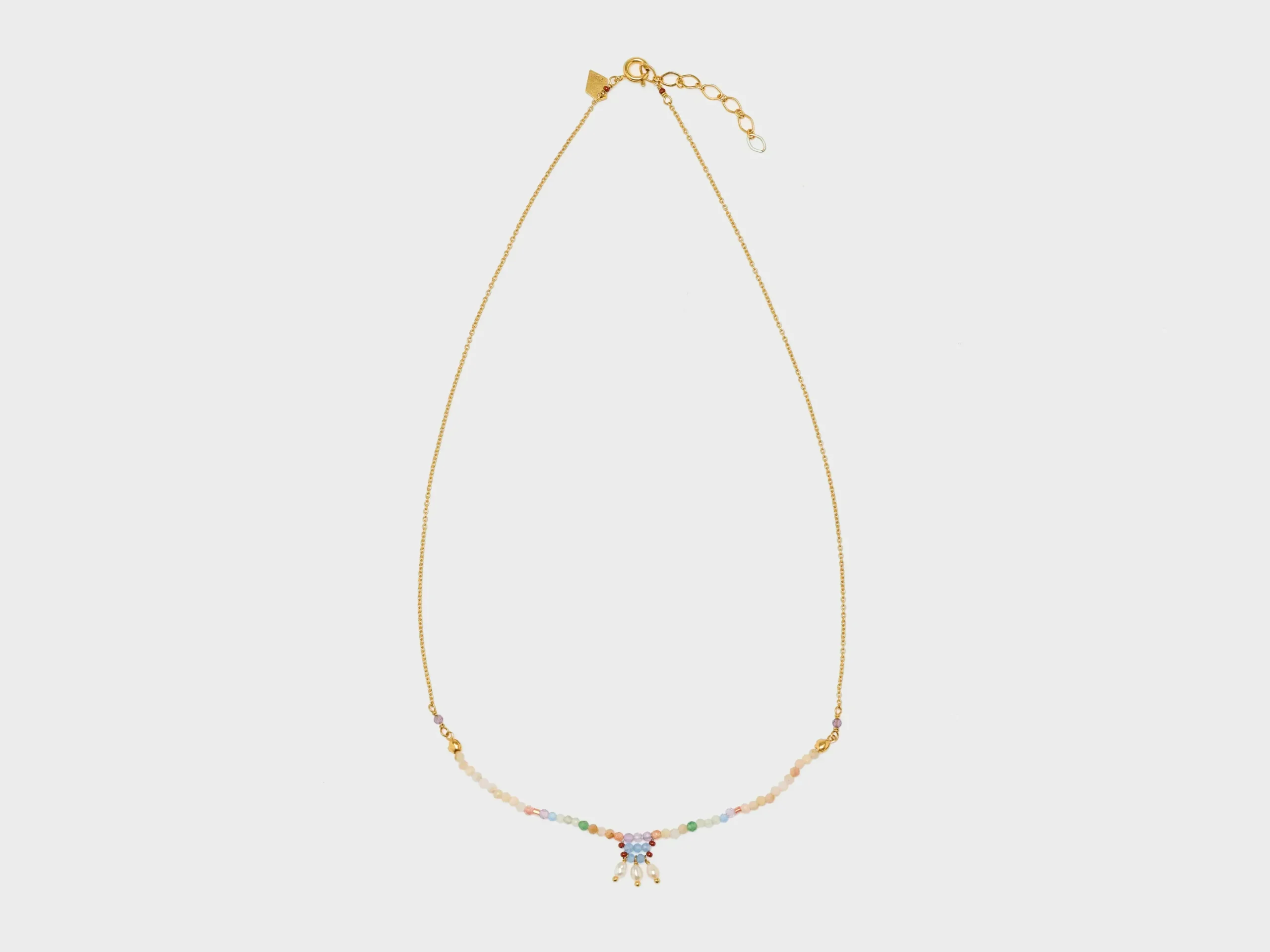 The Le Fourbi de Capucine N° 10 necklace features semi-precious gemstones beaded on a gold-plated brass chain with fres…
