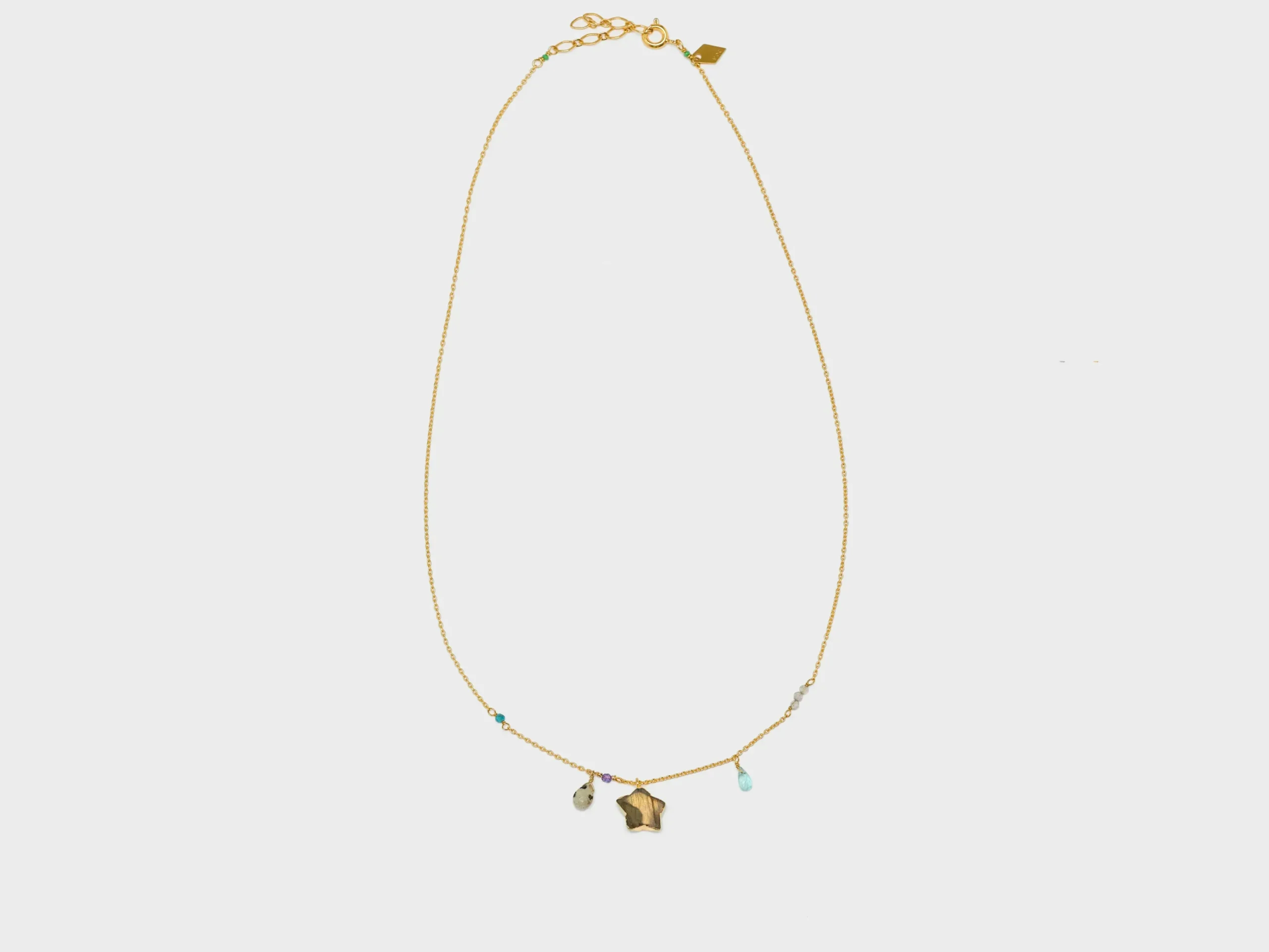 The Le Fourbi de Capucine gold-plated brass Star necklace features semi-precious gemstones with a centred star-shaped st…