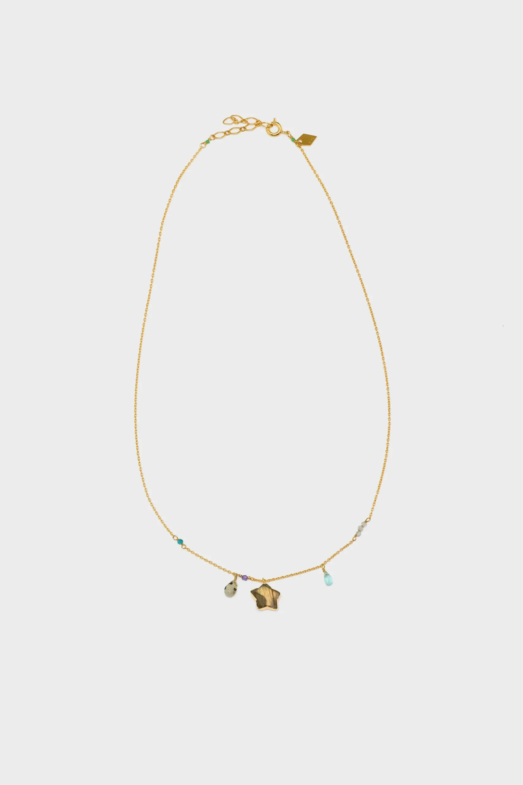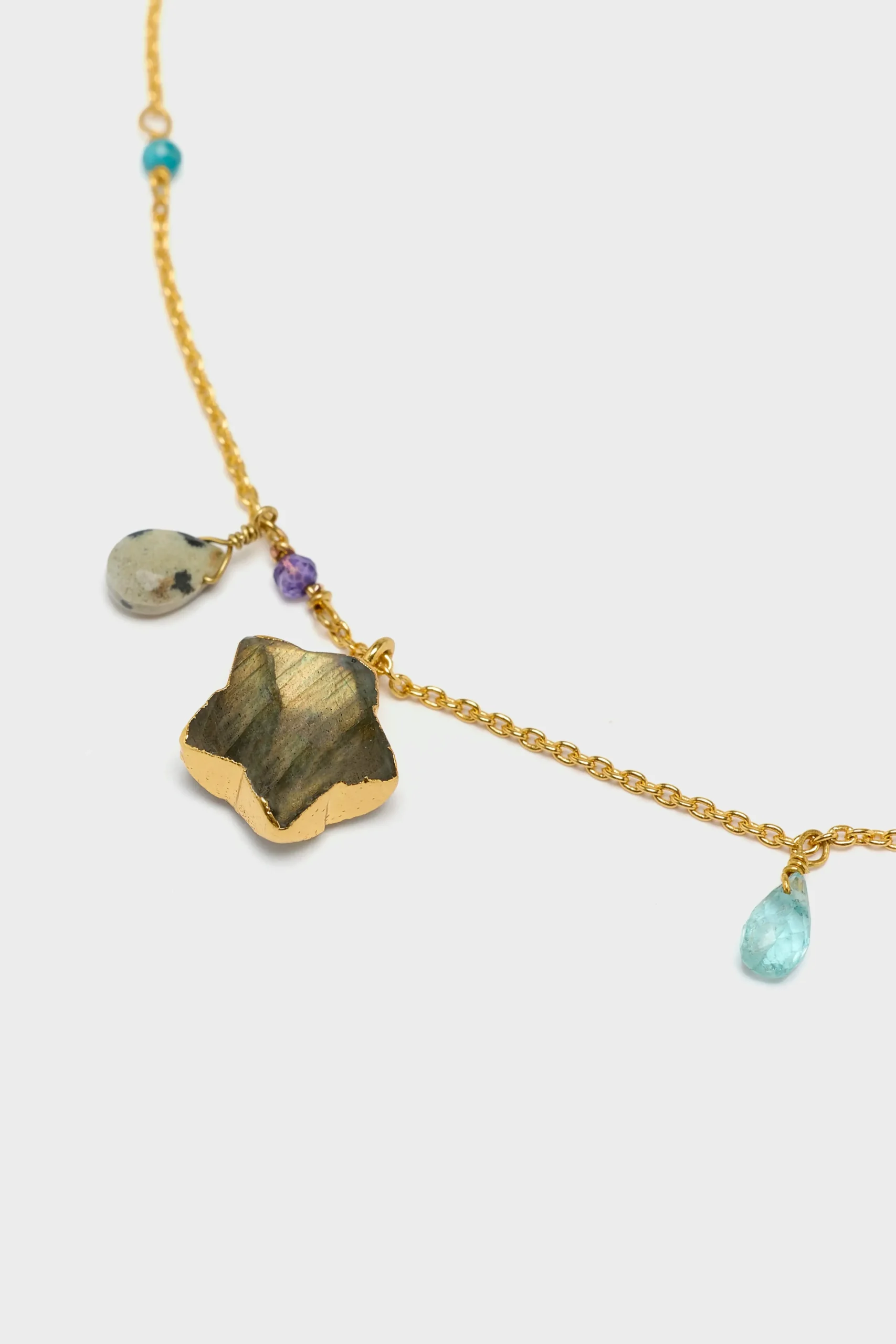 The Le Fourbi de Capucine gold-plated brass Star necklace features semi-precious gemstones with a centred star-shaped stone pendant.