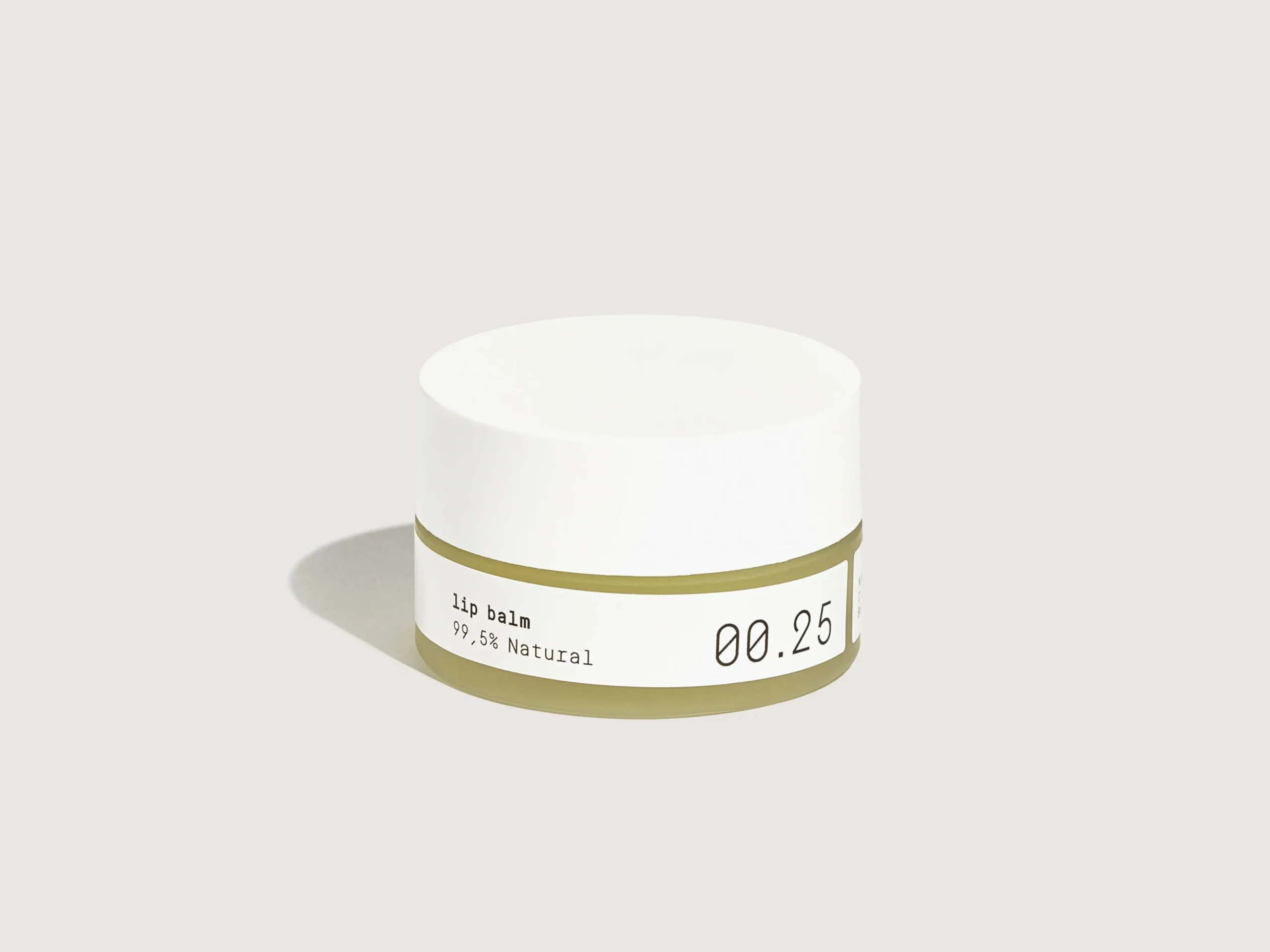 Lip Balm 00.25 is samengesteld om droge lippen te hydrateren en te verzachten en heeft een lichte en zijdezachte textuur die zorgt voor glans en een gladde finish. Met jasmijnboter, sheaboter en vitamine E weet je zeker dat je lippen de hele dag beschermd en verzorgd zijn.VOORDELENVerzacht en voedt droge lippenSluit vocht in Beschermt Geschikt voor alle huidtypesOngeparfumeerd100% natuurlijkVeganistisch u0026 dierproefvrij GeslachtsneutraalLokaal geproduceerd 15 ml