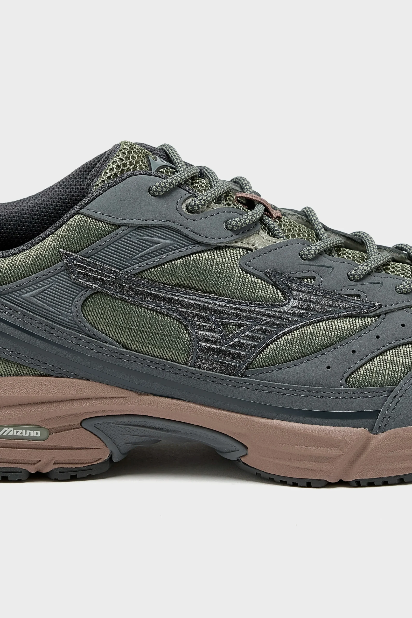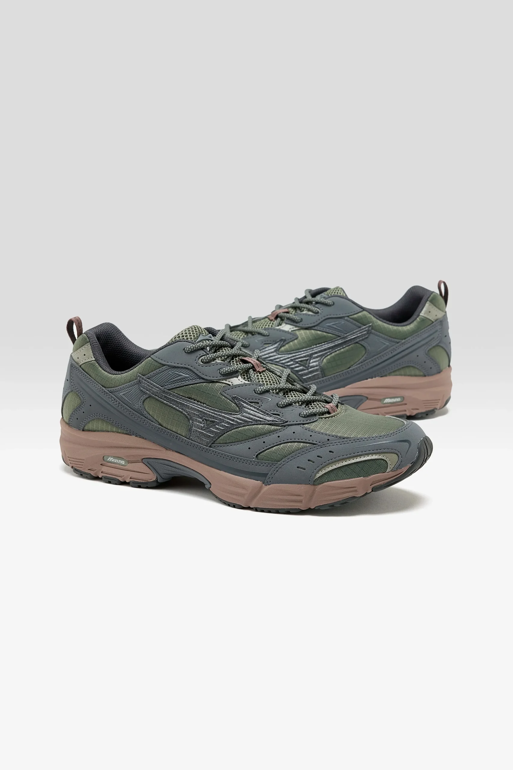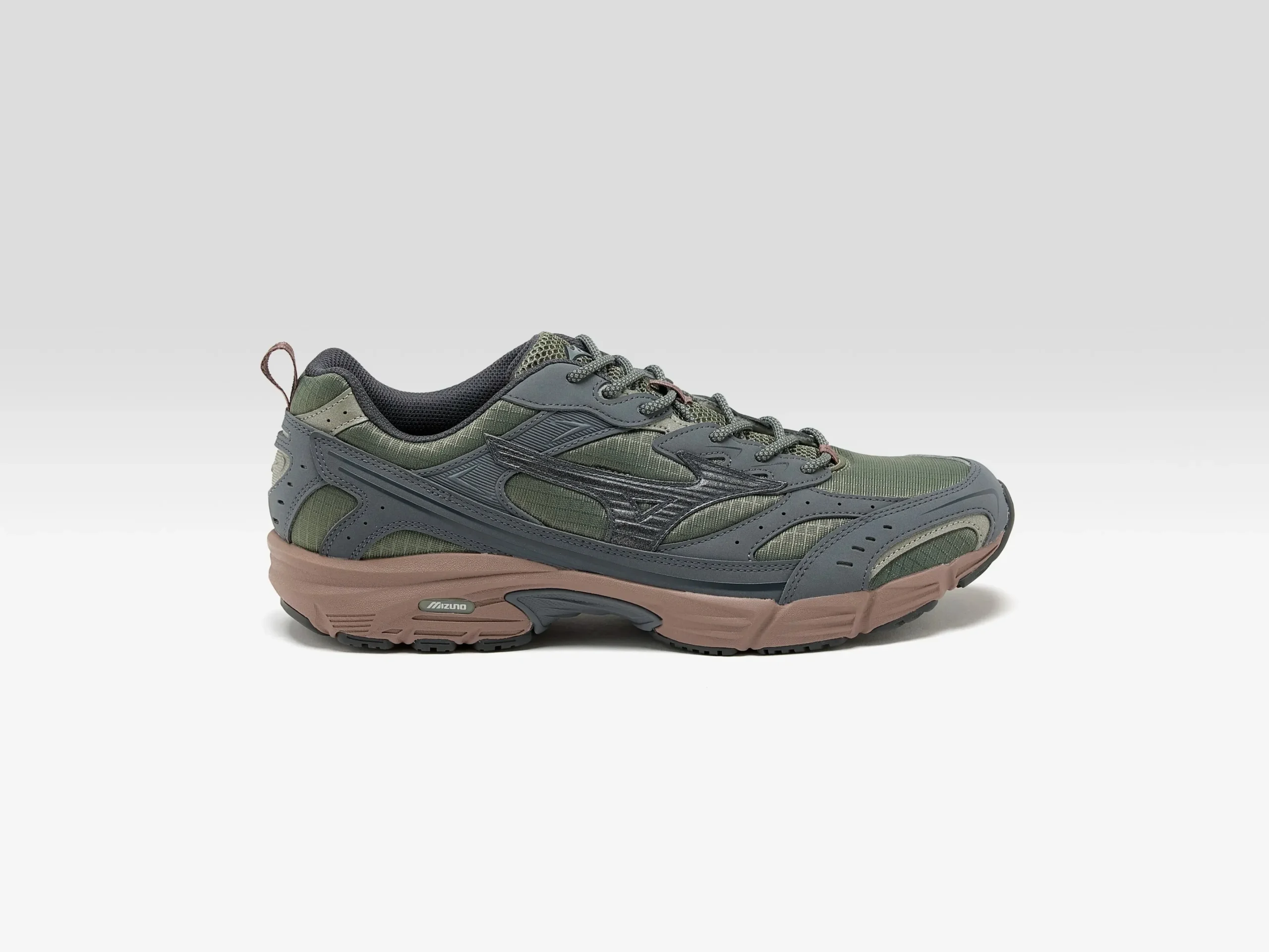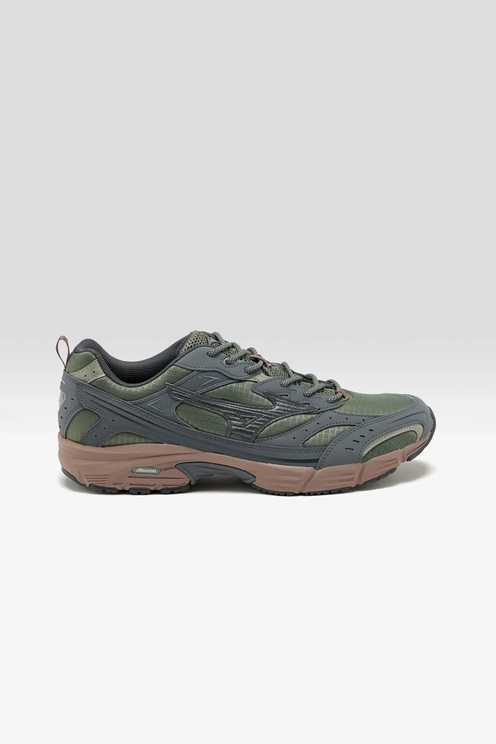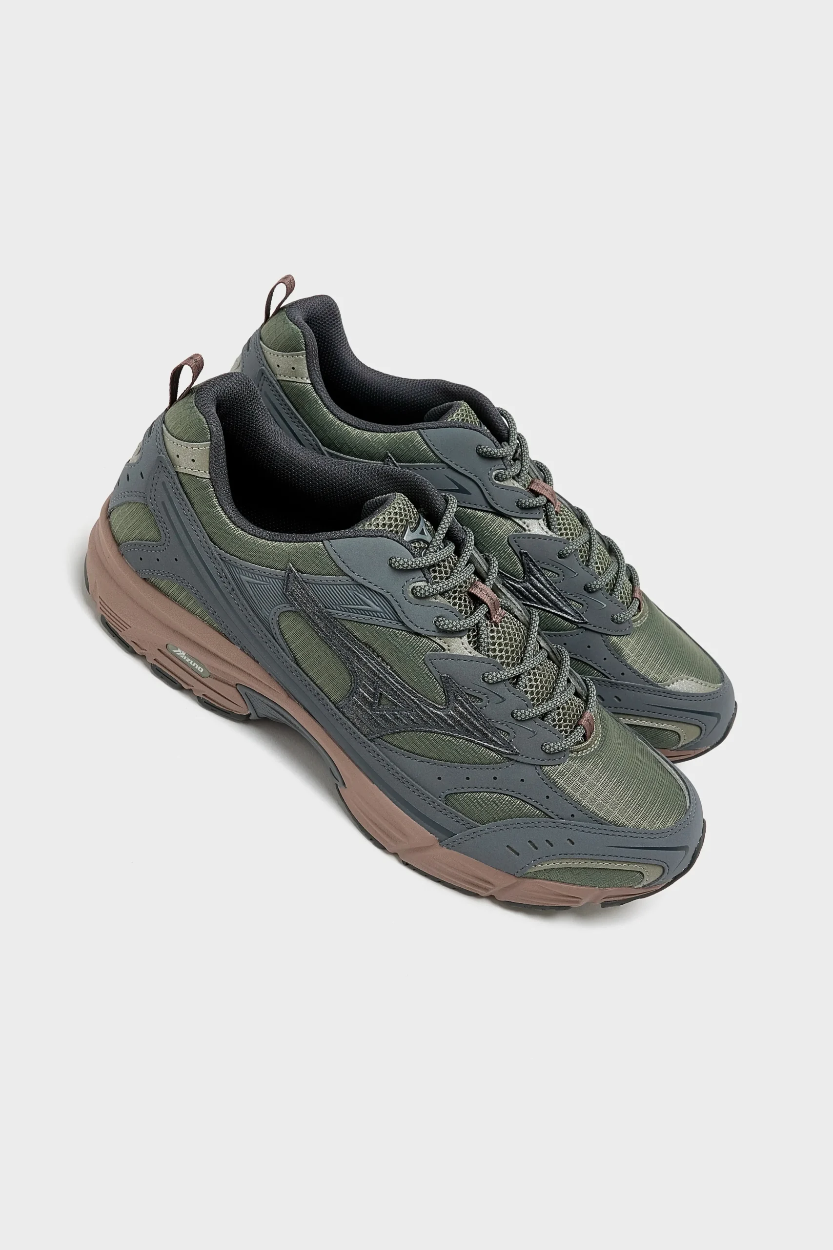 The Mizuno MXR Tech sportstyle sneakers feature a closed mesh ripstop upper with synthetic leather overlays, reflective details, and an EVA midsole.