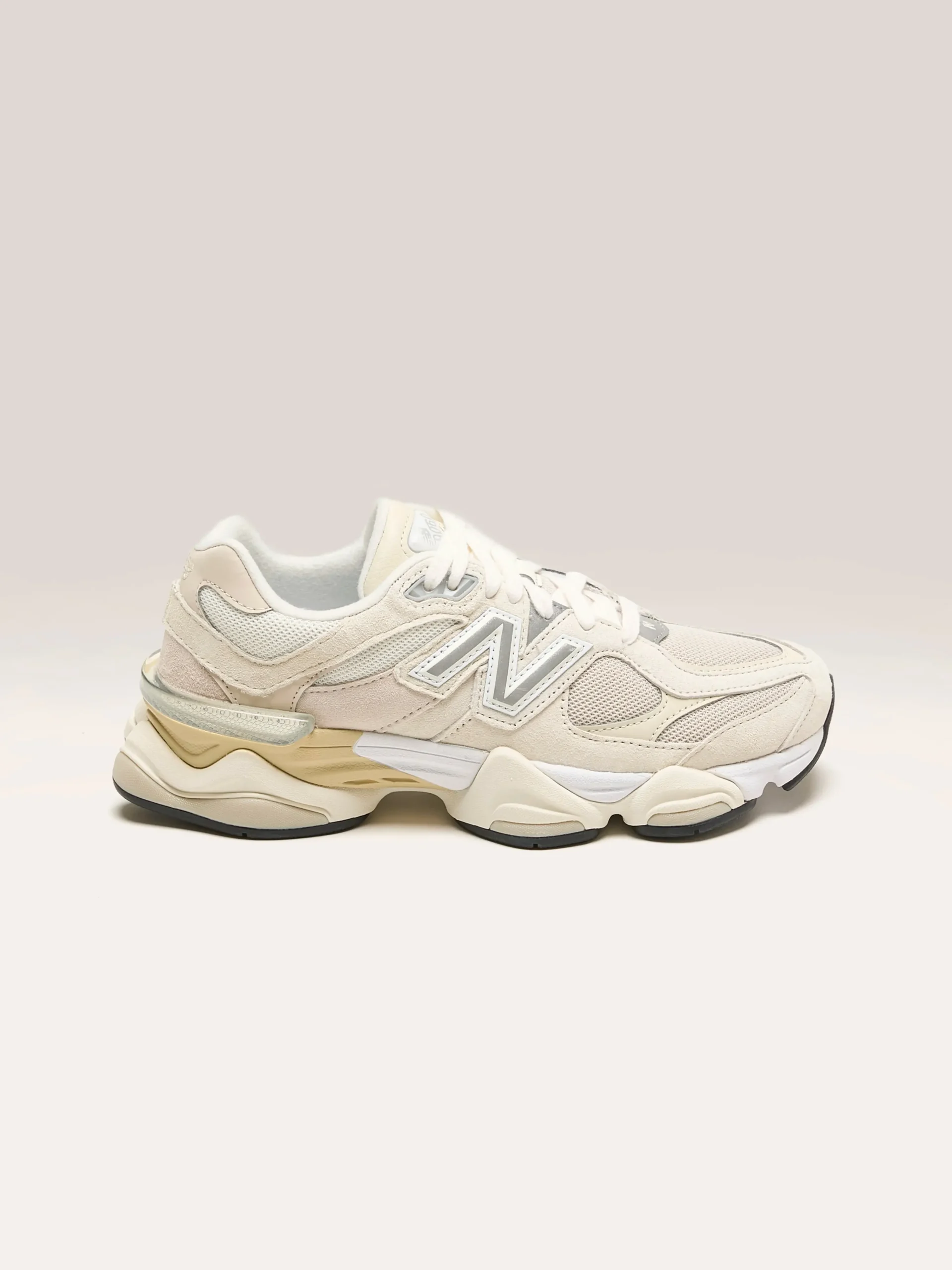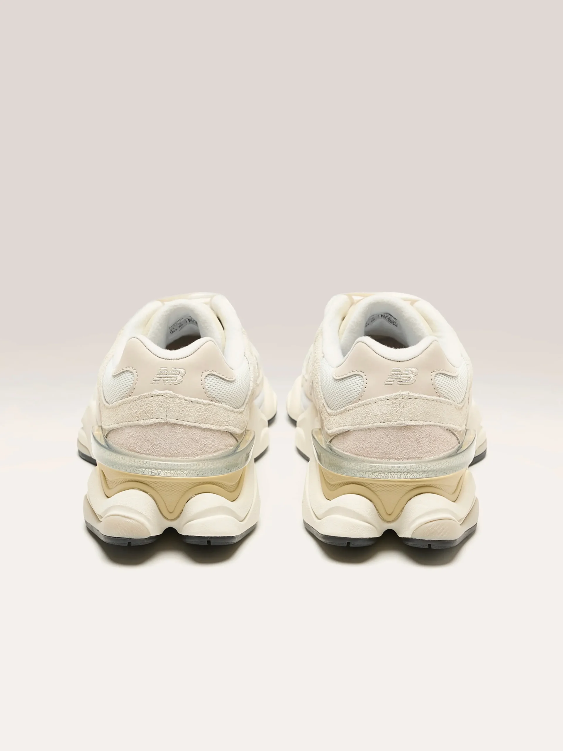 De New Balance 9060 sneakers hebben een technisch bovenwerk van leder, suède en mesh, een dempende middenzool en een buitenzool met een diamanten patroon.Stijl: U9060WHTKleur: Sea salt with moonbeam and turtledove