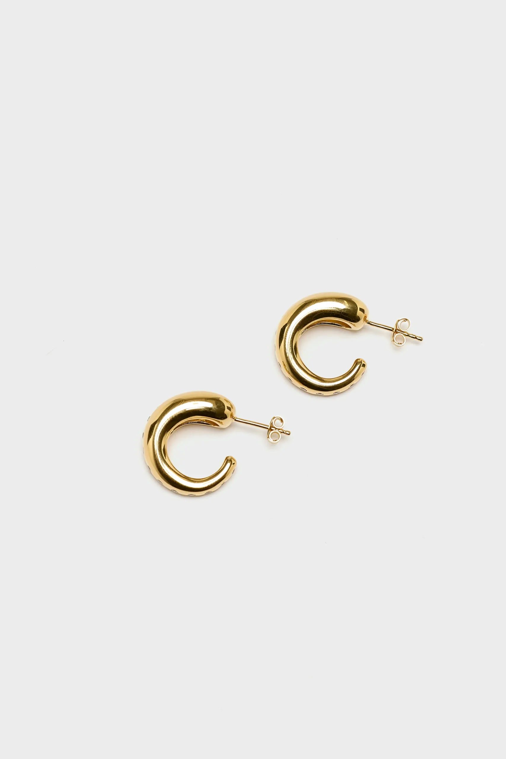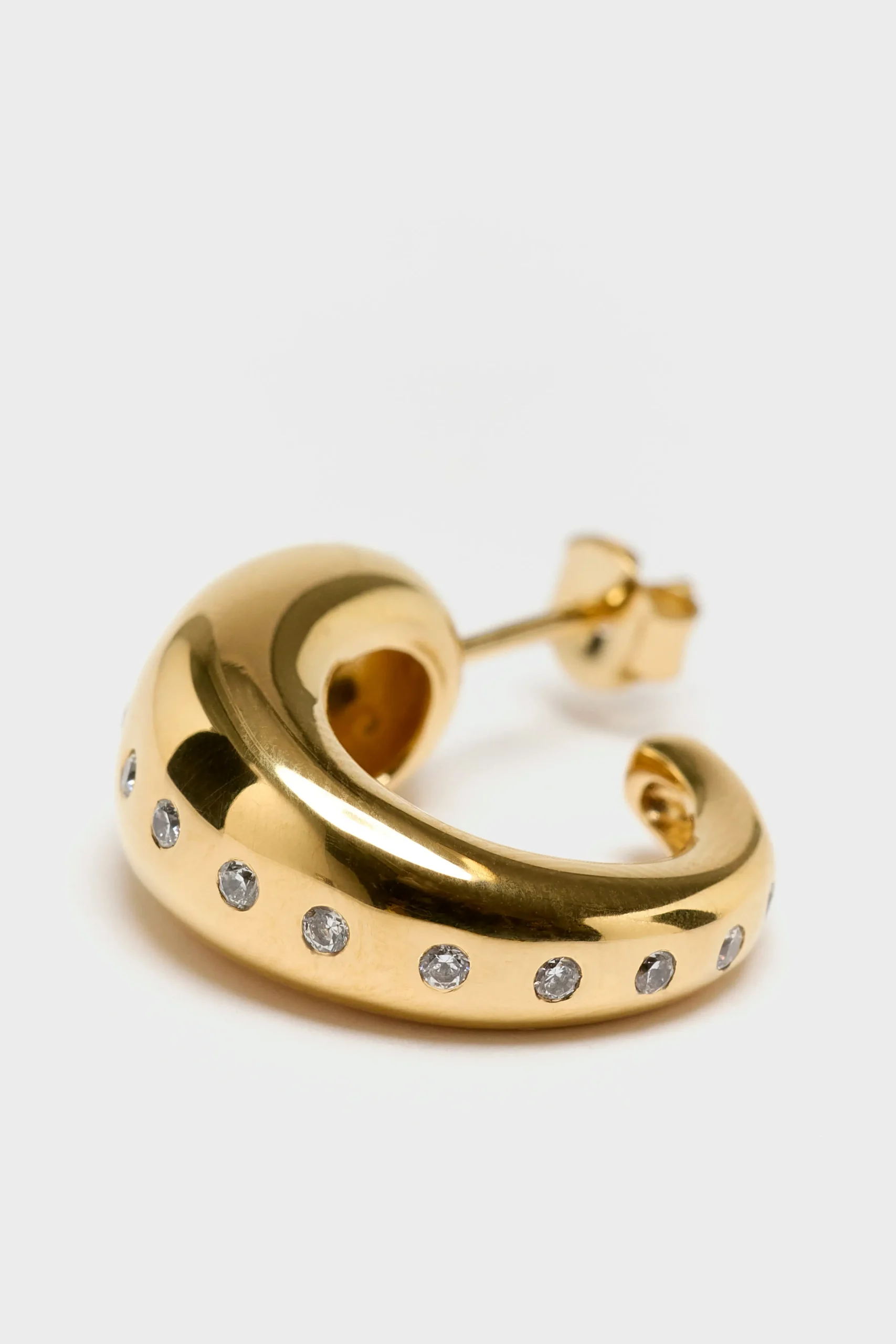 The Ragbag Oculus Hoop earrings are made of 18k gold-plated brass and feature a fine line of cubic zirconia stones.