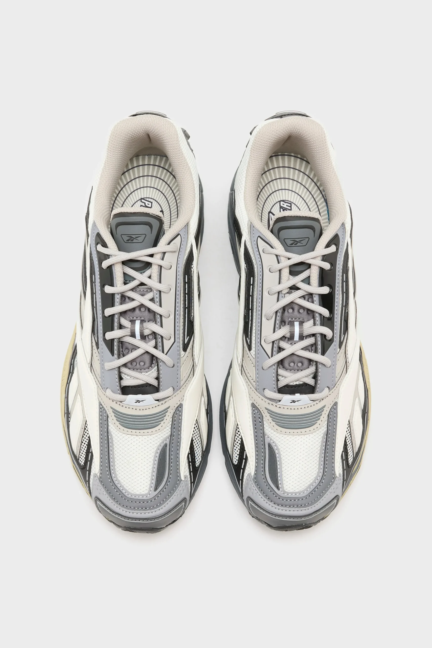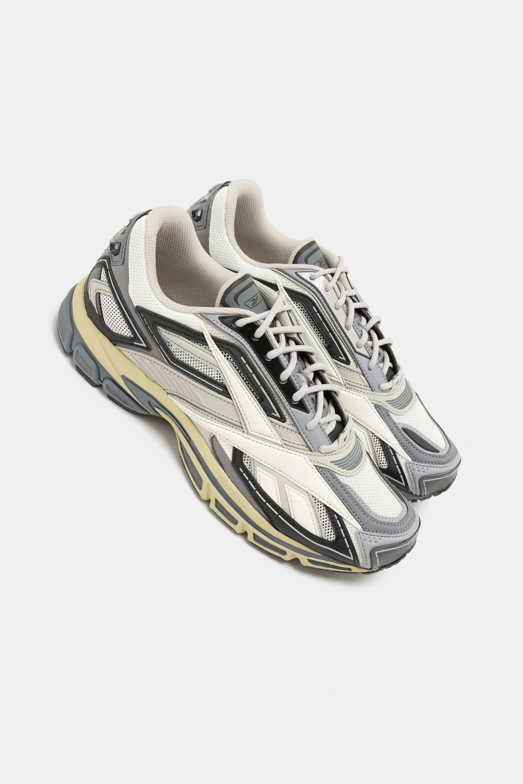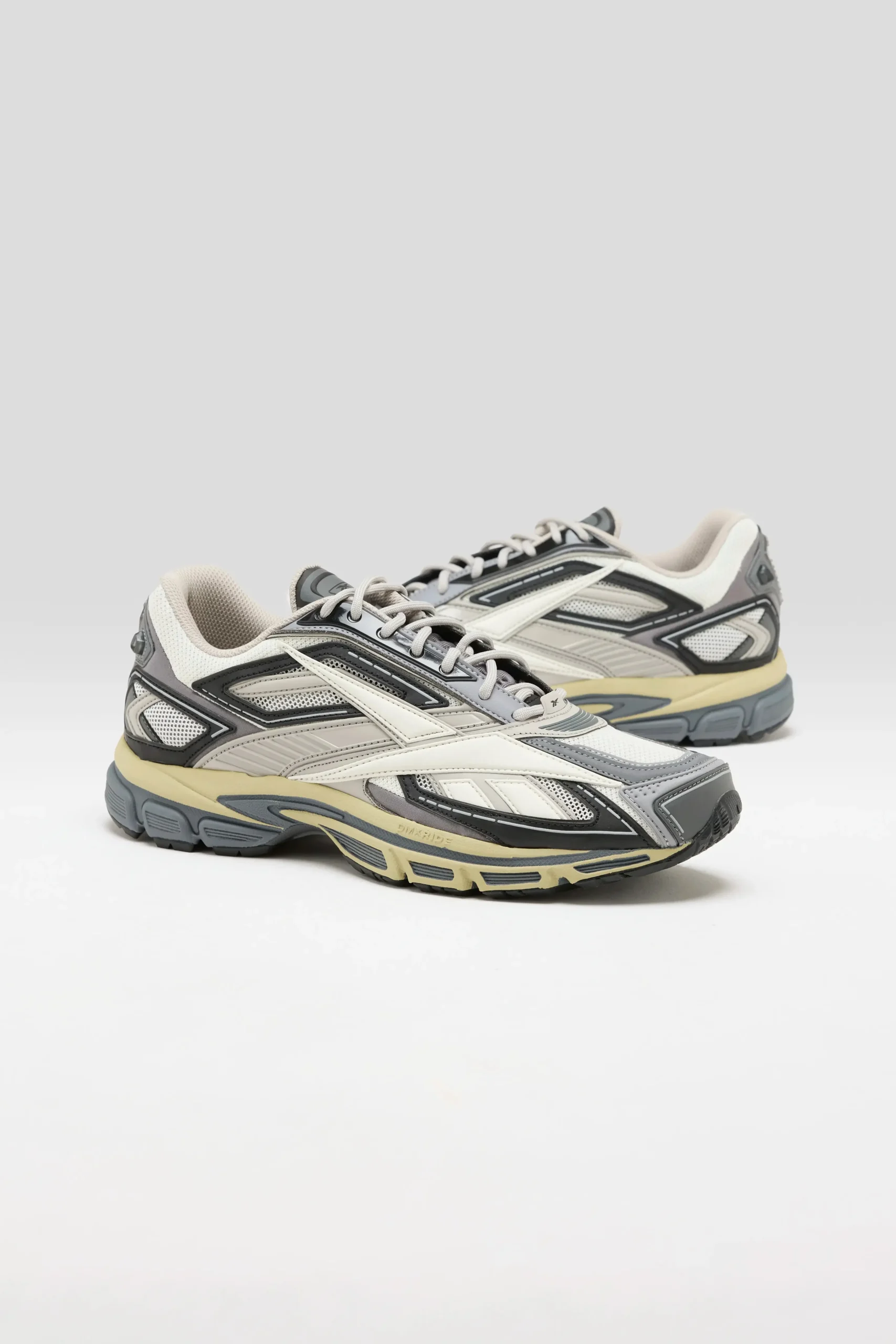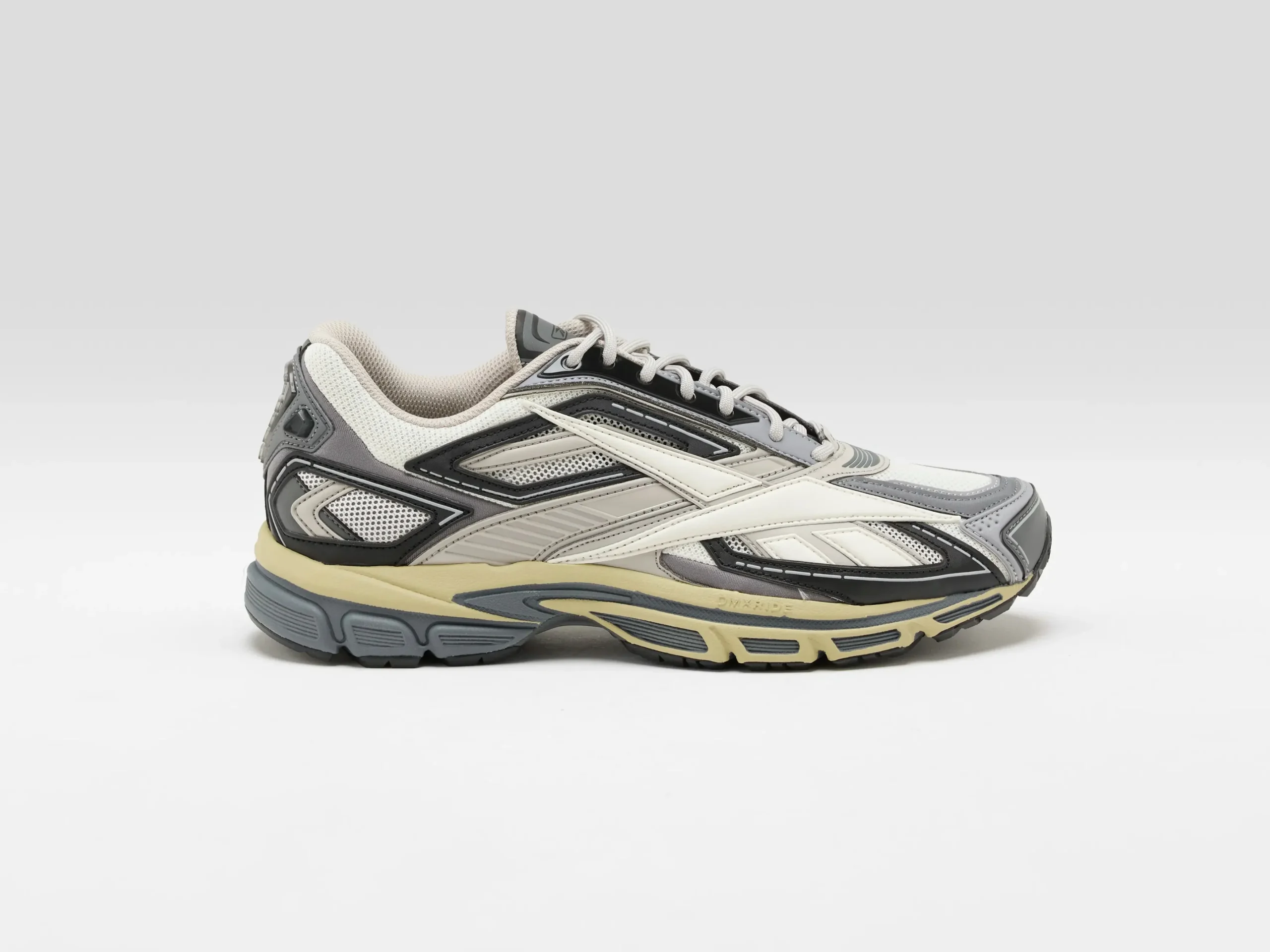 The Reebok Premier Road Ultra sneakers feature a futuristic open mesh upper with synthetic leather overlays.