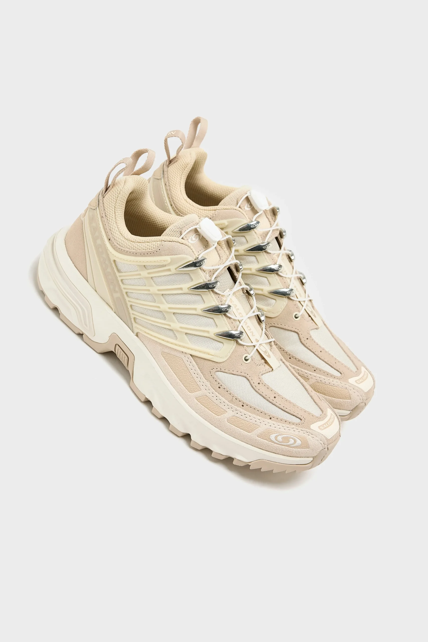 The Salomon ACS PRO Leather sportstyle sneakers feature a dirt-resistant, single-layer mesh upper with suede leather overlays.