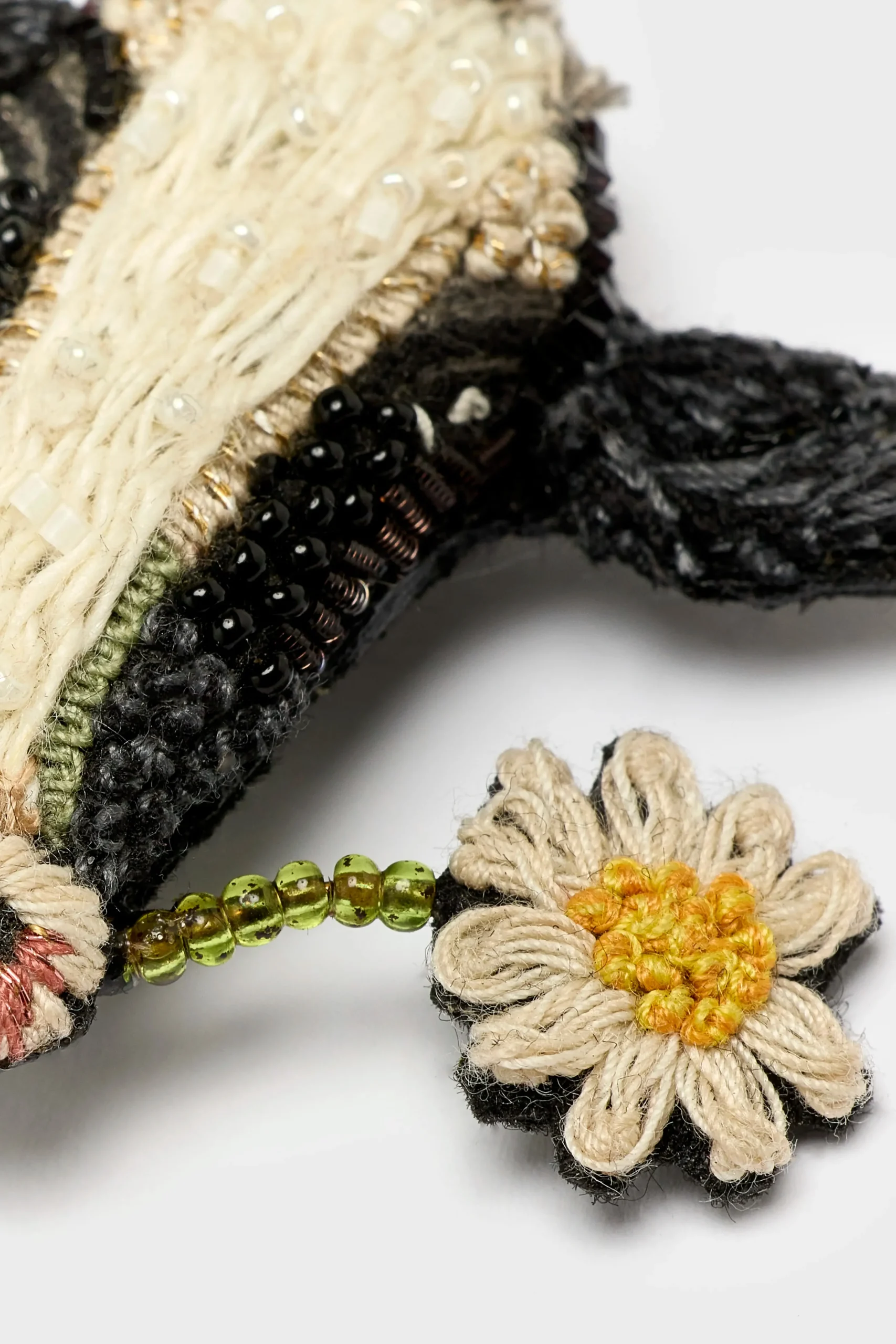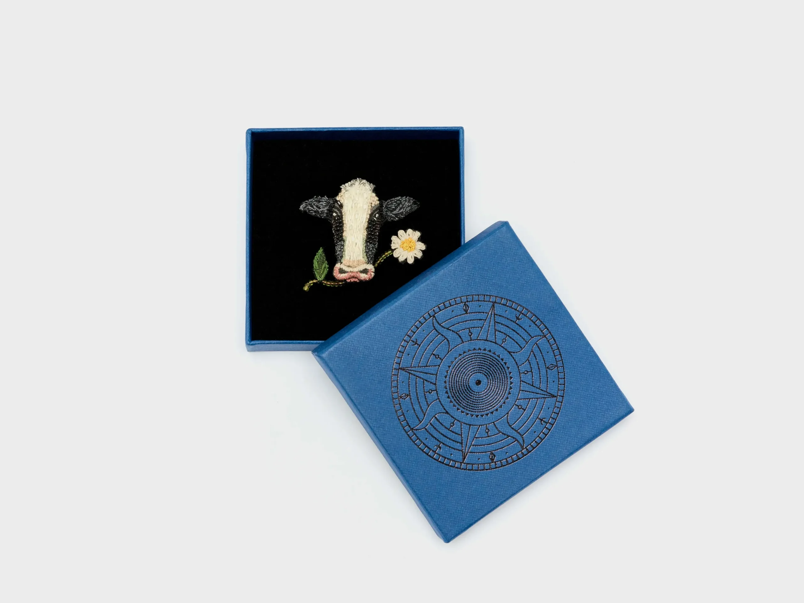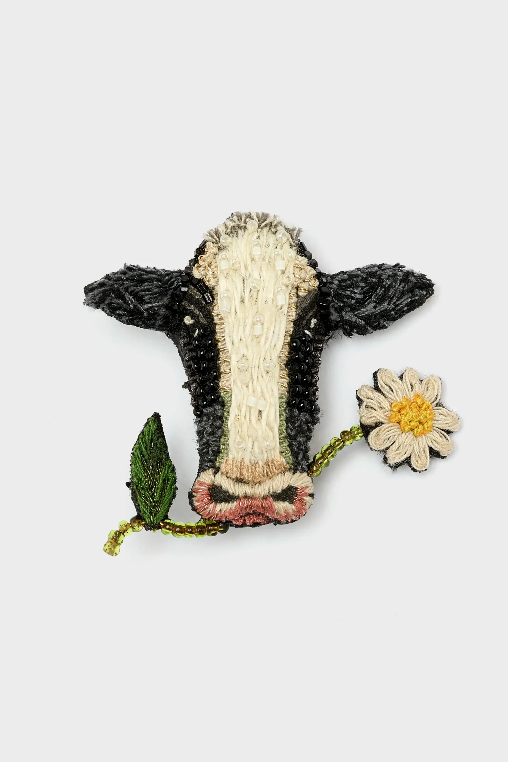 The Trovelore Happy Cow Brooch pin, hand-embroidered by Indian craftsmen, is a delightful wearable art piece.