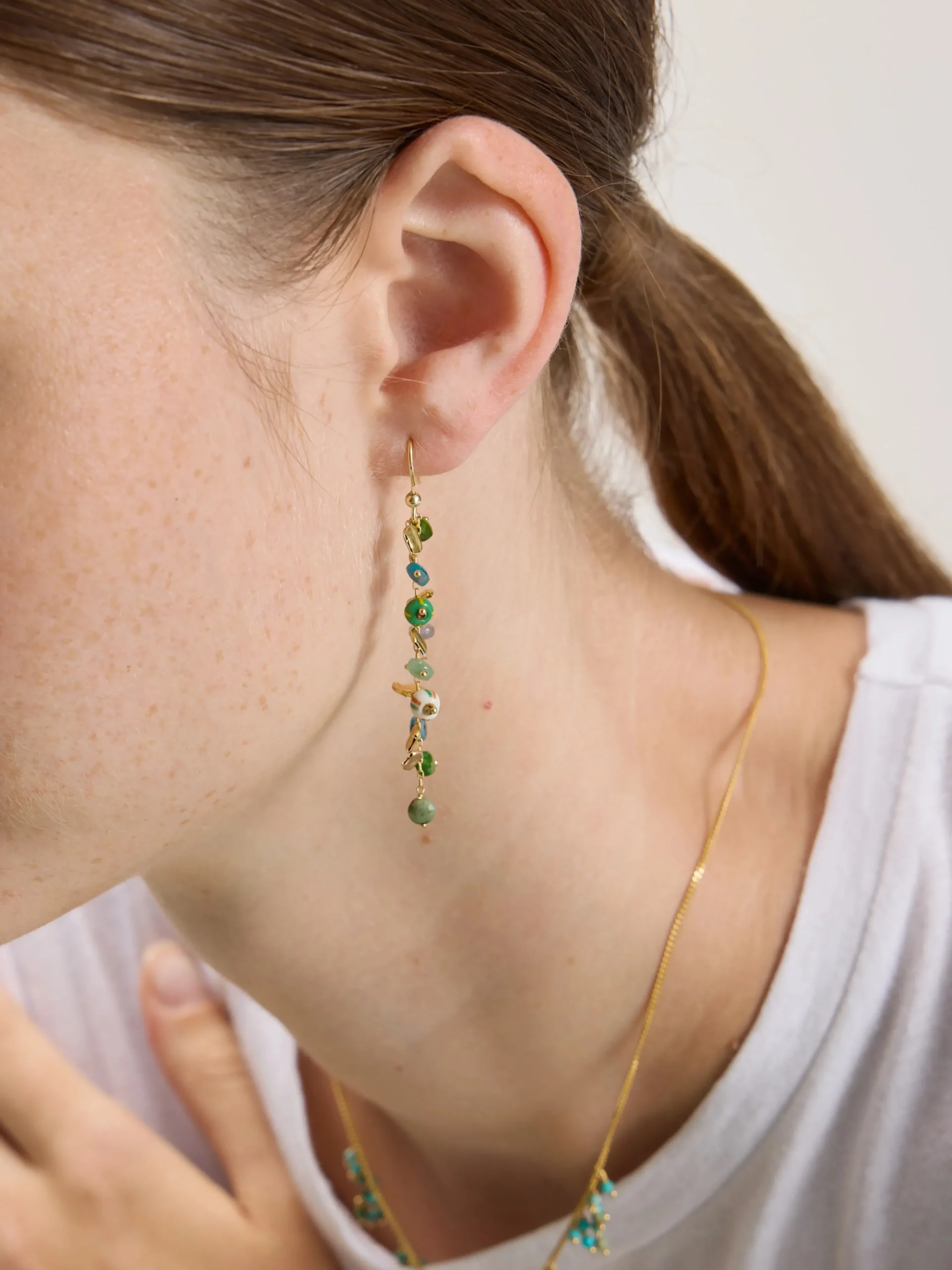De Untitledition Confetti Oorbellen zijn een charmante verzameling edelstenen aan een gouden vermeil ketting.Voor oren m…