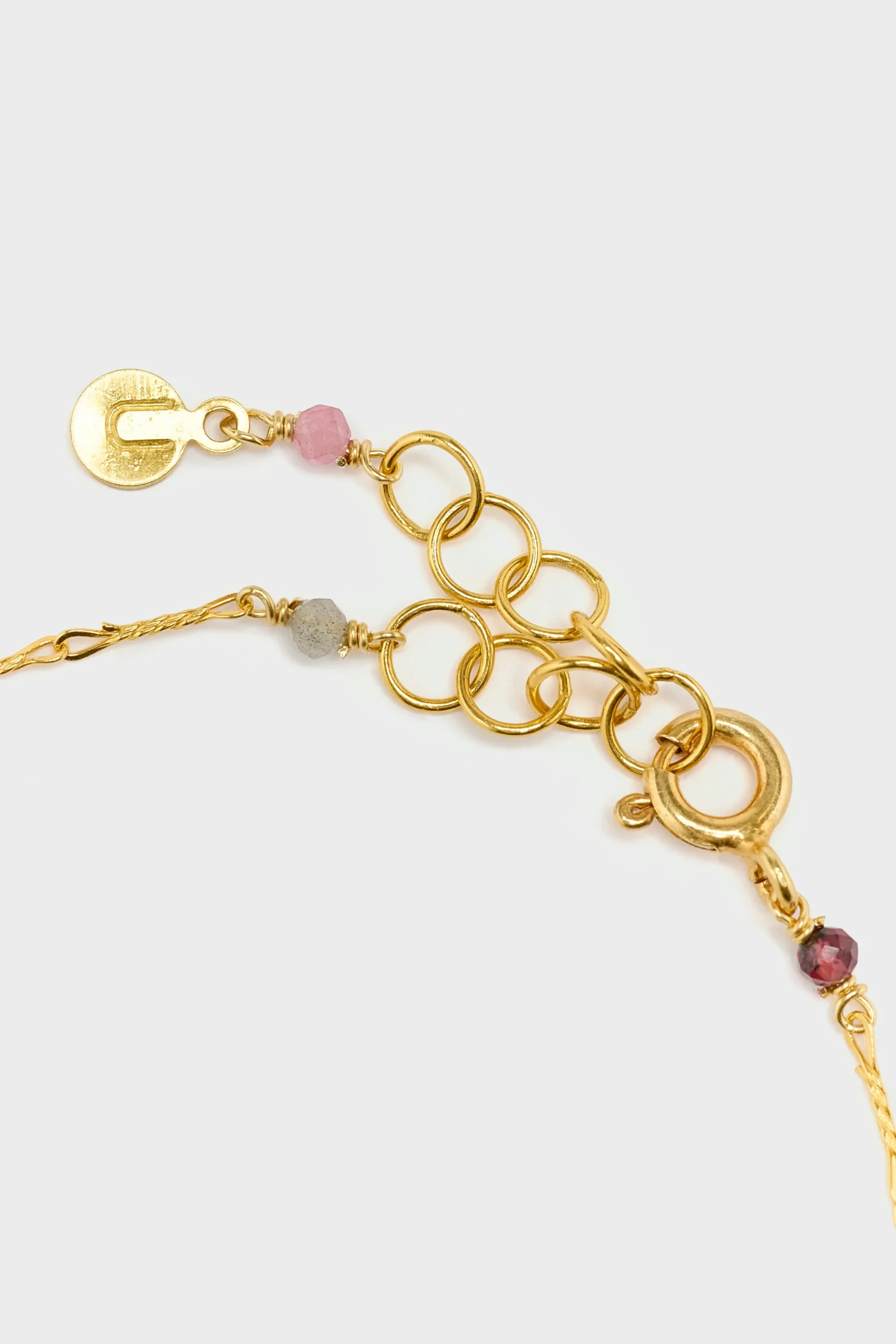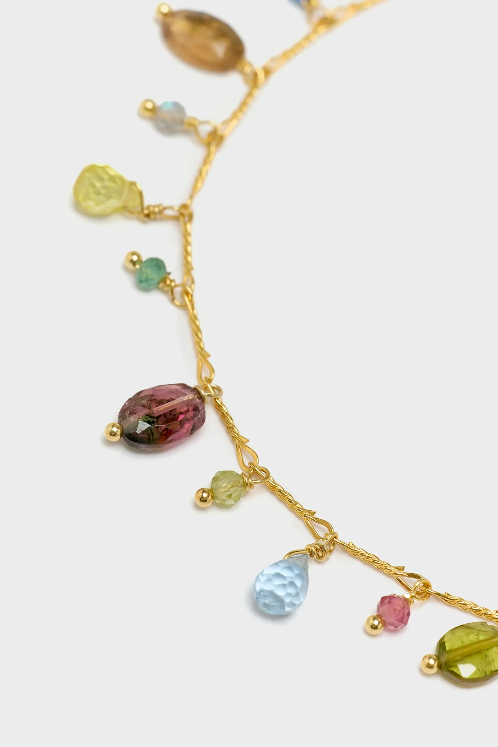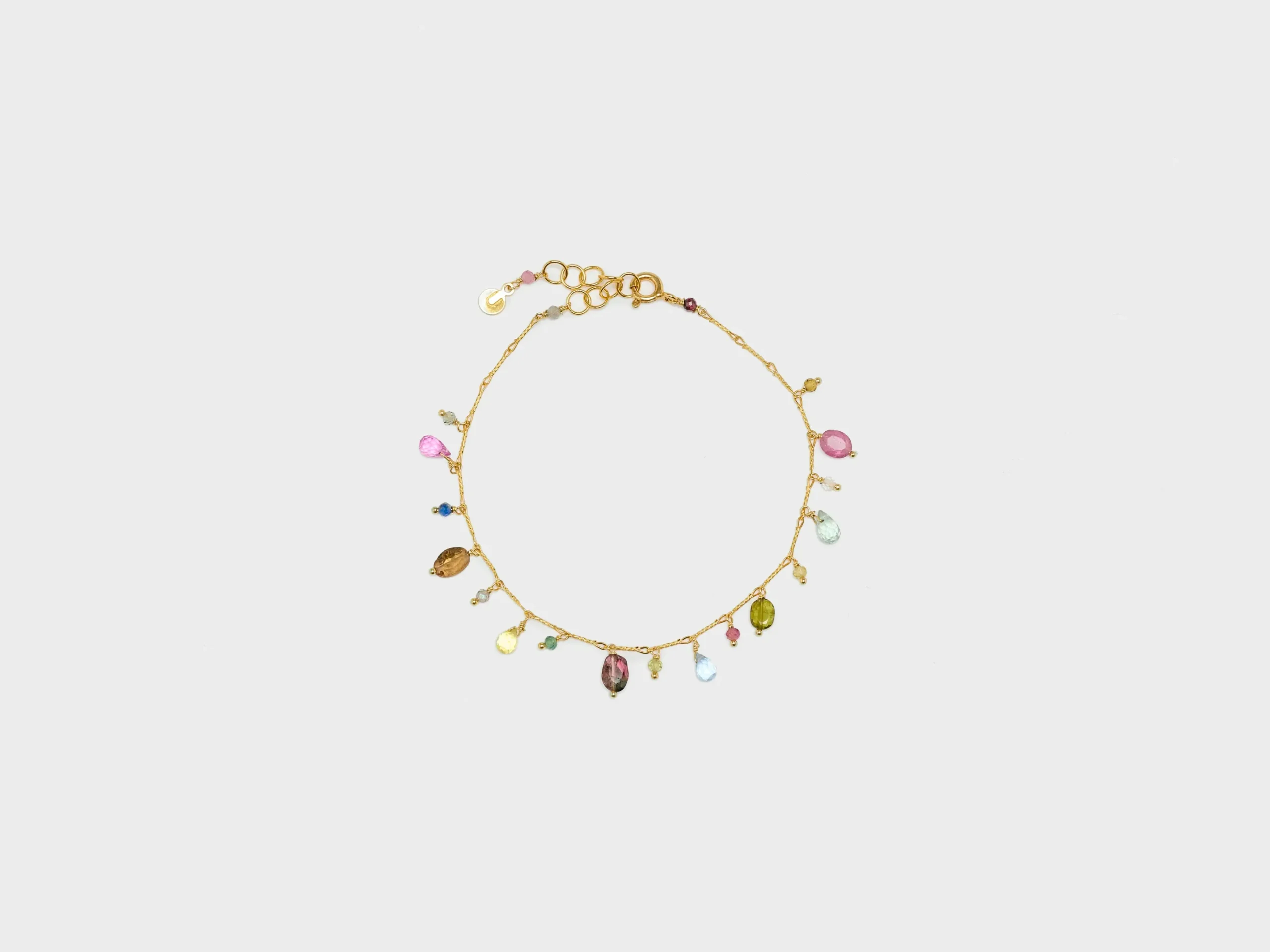 The Untitledition Mughetto Bracelet features tourmaline, sapphires, and natural stones with an adjustable vermeil silver 925 chain link.