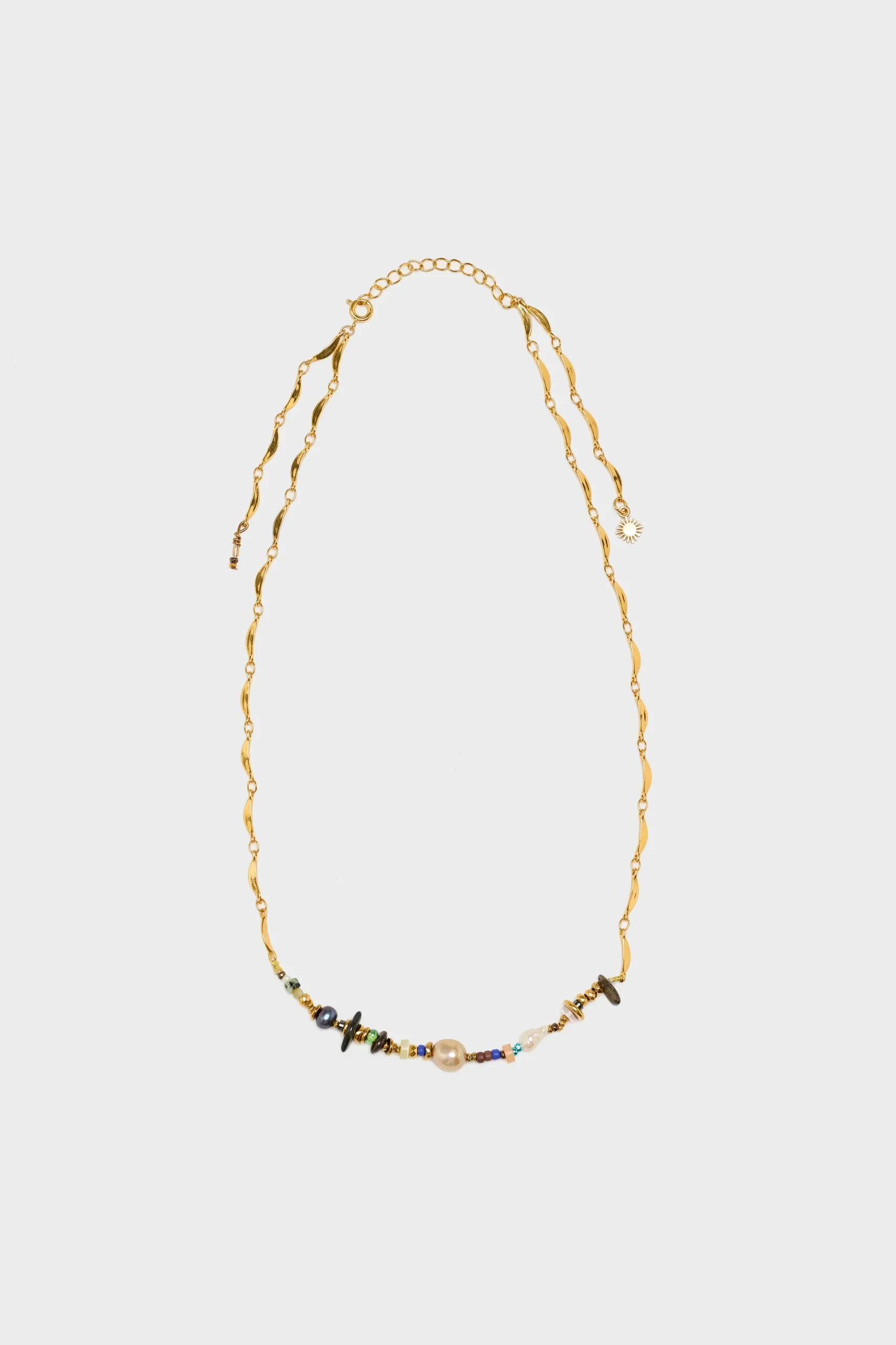 Exclusive to Bellerose, the Vadi Jewels Joan necklace features a beautiful assortment of semi-precious gemstones on a go…